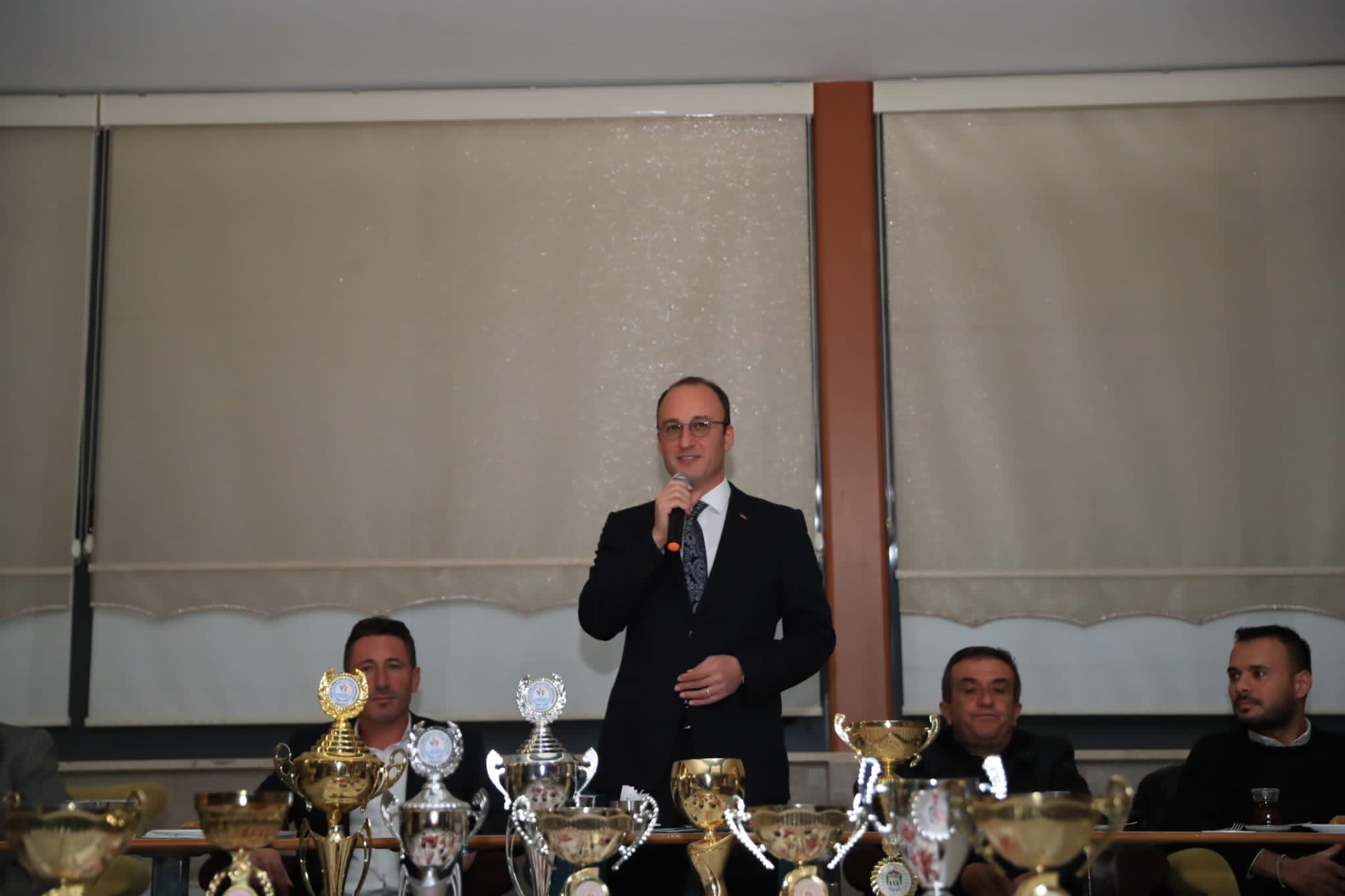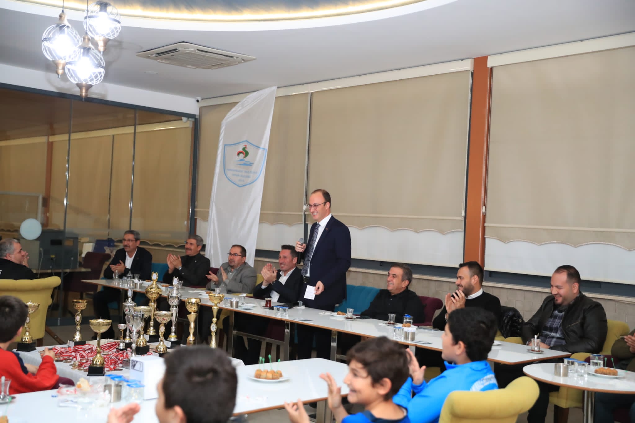 Tesisleşmenin önemine değinen Pamukkale Belediyespor Onursal Başkanı ve Pamukkale Belediye Başkanı Avni Örki, “Spora önem vermek için sporcuya önem vermek gerekir. Gençlere imkanlar sağlayacaksın ki sporcu kendini gösterebilsin. Bunun için tesisler lazım. Bu bilinçle Pamukkale Belediyesi olarak onlarca tesis yapıyoruz. 31 adet futbol sahası, 2 adet uluslararası standartlarda futbol sahası, 25 tane voleybol ve basketbol sahası, 1 gençlik merkezi yapıyoruz. Bu tek nefeste saydığım onlarca tesise birçok belediye kavuşamamış durumda ama biz bunların ihalelerini yaptık, artık yavaş yavaş mahallemizin, gençlerimizin önüne sunmaya da başladık. Bizim hedefimiz sporu bu şehrin bu ilçenin en ücra yerlerine kadar ulaştırabilmek. Böylelikle şehrimizdeki yetenekli olup fırsat bulamamış çocuklarımıza, gençlerimize olanak sağlamak, onları profesyonel spor imkanlarıyla tanıştırmak. Bunun sonucunda da şu an önümde duran onlarca madalya ve kupaların yenilerini kazanmak. Hedefimiz Avrupa’da ve Dünya’da İstiklal marşımızı okutmak, al bayrağımızı göklere çektirmek. Bunun yanında da örnek sporcular yetiştirmek. Siz Pamukkale Belediyesporlu sporcular olarak gençlere örnek olmalısınız. Önemli olan kupalar almak değil, spor hakkında farkındalık yaratabilmek. Bilmenizi isterim ki sürekli gözüm sizin üzerinizde, gönlüm sizlerin yanınızda. Her maçınıza gelemesem de bilin ki orada tribünde bir yerlerde Başkanınız gönülden sizlere destek oluyor. Ben böyle hissediyorum. Gönül ister ki her maçınızda, her mücadelenizde sizin yanınızda olayım. Ancak Pamukkale Belediyesi gerçekten çok büyük bir belediye. 1000’den fazla çalışanıyla bir ucundan bir ucuna 1 saat 17 dakika ile kat edilebilen geniş coğrafi alanıyla vatandaşlarımızın bize emanetine gözümüz gibi bakmaya çalışıyoruz” diye konuştu.