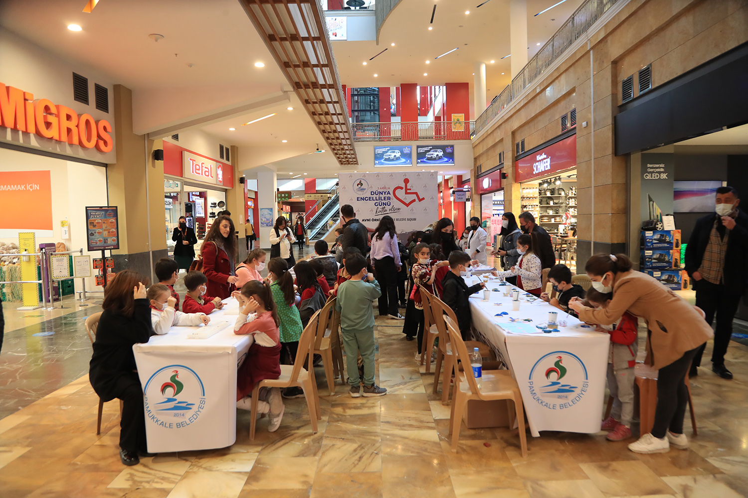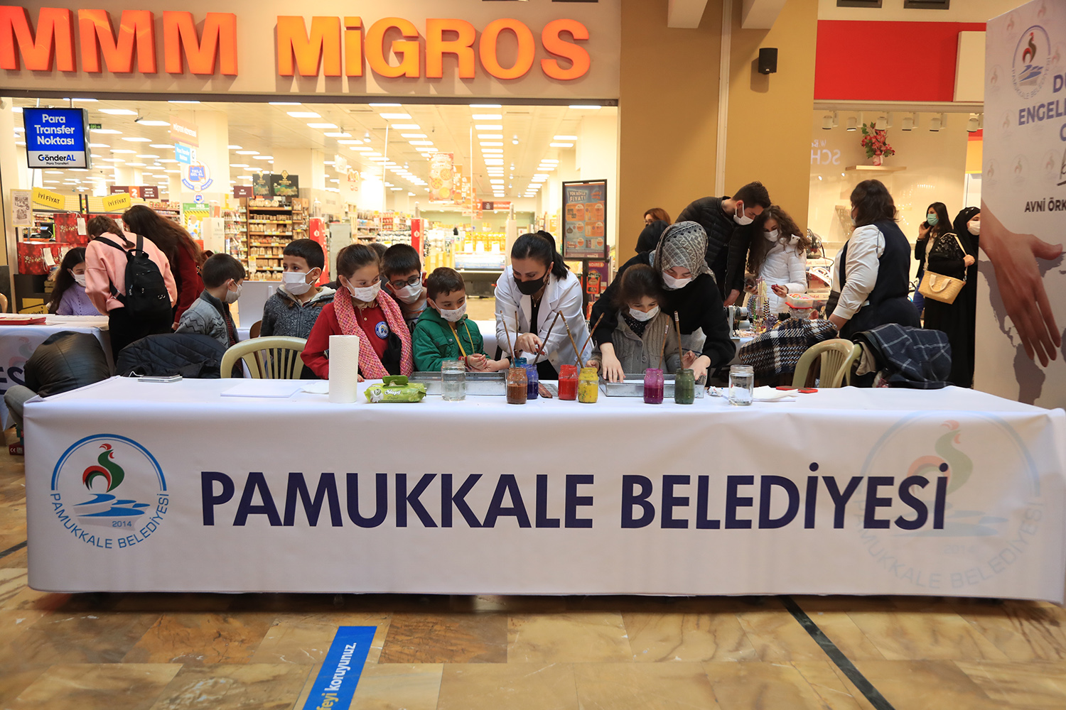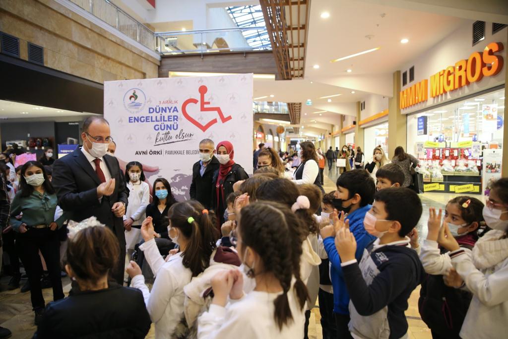 Pamukkale Belediyesi, yaptığı her projede engellilere verdiği değeri ortaya koyarken, 3 Aralık Dünya Engelliler Günü’nde gerçekleştirdiği farkındalık etkinliği ile de dikkat çekti. Pamukkale Belediye Başkanı Avni Örki’nin de bizzat katıldığı “3 Aralık Dünya Engelliler Günü Farkındalık Etkinliği”nde, engelli bireylerin yaşadığı zorluklar ortaya kondu. Forum Çamlık AVM’de düzenlenen etkinliğe İncilipınar İlköğretim Okulu, Emsan İlköğretim Okulu 2. ve 3. sınıf öğrencileri, öğretmenleri ve velileri ile birlikte katıldı. Öğrenciler, belediye personelinin yardımıyla engelli parkurlarında yürüme engelli bir bireyi anlamak için tekerlekli sandalyeye oturdular, görme engelli bireyi anlamak için gözleri bağlanarak bastonla yürümeye çalıştılar. Ayrıca çocuklar için ebru, kokulu taş boyama ve mangala oyunu stantları ve Pamukkale Belediyesinin yaz ve kış dönemlerinde engellilere yönelik açtığı ücretsiz kurslara katılan kursiyerlerin ürettikleri ürünlerin sergilenerek satış yapabildikleri sergi de yer aldı.