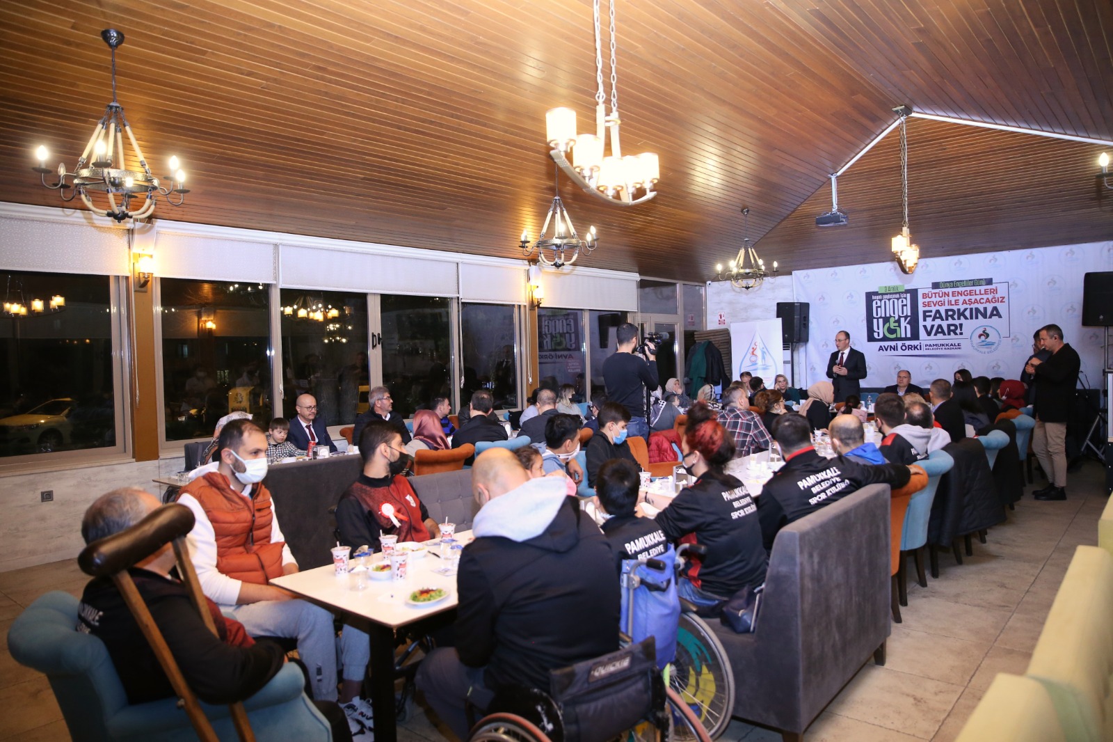 Pamukkale Belediye Başkanı Avni Örki, misafirleri ile tek tek sohbet ederek, bu özel akşamda davetlerine katıldıkları için teşekkür etti. Pamukkale Belediyesi çatısı altında özel bir akşam geçirmek için toplandıklarını belirten Başkan Örki, “Bireylerin vücudunda engeller olabilir. Az işitebilir ya da az görebilir. Belki hiç işitmeyip görmeyebilir, belki koltuk değneği, tekerlekli sandalye kullanmak zorunda kalabilir. Belki zihinsel bir engeli olabilir ama önemli olan bunlar değil. Bu engeller omuz omuza, gönül gönülle olduktan sonra bir şekilde aşılır. Esas ruhumuzda, kalbimizde, insan sevgimizde bir engel olmasın. Şunu ifade etmek istiyorum gerek engelli bireylerimiz gerekse onların aileleri bu dünya için en önemli önder kişilerdendir. Sizin hayatınızın her bir dakikası toplumun dört bir tarafına örnek teşkil ediyor. Sizlere baktığımda şükürsüzlüğümüz aklıma geliyor. Bugün Forum Çamlık AVM’de bir etkinlik gerçekleştirdik. Gözümüze bir bant takıp, elimize beyaz bastonu aldık, onunla yolumuzu bulmaya çalıştık. Gerçekten ne kadar zor ama o gönül gözü açık olduktan sonra anlıyorum ki her engel o vatandaşlarımız için aşılabiliyor. Aranızda bizim Pamukkale Belediyespor Tekerlekli Basketbol takımı oyuncularımız da var. Onlar her hafta maçlarda bizi en güzel şekilde temsil ediyorlar. Onlar ve diğer ülkemizi temsil eden sporcularımız hepimizi gururlandırıyor, bizlere örnek oluyorlar. Bize bu gururları yaşatan sporcularımızın ve diğer engelli vatandaşlarımızın Dünya Engelliler Günü’müz kutlu olsun” dedi.