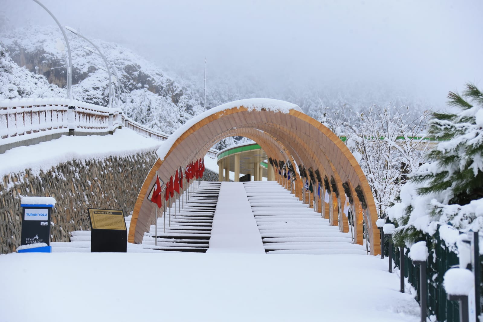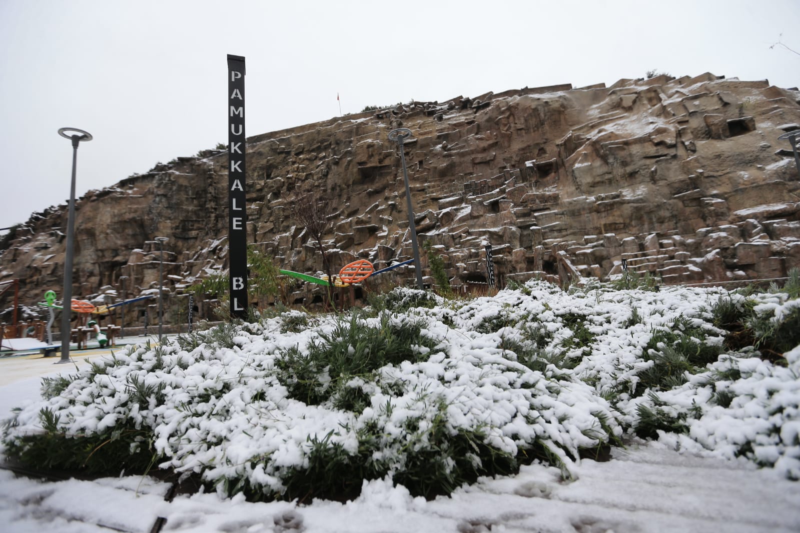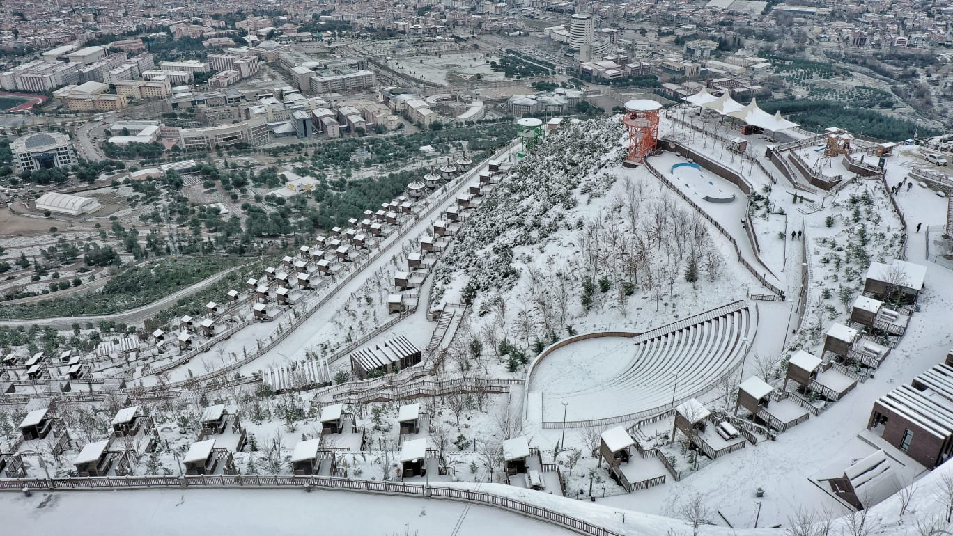 Pamukkale Belediyesi Seyir Tepesi Şehir Ormanı yağan karla bir başka güzel oldu.