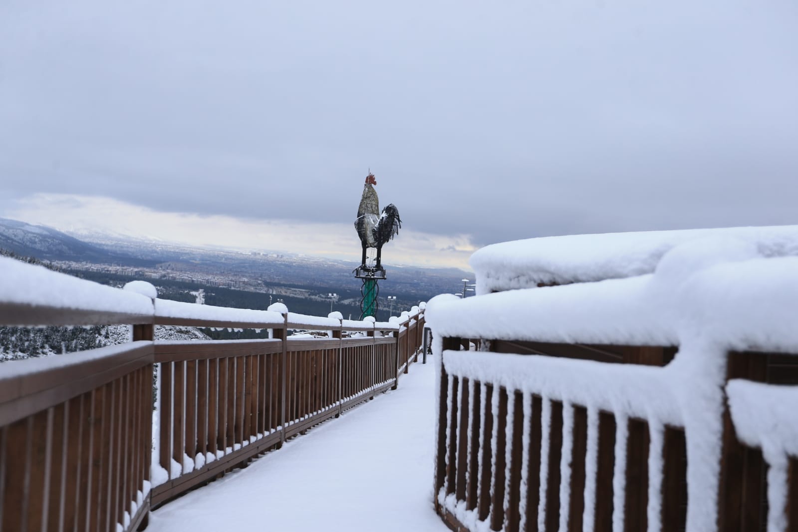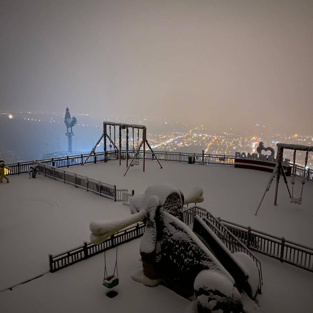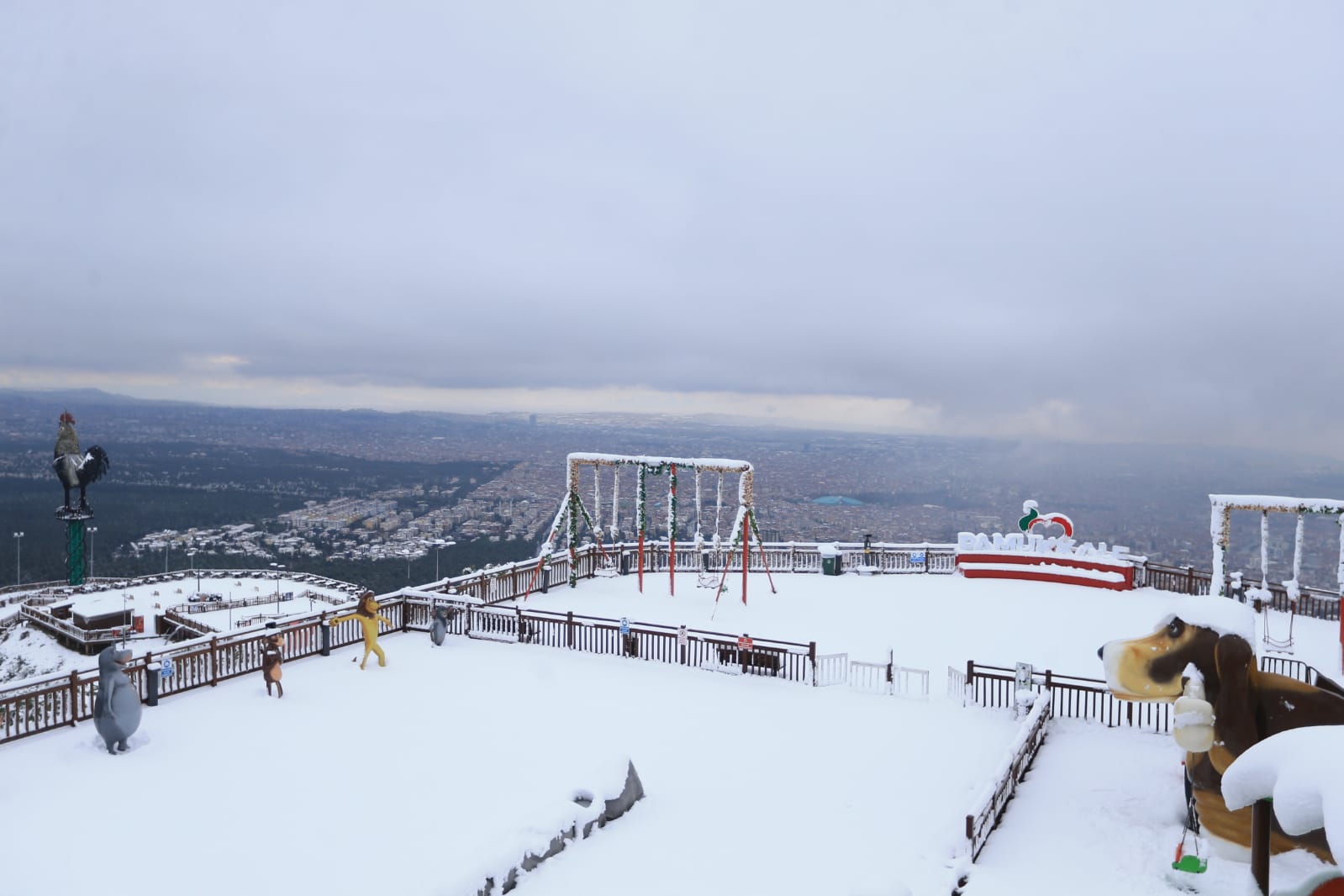 Türkiye’nin en büyük tematik kent ormanı olan Pamukkale Belediyesi Seyir Tepesi Şehir Ormanı hizmete girdiği günden beri yüzbinlerce ziyaretçiyi ağırladı. Ülkemizi ve ilimizi etkisi altına alan kar yağışı 800 rakımlı Seyir Tepesi’nde de etkili oldu. Kar yağışının olduğu dakikalarda Pamukkale Belediyesi Seyir Tepesi Şehir Ormanı’ndan Denizli manzarası görülmeye değerdi. Her yaştan vatandaşın kendi ilgi alanına göre yerleri barındıran Seyir Tepesi tamamen beyaz örtüyle kaplandı. Muhteşem görüntüsüyle dikkat çeken Pamukkale Belediyesi Seyir Tepesi Şehir Ormanı’ndan karlı Denizli manzarası da bir başka güzel. Dev Denizli Horoz’u ve şehir manzarası Pamukkale Belediyesi Seyir Tepesi Şehir Ormanı’nın sosyal medya hesaplarından paylaşıldı. Öte yandan Pamukkale Belediyesi Seyir Tepesi Şehir Ormanı vatandaşları bekliyor. Güvenlik nedeniyle özel araçla girişin izin verilmediği Seyir Tepesi Şehir Ormanı’na ulaşım ücretsiz servislerle sağlanacak. Kır kahvesi ve Seyr-Et Restoran ile birlikte tüm birimleriyle Seyir Tepesi hafta sonu 09.00-20.00, hafta içi de 10.00-19.00 saatleri arasında hizmet veriyor.