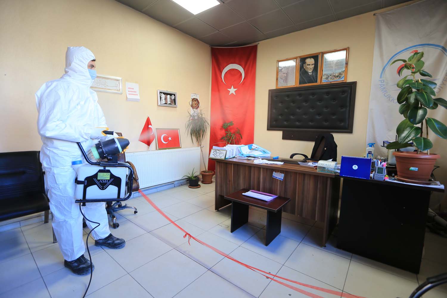 Pamukkale Belediye Başkanı Avni Örki, koronavirüs salgını sürecini ilk günden bu yana çalışmaları çok başarılı bir şekilde yürüttüklerini belirterek, “Her zaman ve her koşulda halkımızın yanında olmaya devam ediyoruz. Tüm bu imkanlarımızla birlikte dezenfekte işlemlerimize de ara vermeksizin sürdürdük. Ekiplerimiz pandeminin ilk gününden bu yana, vatandaşlarımızın yoğun olarak kullandıkları ortak yaşam merkezleri başta olmak üzere okullardan, parklara, kamu kurum binalarından, muhtarlıklara, camilerden, bina ve esnaf işyerlerine kadar bir çok yerde düzenli olarak dezenfekte çalışmaları yapıyor. İlçemizde vaka görülen vatandaşlarımızın evlerinin bulunduğu apartmanların ortak kullanım alanı olan kapı girişleri, kapı zilleri, apartman girişleri, apartman içindeki korkulukları ve apartman boşluklarını baştan aşağı dezenfekte ediliyor. Pandemiyle mücadelede en ince ayrıntıyı düşünüyoruz. Çalışmalarımızı aksatmadan gerçekleştirmeye devam ediyoruz. Pamukkale Belediyesi olarak salgınla mücadele bizden, korunmak halkımızdan. Maske, mesafe ve hijyen kurallarına uyulup, sırası gelen vatandaşlarımızın da aşılarını olmalarıyla bu salgını yeneceğimize inanıyorum. Değerli Pamukkaleli vatandaşlarımızdan bu konuda hassasiyet göstermelerini rica ediyorum. Tüm halkımıza sağlıklı günler diliyorum” dedi.