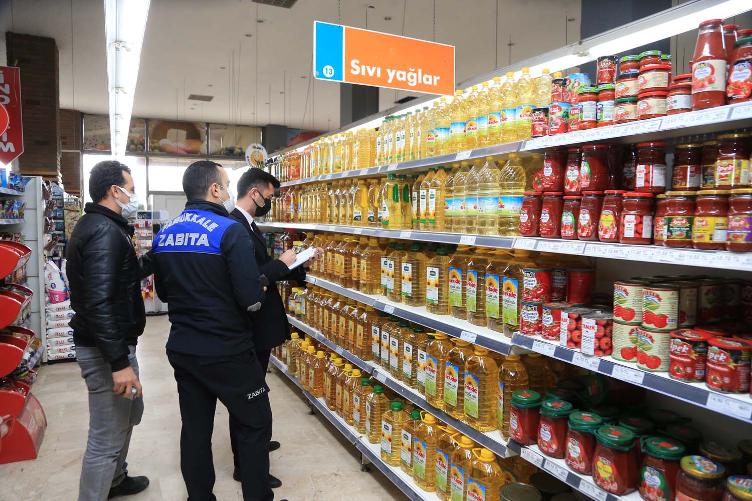 Pamukkale Belediye Zabıta ekipleri, Denizli Ticaret İl Müdürlüğü ile birlikte ilçe genelindeki marketlerde yağ denetimi yaptı.