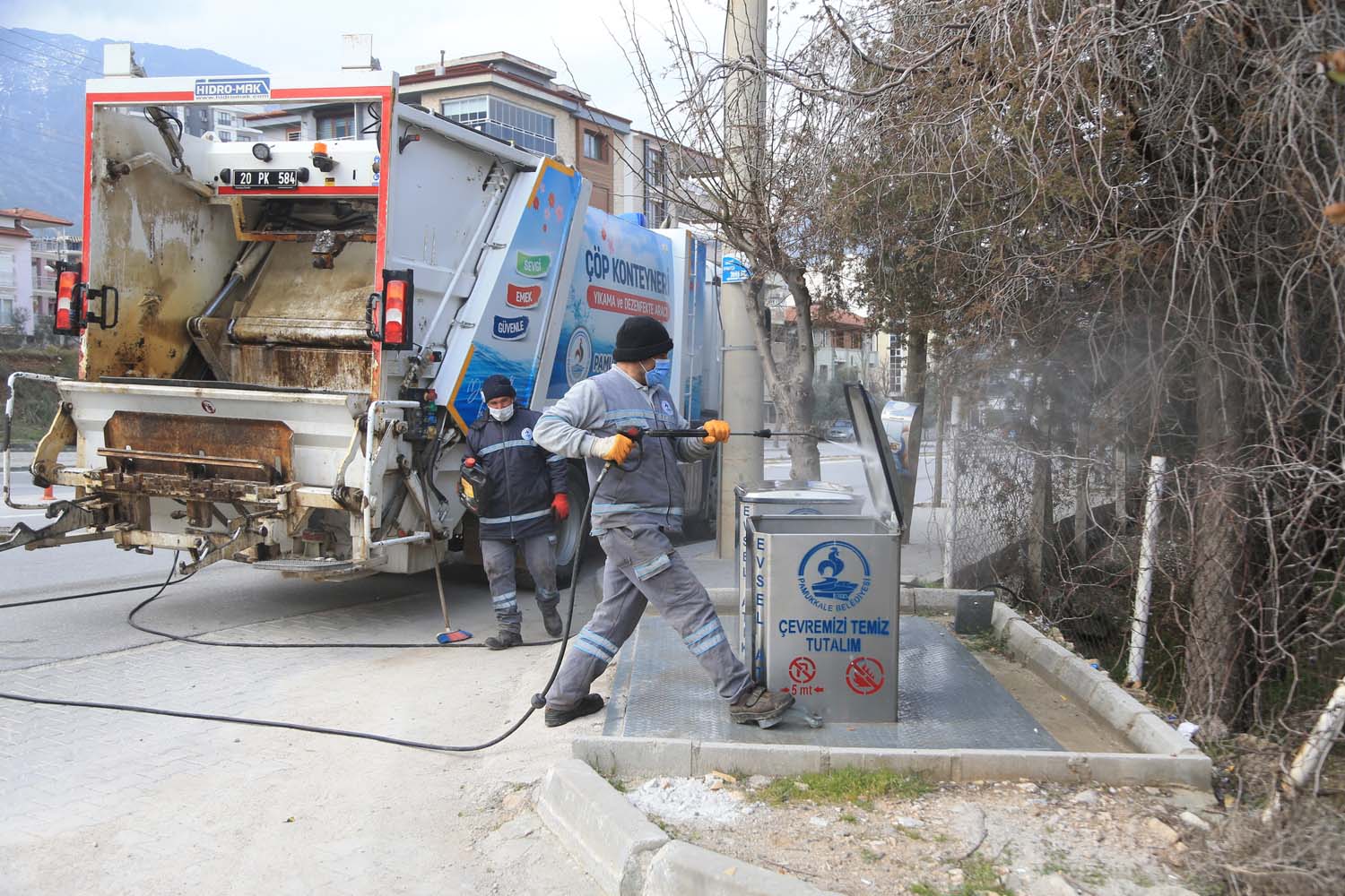 Ekipler, ilçe genelinde bulunan 5 bine yakın çöp konteyneri, 800 ekmek kutusu, 28 atık getirme merkezi ve 30 çöp toplama aracını düzenli olarak temizleyerek, dezenfekte ediyor. Çevre konusuna büyük önem veren Pamukkale Belediyesi, geçtiğimiz yıldan bu yana “Koku önleme sistemi” adıyla hizmete sunduğu uygulaması ile çöp toplama kamyonları ve çöp konteynerlerinden kötü koku yerine turunç kokusu yayılıyor. Pamukkale ilçesinin her bir köşesinden tertemiz kokuların yayılması için büyük gayret sarf eden Pamukkale Belediyesi Temizlik ekipleri, yaz-kış demeden 7 gün 24 saat esasıyla çalışmalarını aksatmadan yürütüyor. Pamukkale Belediye Başkanı Avni Örki, temizlik hizmetinin kendileri için vazgeçilmez olduğunu, “Daha temiz bir Pamukkale için” sloganıyla çalışmalara devam ettiklerini belirterek, “Bizim için temizlik çok önemli. Ekiplerimiz mesai gözetmeden ilçemizde yaşayan vatandaşlarımıza hizmet ediyor. Rutin işlemlerin yanında çöp konteynerleri, bayat ekmek toplama kutuları ve geri dönüşüm kutuları düzenli olarak özel araçlar ve ürünlerle temizleniyor. Yaz kış demeden Pamukkale’mizin her bir köşesini düzenli olarak temizleyen ekiplerimiz, bahar aylarına geçiş sürecinde rutin çalışmalarına hız verdiler. Tek amacımız Pamukkale’yi daha mutlu insanların yaşadığı bir ilçe haline getirmek. Bunun için başta temizlik olmak üzere tüm birimlerimizle vatandaşlarımız için çalışmaya devam ediyoruz” diye konuştu.