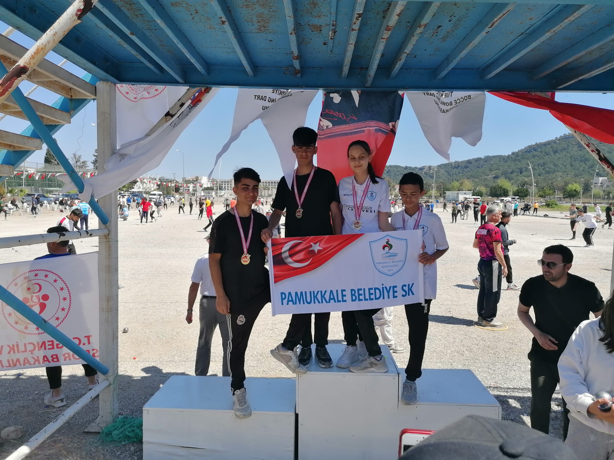Pamukkale Belediyespor madalyalar kazanmaya devam ediyor. Türkiye Bocce, Bowling ve Dart Federasyonu faaliyet programında bulunan Bocce-Petank Türkiye Şampiyonası 12-16 Nisan tarihleri arasında yaklaşık 2000 sporcunun katılımıyla Antalya’da gerçekleşti. Pamukkale Belediyespor katıldığı 6 kategoride 8’i Altın olmak üzere toplam 12 madalya kazandı. Bocce-Petank Türkiye Şampiyonası; minikler, küçükler, yıldızlar, gençler ve büyükler kategorilerinde gerçekleşti. Küçük tekler kategorisinde Pamukkale Belediyesporlu sporculardan Okan Koç Türkiye birincisi olurken, Saffet Erdoğan ise üçüncü oldu. Küçük takımlar kategorisinde ise Umut Elbastım, Saffet Erdoğan ve Okan Koç’tan oluşan takım küçük erkeklerde altın madalya kazanırken, Melisa Kalınbaldır, Şükran Yeşil, Eylül Cengiz’den oluşan takımımız Türkiye üçüncüsü olmayı başardı. Yıldızlar Altın Nokta kategorisinde mavi-beyazlı takım için mücadele eden Ziya Yılmaz Türkiye birincisi olarak, altın madalya kazandı. Yıldız-Genç takımlar kategorisinde Merve Karakaya ve Ziya Yılmaz takımı altın madalyanın sahibi oldu. Tek Erkekler müsabakalarına katılan 241 sporcu arasında şampiyonluğu göğüsleyen Pamukkale Belediye Spor kulübünü milli sporcusu Serdar Kılınç Türkiye'nin yeni 1 numarası oldu.