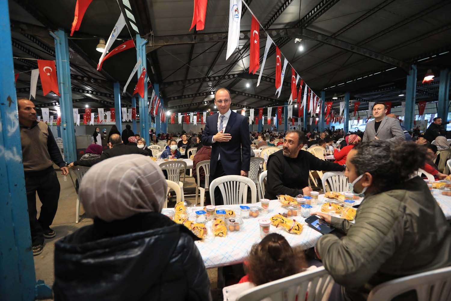 Mübarek Ramazan ayında Pamukkale Belediyesi, vatandaşları iftar sofralarında buluşturmaya devam ederken, bu hafta başında iftar sofraları İncilipınar Kapalı Pazar Yeri ile Akhan Kapalı Pazar Yeri’nde kuruldu. İftar yemeklerine binlerce mahalle sakini katılırken, Pamukkale Belediye Başkanı Avni Örki’ye eşi Nur Örki de eşlik etti. Her iki mahallede de düzenlenen iftarlarda Belediye Başkanı Avni Örki, vatandaşlarla tek tek sohbet ederek, hatıra fotoğrafları çektirdi.