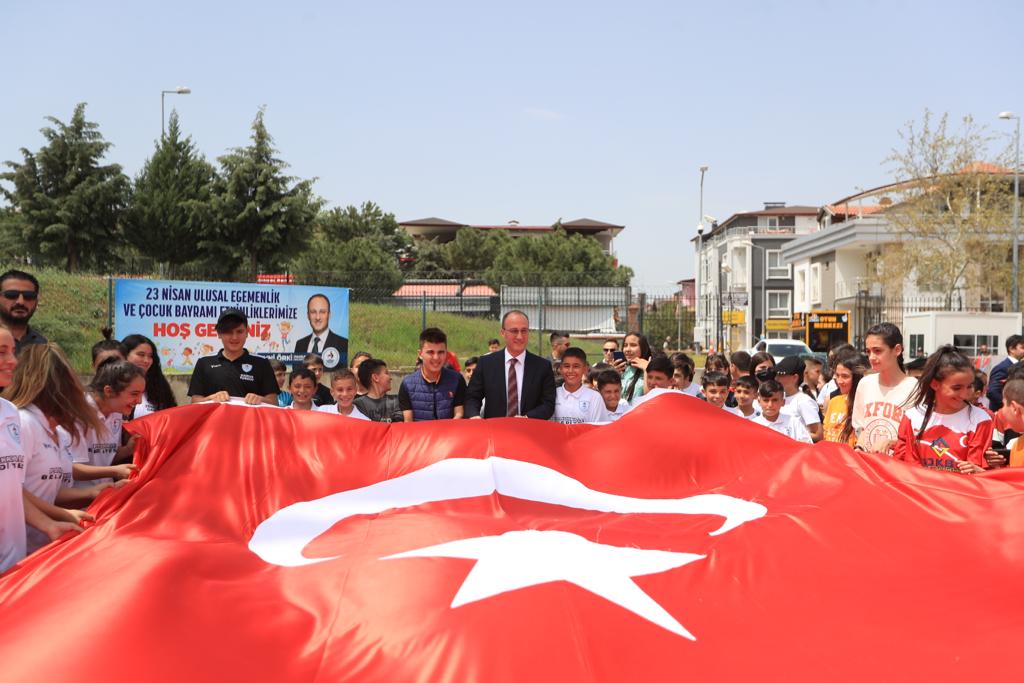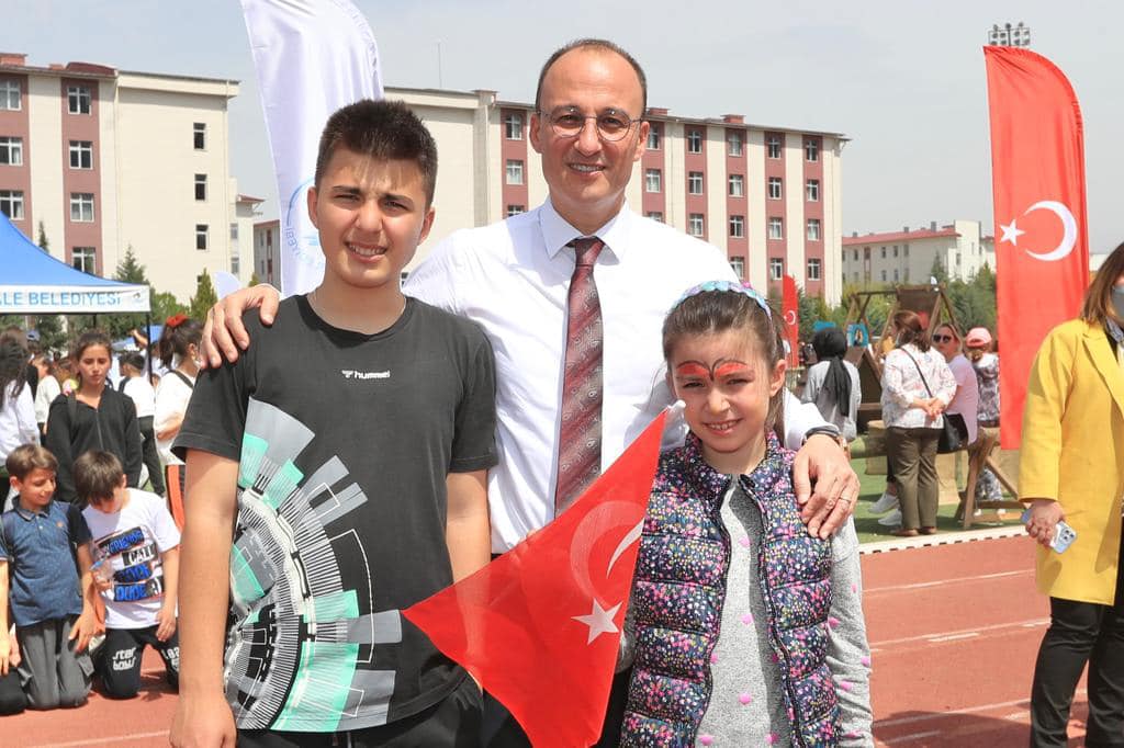 Pamukkale Belediye Başkanı Avni Örki, KYK Stadı’ndaki etkinlik alanına da giderek çocuklarla bir araya geldi. Etkinliklere katılan çocukları ziyaret eden başkan Örki, çocuklarla oyun da oynadı. Yarışmaları bir süre takip eden Başkan Örki, alanda bulunan çocuklarla birlikte dev Türk Bayrağı’nı açarak 23 Nisan Ulusal Egemenlik ve Çocuk Bayramları’nı kutladı. “İyi ki 102 yıl önce Gazi Mustafa Kemal Paşa 23 Nisan’ı ülkemizin ve dünyanın tüm çocuklarına bayram olarak hediye etmiş” diyen Başkan Örki, “Gazi Mustafa Kemal Atatürk o kadar geniş gönüllüymüş ki bu günü tüm dünya çocuklarına bir bayram olarak armağan etmiş, ona yürekten teşekkür ediyoruz. İnşallah bu bayram vesilesiyle de dünyanın dört bir yanındaki tüm çocukların yüzü gülsün. Sevgili kardeşlerim sizlerle bir arada olmak bizim için çok önemli. Şuan Nihat Zeybekci kongre salonunda binlerce çocuğumuz Kukuli gösterisini izliyor. Yine binlerce çocuğumuz Lunaparktaki eğlencelere katılıyor. Burada da sizler sportif faaliyetlerle 23 Nisan’ın coşkusunu yaşıyorsunuz. 23 Nisan coşkusunu bütün Denizli’mize yaymaya çalışıyoruz. Katıldığınız için her birinize yürekten teşekkür ediyor ve 23 Nisan Ulusal Egemenlik ve Çocuk Bayramınızı kutluyorum” dedi.