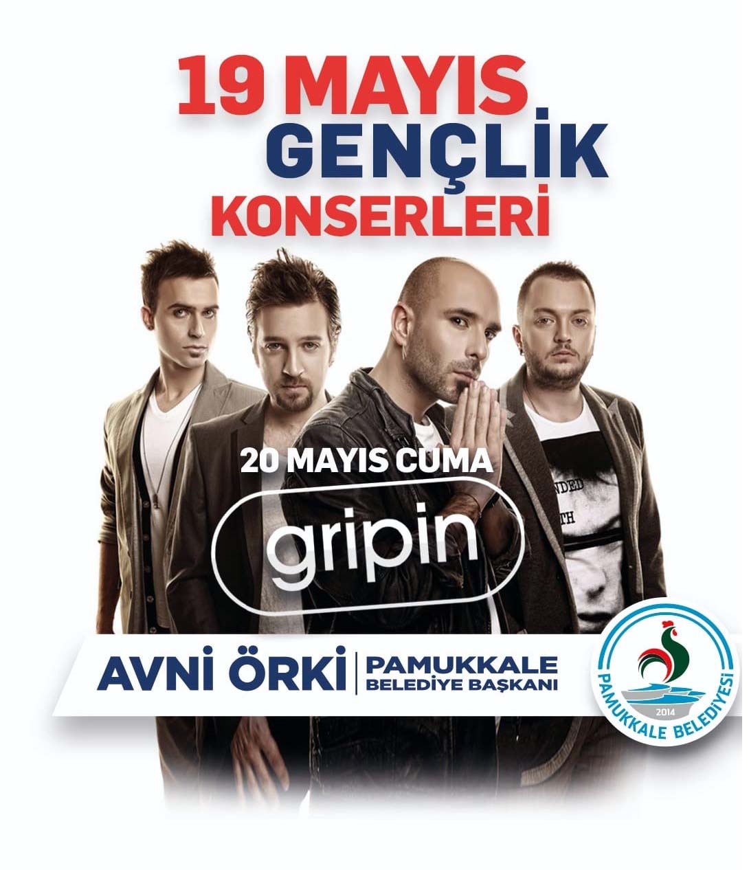 Pamukkale Belediyesi, 19 Mayıs Atatürk’ü Anma Gençlik ve Spor Bayramı kapsamında Gripin konseri düzenleyecek. Pamukkale Belediye Başkanı Avni Örki, 19 Mayıs etkinlikleri kapsamında 20 Mayıs 2022 Cuma günü saat 21.00’de Pamukkale Üniversitesi Kampüsü Festival Alanı’nda düzenlenecek konsere tüm müzikseverleri davet etti.
