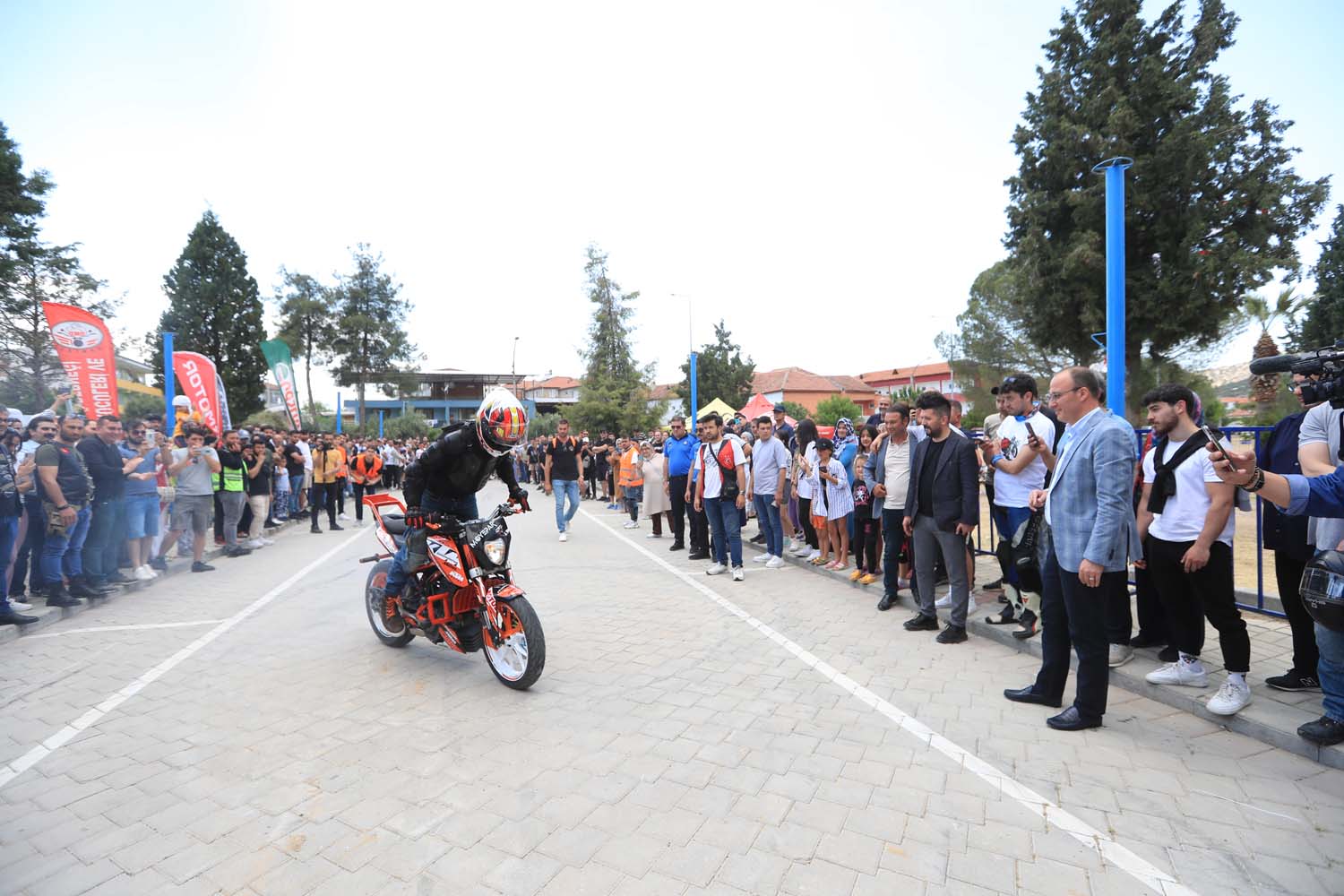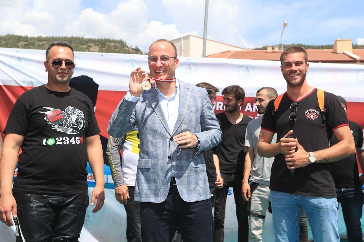 Pamukkale Belediyesi’nin ev sahipliğinde Karahayıt Mahallesi’nde gerçekleşen “Atatürk’ü Anma Büyük Ege Sürüşü” 10 şehirden yaklaşık 16 motosiklet kulübünden 600 motosikletlinin katılımıyla Pamukkale Üniversitesi’nden, Karahayıt Mahallesi’ne kadar şehir turu atılarak büyük konvoy gerçekleştirildi. Dünya Kültür Mirası Listesi’nde yer alan dünyanın gözdesi beyaz cennet Pamukkale Travertenlerinin güzelliği eşliğinde motosikletlilerin oluşturduğu görüntü hem ilçe halkını hem de Pamukkale’ye gelen turistlerin beğenisini topladı. Karahayıt Mahallesi’nde bir araya gelen motosiklet tutkunları, motokross gösterisi, moto stunt, halat çekme, moyepae yarışı ve gün boyu penaltı, basket, dart gibi bireysel yarışmalar ile gün boyu eğlendiler. Motosiklet tutkunlarını yalnız bırakmayan Pamukkale Belediye Başkanı Avni Örki, “Bugün burada çok anlamlı bir etkinlikte buluştuk. Bu nedenle tekrardan 19 Mayıs Atatürk’ü Anma ve Gençlik ve Spor Bayramımız kutlu olsun. Bu vatanı vatan yapan, Gazi Mustafa Kemal Atatürk başta olmak üzere, tüm şehitlerimizi, gazilerimizi rahmetle, minnetle yad ediyorum. Denizli’de kurulan bu dostluğun Türkiye’nin dört bir tarafında, farklı farklı dostluklara vesile olmasını diliyorum. Böylesi anlamlı bir etkinlikte, motosiklet tutkunlarımızla bir araya gelmek çok güzeldi. Dünya Kültür Mirası listesinde yer alan beyaz cennetimiz Pamukkale ve şifalı kırmızı suyuyla dünyanın ilk sıralarında yer alan Karahayıt’ımızla yine çok bir etkinliğe ev sahipliği yapmış olduk. Şölen tadında geçen konvoyumuza katılan tüm motosiklet tutkunlarımıza tekrardan teşekkür ediyorum. Yeni etkinliklerimizde buluşma üzere” dedi. Başkan Örki, gün boyunca Pamukkale’de bir araya gelen motosiklet tutkunlarıyla sohbet ederek, düzenlenen yarışmaları izledi. Karahayıt’ta gerçekleştirilen motokross gösterisi, moto stunt, halat çekme, moyepae yarışı ve gün boyu penaltı, basket, dart gibi bireysel yarışmalarda dereceye girenlere gün sonunda çeşitli hediyeler verildi. Katılımcı kulüplere teşekkür plaketi takdim eden Pamukkale Belediye Başkanı Avni Örki’ye de, motosiklet tutkunlarına verdiği destek adına Denizli Motosiklet Sürücüleri ve Sporları Kulübü Derneği tarafından teşekkür plaketi verildi.