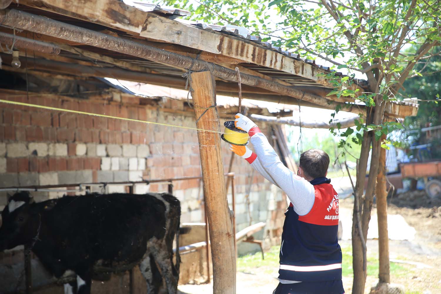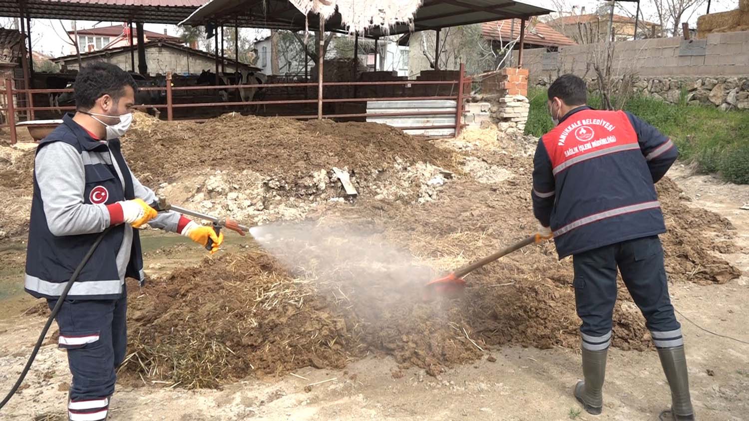 Pamukkale Belediyesi’nin tarım ve hayvancılıkla uğraşan besicilere, daha sağlıklı, yüksek verimli, kaliteli üretim yapabilmeleri için ücretsiz Veteriner Danışmanlık Hizmeti de devam ederken, periyodik olarak 10 günde bir besihanede karasinek larvası ve ergin (uçkun) karasinek ilaçlamaları da aralıksız sürüyor. Pamukkale Belediyesi Sağlık İşleri Müdürlüğü’nün düzenli olarak devam ettirdiği uygulama, ilçede bulunan yaklaşık 2 bin 500 besihaneyi tek tek dolaşarak ücretsiz olarak yapışkan ip uygulaması yapıyor. Her yıl Nisan ayında başlayan mücadele çalışmaları Kasım ayı başına kadar sürdürülüyor ve ekipler bu aylarda 10 günde bir tüm besihaneleri dolaşarak ipleri yenileyerek, gübre atıklarının olduğu bölgelerde ilaçlama çalışmalarını gerçekleştiriyor. Pamukkale Belediye Başkanı Avni Örki, 61 mahalleye sahip ilçenin 31’inde vatandaşların tarım ve hayvancılıkla uğraştığını belirterek, “Turizmle adı ön plan çıkan Pamukkale’mizde tarım ve hayvancılıkta da ön planda. Tarım alanında kekik, lavanta, nar, ayva ile ünlü olan ilçemiz de hayvancılıkta ön plandadır. İlçe genelimizde, 2022 yılı rakamlarına göre yaklaşık 20 bin büyükbaş hayvan, 38 bin civarında da küçükbaş hayvan bulunuyor. Bu hayvan sayılarına göre de ilçemizde 2 bin 500’ü aşkın besihane işletmesi bulunuyor. Pamukkale Belediyesi olarak da, ilçe halkımıza en iyi hizmeti sunma noktasında, hayvancılıkla uğraşan vatandaşlarımızın en büyük sorunlarından olan karasinekle mücadeleye ücretsiz destek vermeye devam ediyoruz. Hem çevre hem de hayvan dostu olan uygulamamızı sürdüreceğiz. Halkımızın her kesiminin olduğu gibi besicilikle uğraşan vatandaşlarımızın da her zaman yanlarında olacağız” diye konuştu.
