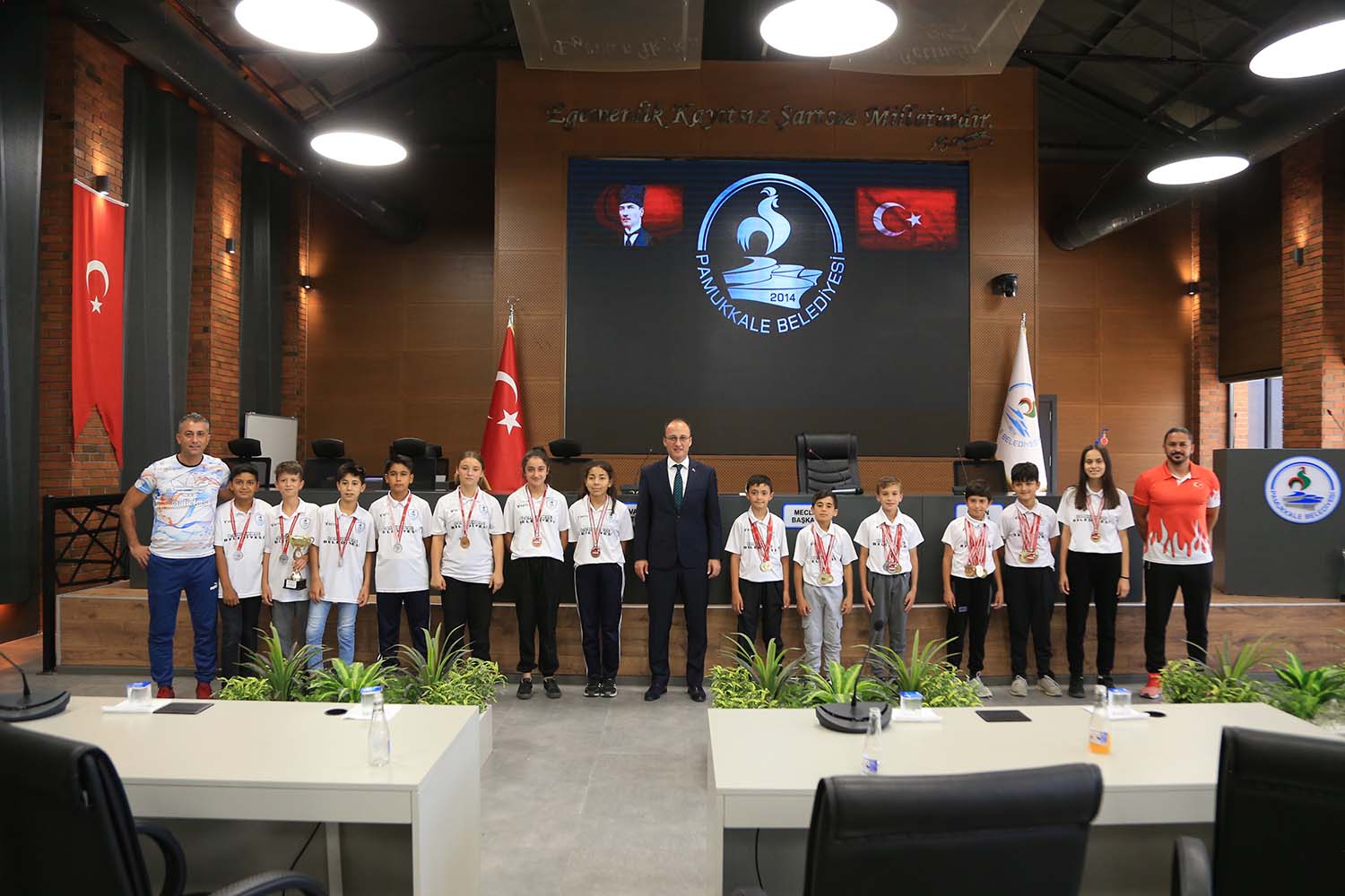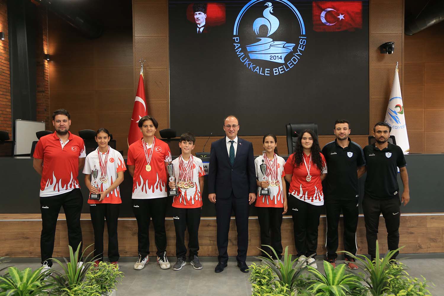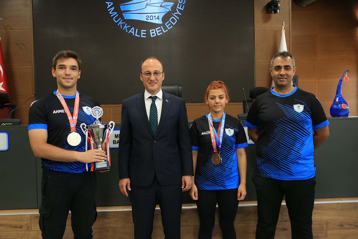 Pamukkale Belediyespor Onursal Başkanı ve Pamukkale Belediye Başkanı Avni Örki, Pamukkale Belediyespor’un madalya ve kupa kazanan sporcularıyla buluştu. Başkan Örki, “Pamukkale Belediyespor'umuzun başarıları yüzümüzü güldürmeye devam ediyor. 16'sı milli sporcu olan, Mayıs ayında kupa ve madalyalar kazanan 28 sporcumuzla birlikte, Denizli'mizin, Pamukkale'mizin ve ülkemizin adını başarıyla duyuran tüm sporcularımızı tebrik ediyor, başarılarınızın devamını diliyorum” dedi.