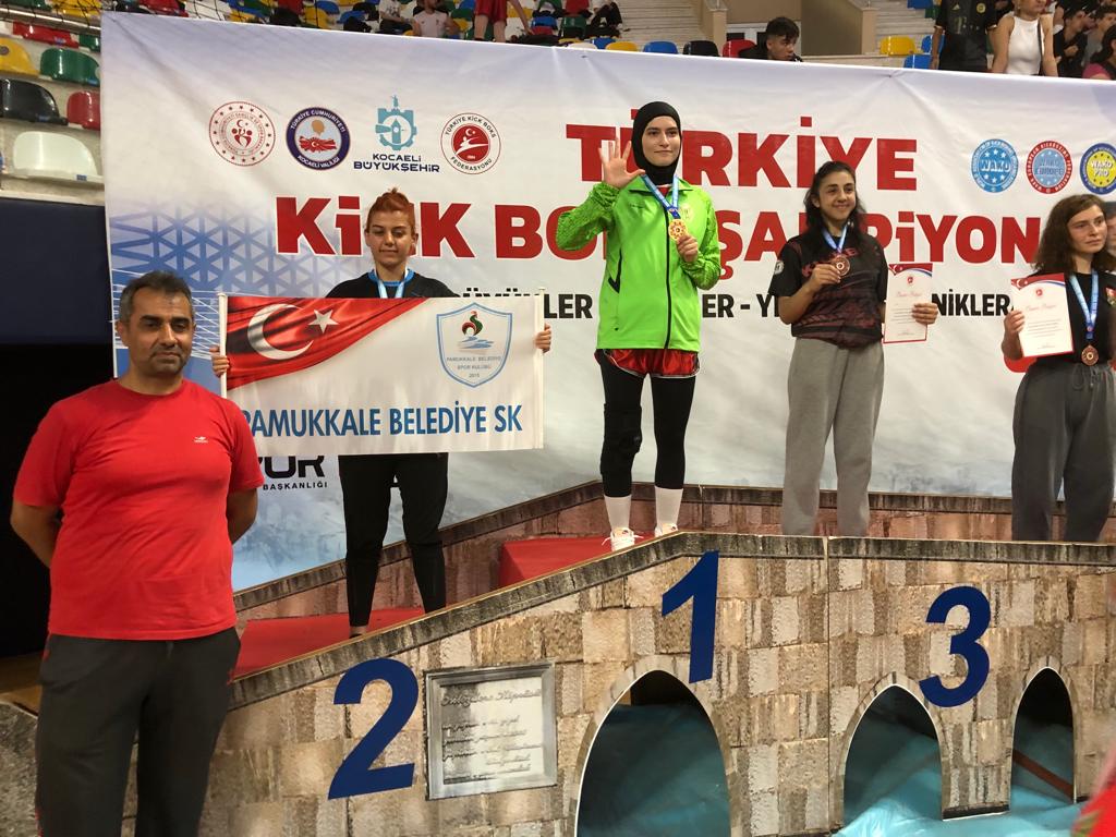 Pamukkale Belediyespor’da başarılar gelmeye devam ediyor. Pamukkale Belediyespor Kick Boks takımı 20-27 Haziran tarihleri arasında Kocaeli’nde gerçekleşen Türkiye Kick Boks Şampiyonasında 1 altın 1 gümüş madalya kazandı. Genel puan sıralamasında kendi kategorisinde 1. ve 2. olmayı başaran Pamukkale Belediyesporlu sporcular Ahmet Burak Canbeldek ve Nazife Güçlü Milli Takım’a katılmaya hak kazandı.