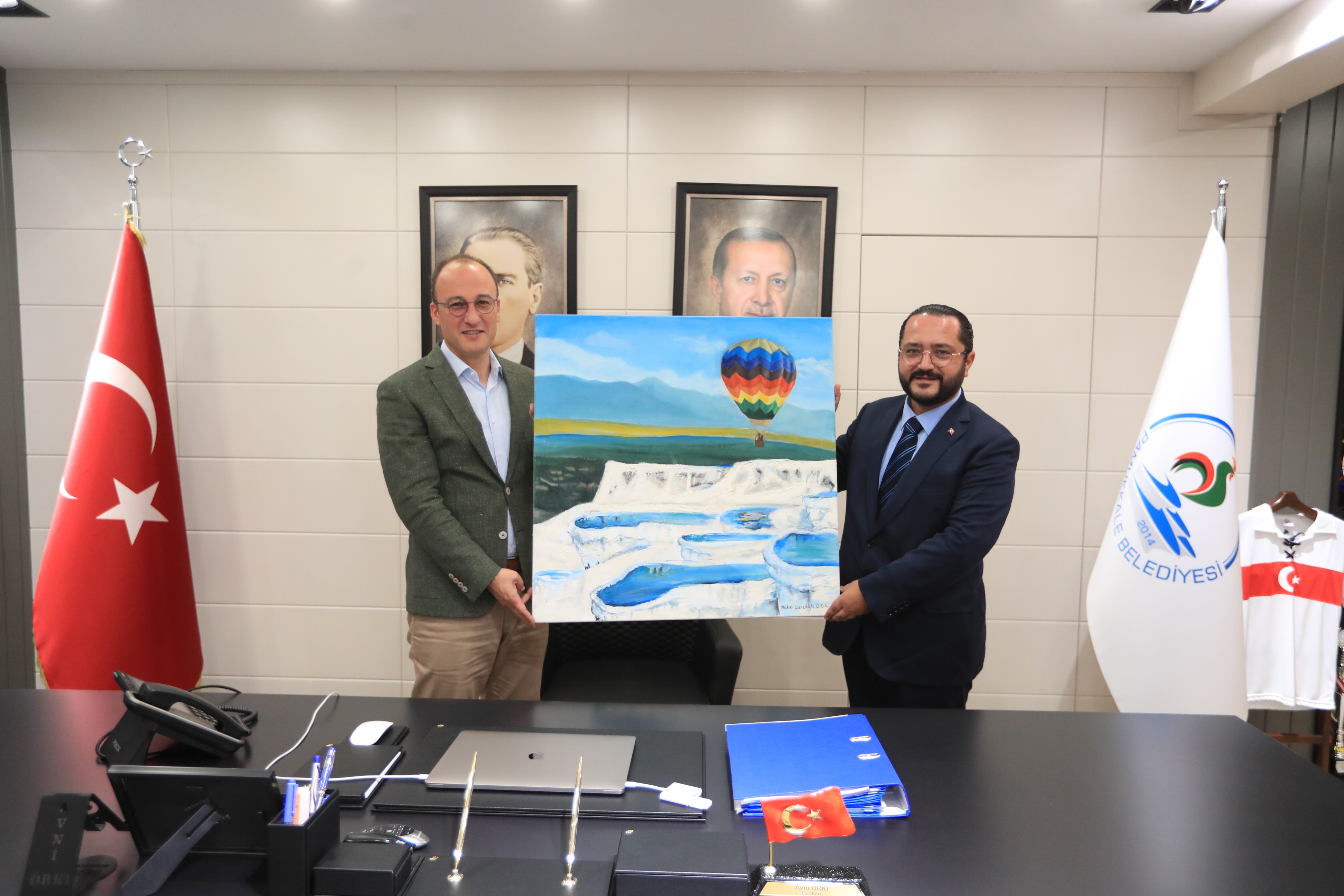 MHP Pamukkale İlçe Başkanı Av. Mehmet Ali Yılmaz ise Başkan Örki’ye teşekkür ederek, “MHP Pamukkale ilçe teşkilatı olarak yeni bir enerji yeni bir sinerji ile yola çıktık. 2023 ve 2024 seçimlerine daha hazır olacağız. Biz Cumhur İttifakı’nın ne demek olduğunu biliyoruz. Genel Başkanımız Devlet Bahçeli’nin talimatıyla önce ülkem ve milletim, sonra partim ve ben anlayışıyla hareket ediyoruz. Denizli’mizde ve Pamukkale’mizde Cumhur İttifakı olarak bu anlayışla hizmet ediyoruz. Size Pamukkale ilçemizin hiçbir kuruşunu boşa harcamayıp tamamen vatandaşın hizmetine harcadığınız için teşekkür ederim. Cumhur İttifakımızın 2023 ve 2024 seçimlerinde ülke yönetimini tekrar üstleneceğine inanıyoruz. Bu konuda çalışmalarımıza kararlılıkla devam ediyoruz. Bu güne kadar olduğu gibi bundan sonra da sizin çalışmalarınıza desteğimiz sürecek” diye konuştu. Ziyaret sonunda Pamukkale Belediye Başkanı Avni Örki, MHP Pamukkale İlçe Başkanı Av. Mehmet Ali Yılmaz’a günün anısına Pamukkale tablosu hediye etti.