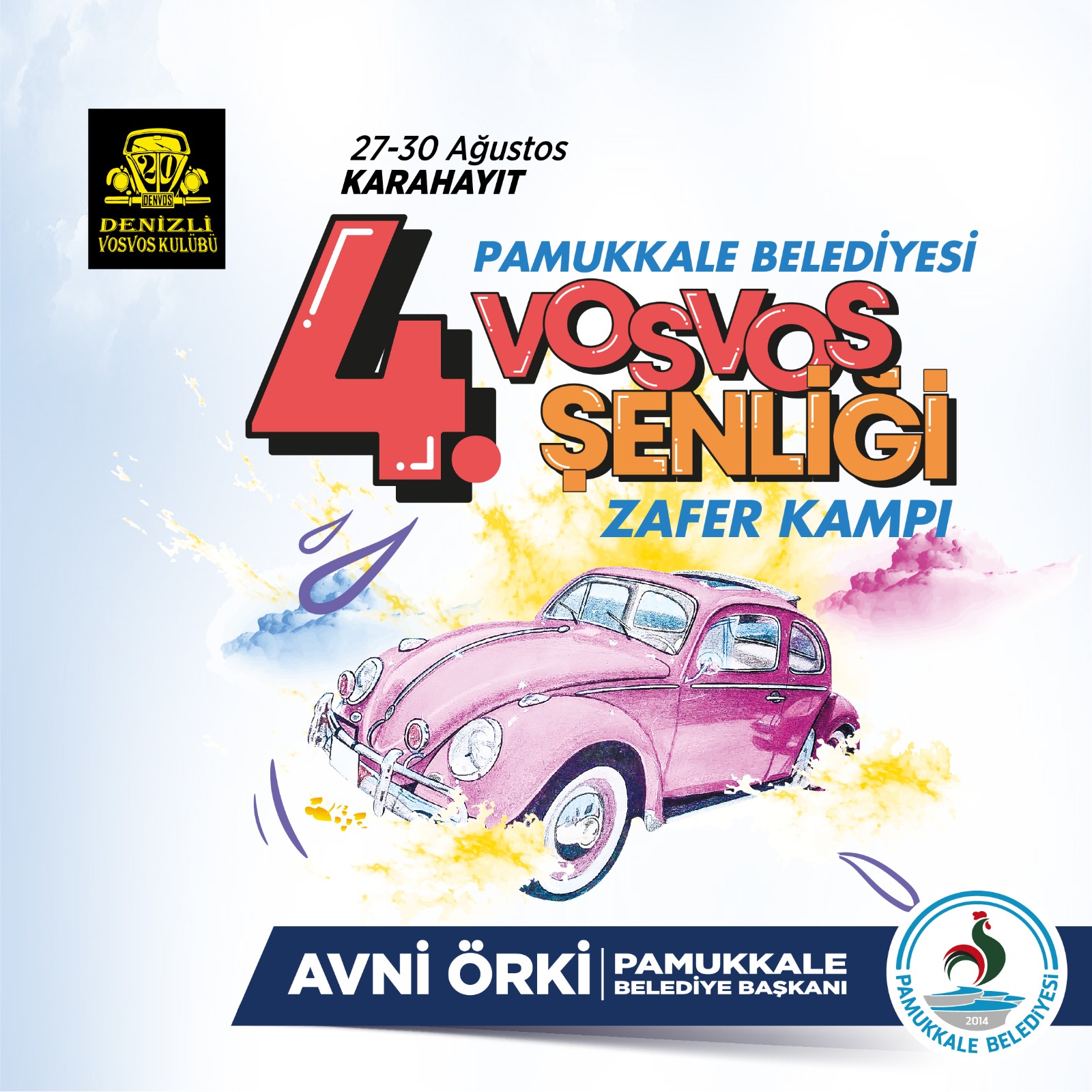 Pamukkale Belediyesi geleneksel hale getirdiği Vosvos Festivali’ni bu yıl 30 Ağustos Zafer Bayramı’nın 100. Yılına denk getirerek, zafer coşkusuna ayrı bir renk katacak. Pamukkale Belediye Başkanı Avni Örki, “Zafer Bayramımızın 100. Yılında Vosvos festivalimizin dördüncüsünü düzenliyoruz. Karahayıt Mahallemizde organize ettiğimiz vosvos şenliğimize tüm vosvos tutkunlarını bekliyoruz” dedi.