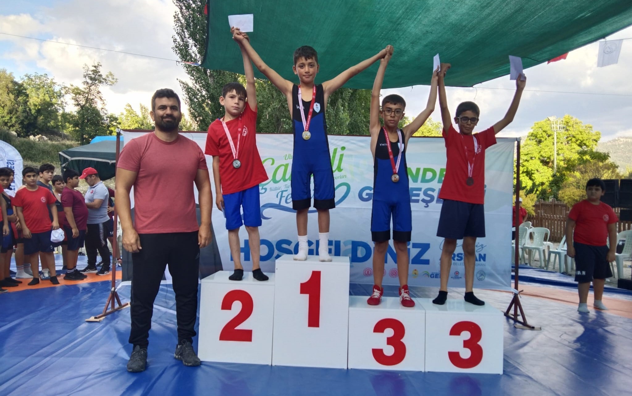 Pamukkale Belediyespor Kulübünün güreş branşı sporcuları, hem minder de hem de yağlı güreşlerden madalya ile döndüler. İki minder güreşi, 2 yağlı güreş olmak üzere 4 farklı turnuvadan toplam 27 madalya ile dönen Pamukkaleli güreşçiler, başarılı sonuçlar almaya devam ediyor. Pamukkale Belediyesporlu minder güreşçileri, 26 Ağustos tarihinde Çameli Kültür ve Spor Festivali’nde miniklerde 3 altın, 4 gümüş ve 7 bronz olmak üzere 14 madalya kazandı. Çameli’de 26 kilogram kategorisinde Enes Kepenek birinci, Mustafa Yurt ikinci oldu. 30 kilogram kategorisinde Cumhur Abay birinci, H. Umut Alver üçüncülük elde etti. 34 kilogram kategorisinde güreşen Eray Özcan ikinci, Kerem Çetin ve Göktuğ Aziz üçüncü oldular. 38 kilogram kategorisinde Daniel Erfani üçüncü; 42 kilogram kategorisinde Ali Bakan birinci ve Semih Gün ise üçüncü oldu. 48 kilogram kategorisinde Ali Rıza Akraman üçüncü; 57 kilogram kategorisinde Hamza Özgür ikinci; 65 kilogram kategorisinde M. Ali Kurt üçüncü ve 75 kilogram kategorisinde Mahmutcan Sarıoğlu ikincilik elde etti. 30 Ağustos Zafer Bayramı’nın 100. yıl dönümünde Çivril’de gerçekleştirilen Minikler Greko Romen Minder Güreş Turnuvası’nda mavi beyazlı kulübün minder güreşçileri 3 altın, 3 gümüş ve 4 bronz olmak üzere 10 madalya kazandı. Çivril’de 26 kilogram kategorisinde Enes Kepenek birinci; 30 kilogramda Hakan Yiğit Bulut birinci; Eray Özcan’da 34 kilogram kategorisinde birincilik elde ederken, H. Umut Alver ikinci, Emir Ali Moradi üçüncü oldular. 38 kilogram kategorisinde Yahya Sönmez üçüncü; 44 kilogram kategorisinde Ali Bakan üçüncü, 62 kilogram kategorisinde Osman Şimşek ikinci; 75 kilogram kategorisinde M. Ali Kurt ikinci olurken, Mahmut Can Sarıoğlu üçüncülük elde etti.