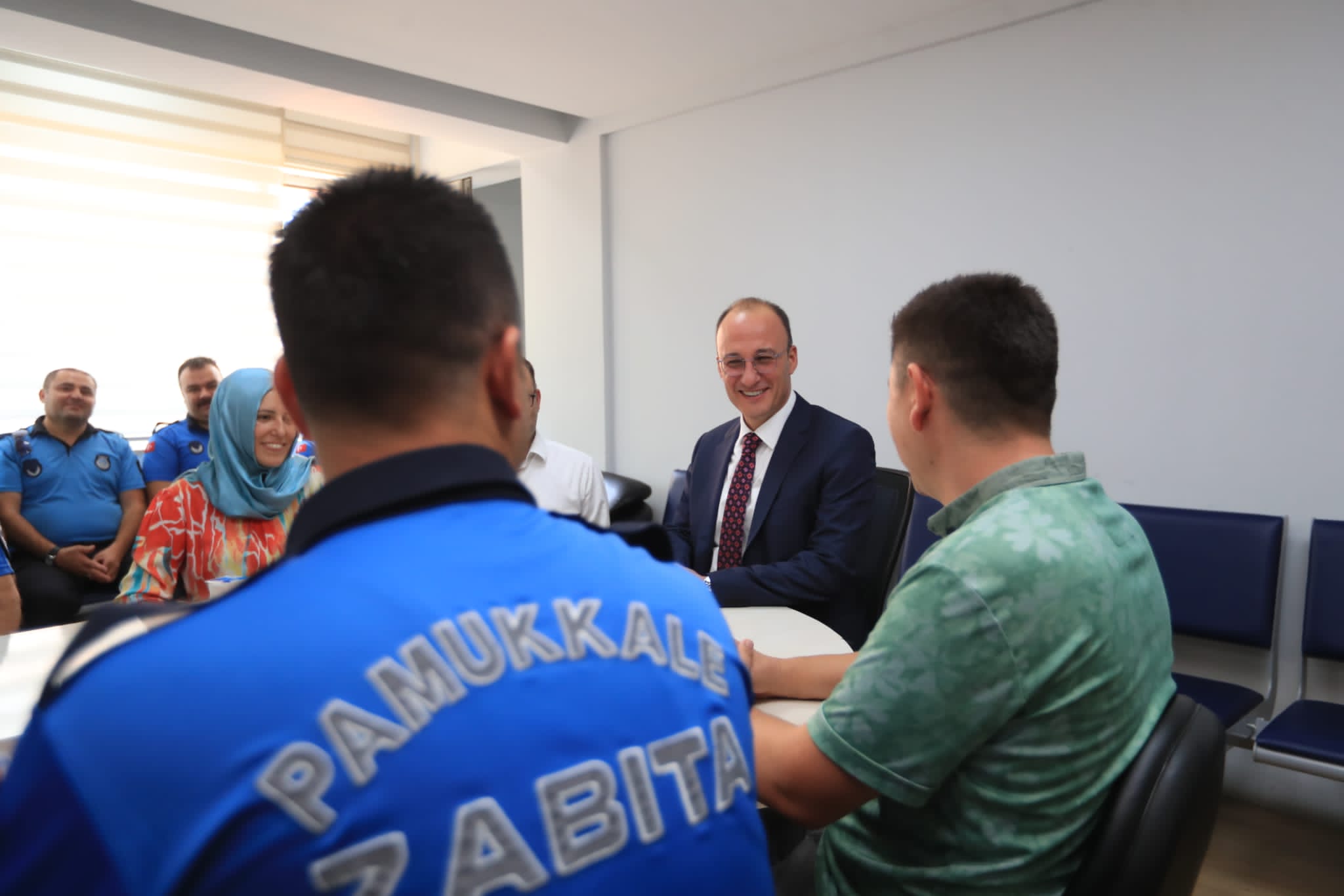 Pamukkale Belediye Başkanı Avni Örki, Zabıta Teşkilatı’nın 196. Kuruluş yıl dönümü dolayısıyla Zabıta Müdürlüğü’nü ziyaret etti. Belediye Başkanı Avni Örki, “Bir ilçedeki mutluluk, huzur, düzen, tertip belediyelerin içerisinde bulunan zabıtaların görevlerini yapması sayesinde tesis edilir” dedi.