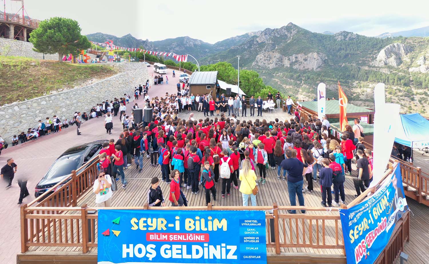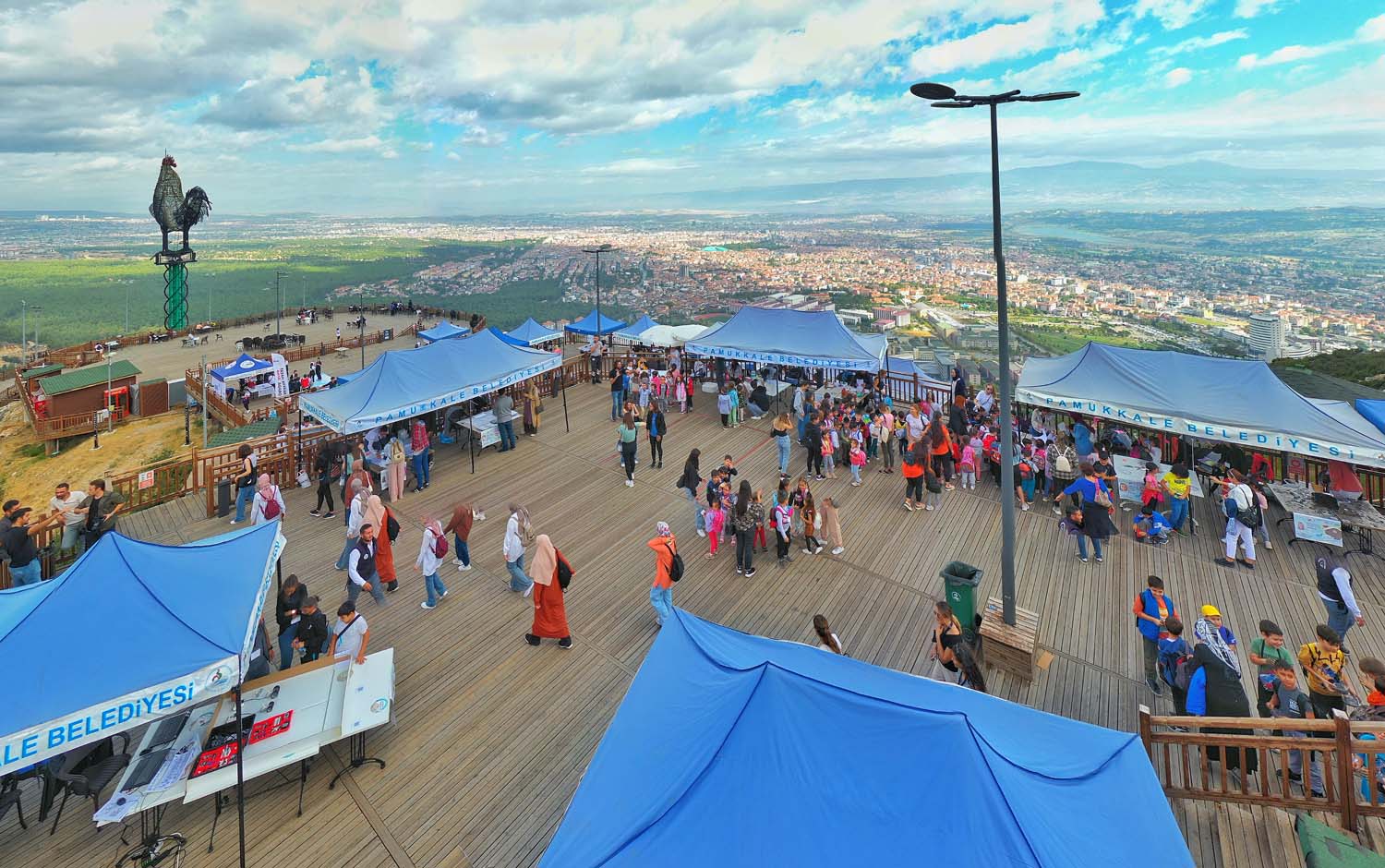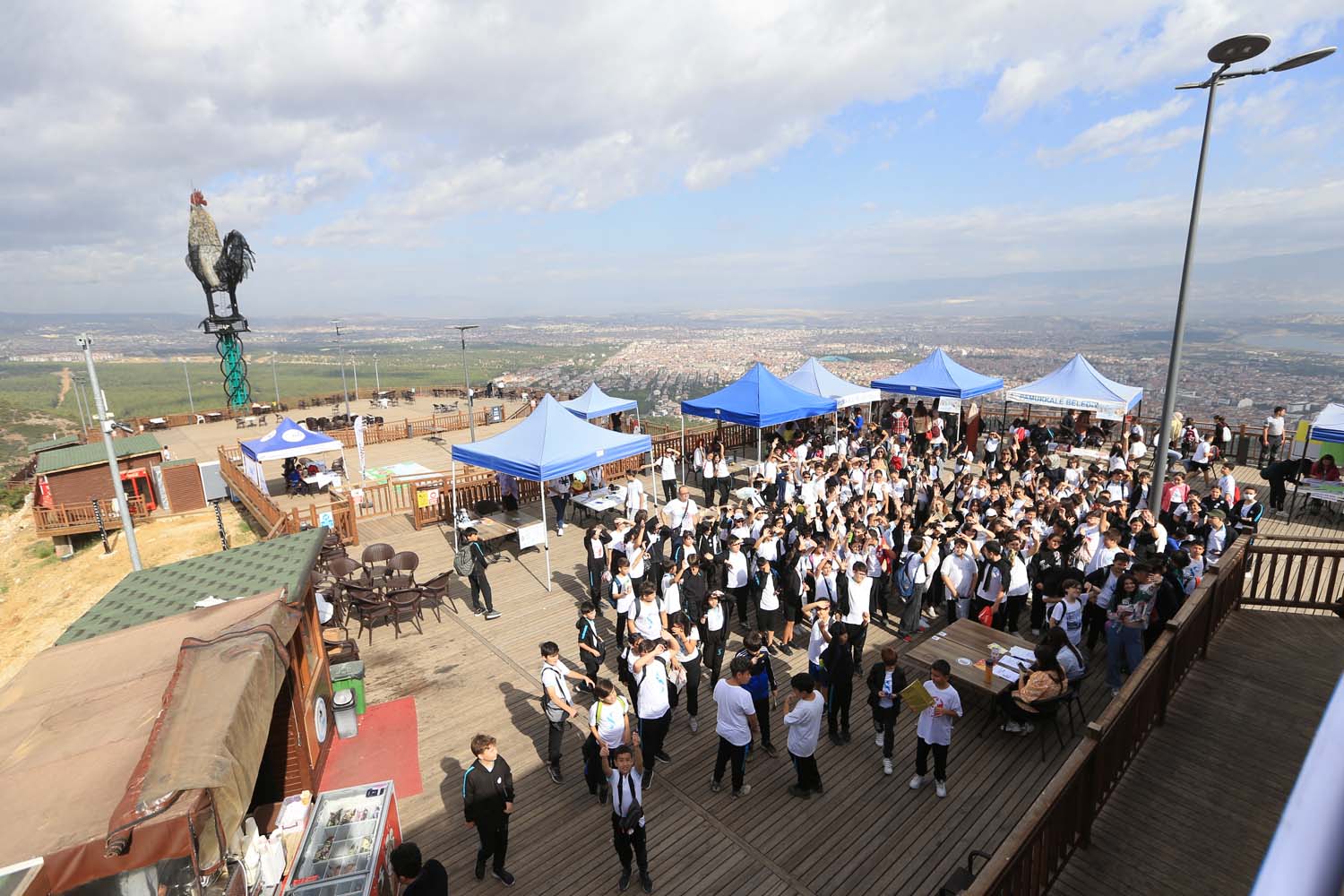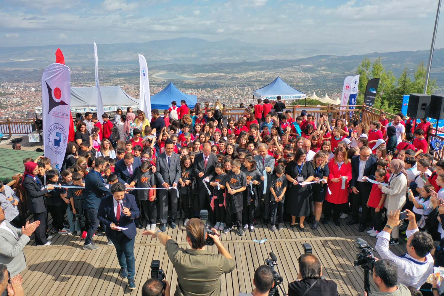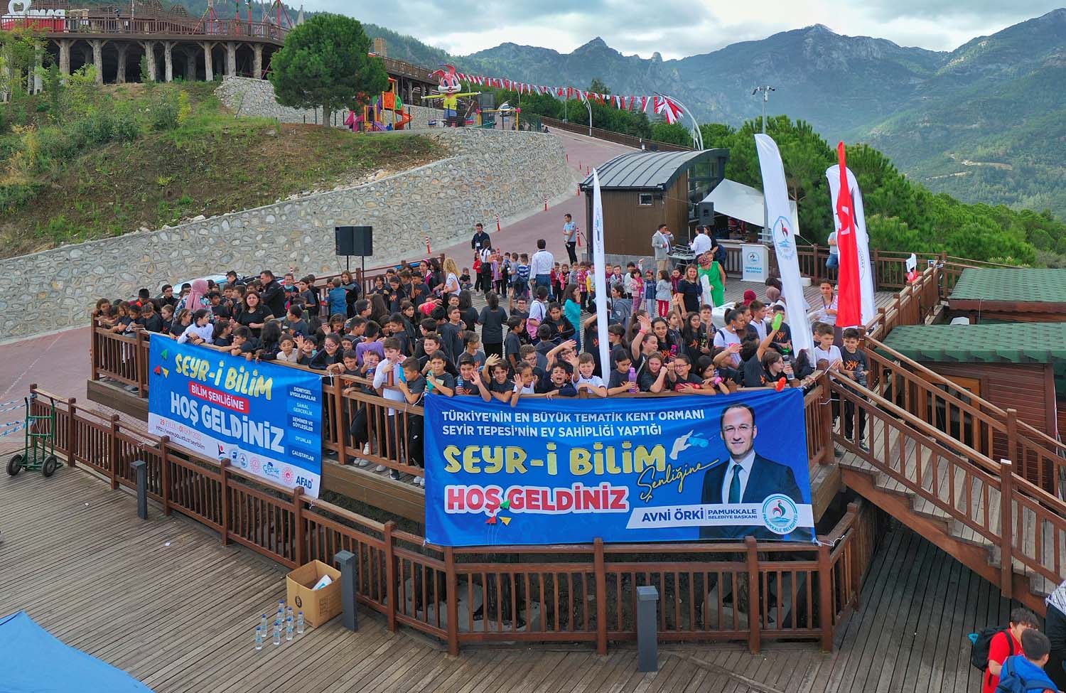 Pamukkale Belediyesi’nin ev sahipliğinde düzenlenen “Seyr-i Bilim Şenliği” ile Seyir Tepesi Şehir Ormanı, bilim tepesine dönüştü. Şenliğin açılışında konuşan Pamukkale Belediye Başkanı Avni Örki, “Bilim hayatımızın her alanında bize yardımcı oluyor. Bizim de gayemiz bilimi 7’den 77’ye toplumun her kesimiyle buluşturmak. Bu amacımıza ulaşabilmenin mutluluğuyla görüyoruz ki bugün Seyir Tepesi bilim tepesine dönüştü” dedi.