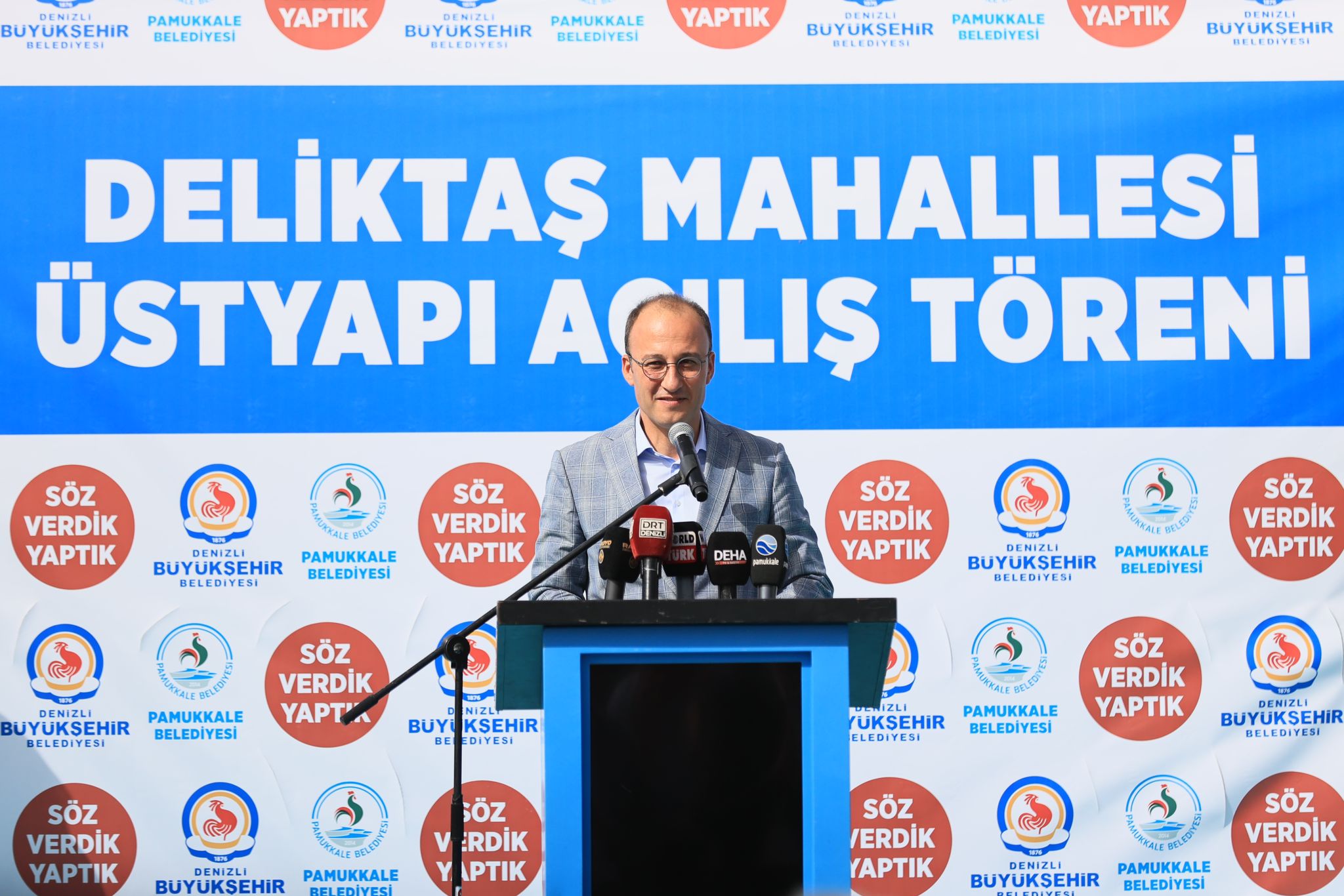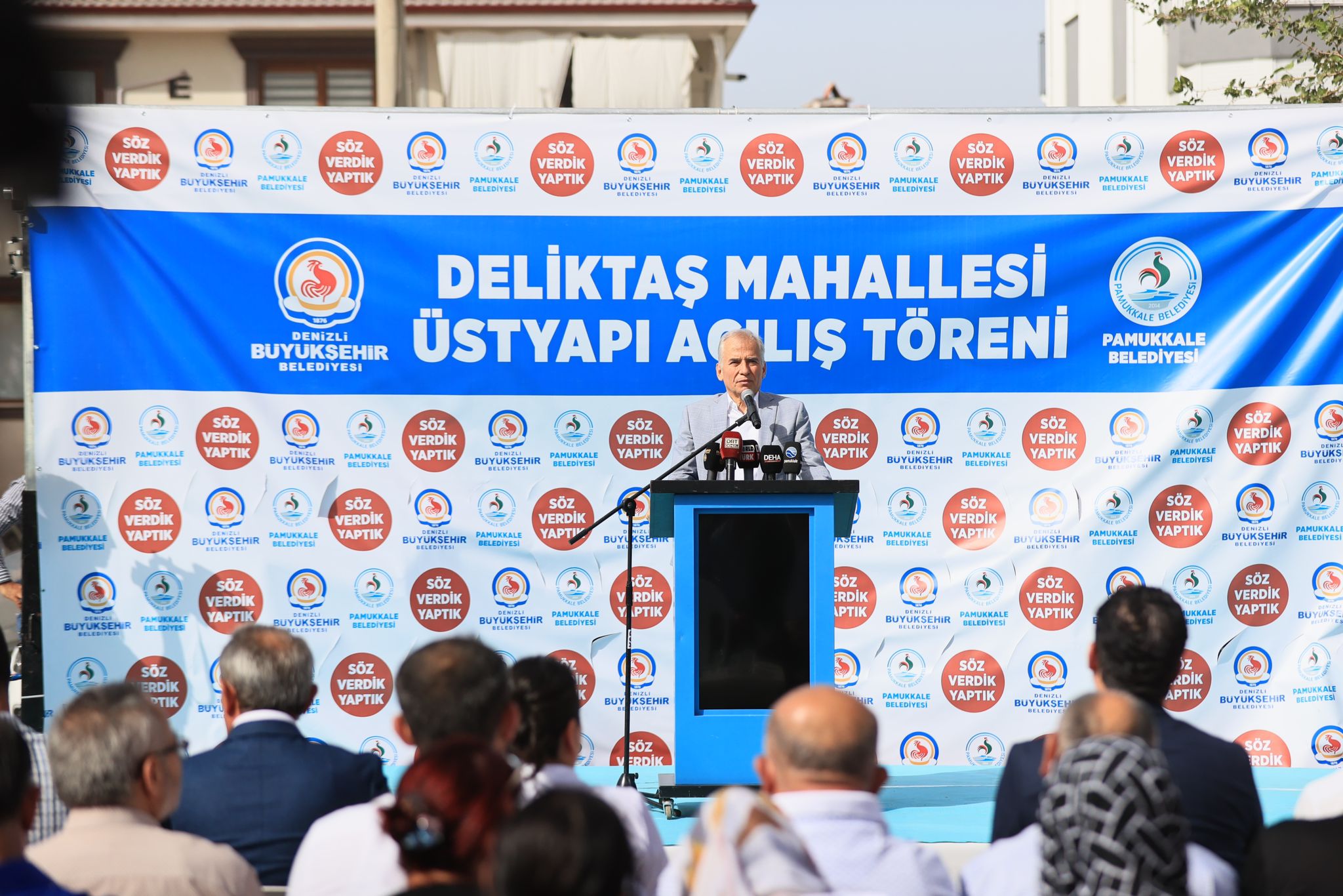 Denizli Büyükşehir Belediyesi tarafından altyapısı, Pamukkale Belediyesi tarafından ise üstyapısı tamamlanan Deliktaş Mahallesi’nde Üstyapı Açılış Töreni yapıldı. Deliktaş Mahallesi’nde düzenlenen programa, AK Parti Denizli Milletvekili Şahin Tin ve Nilgün Ök, Büyükşehir Belediye Başkanı Osman Zolan, Pamukkale Kaymakamı Uğur Bulut, Pamukkale Belediye Başkanı Avni Örki, AK Parti Denizli İl Başkanı Yücel Güngör, meclis üyeleri, mahalle muhtarları, davetliler ve çok sayıda vatandaş katıldı. Başkan Örki törenin açılış konuşmasında Deliktaş’ın sadece altyapı ve üstyapı yatırımlarıyla değil Büyükşehir ve Pamukkale Belediyesi tarafından birçok hizmetle taçlandırıldığını söyledi. Altyapısı tamamlanmayan mahallelerde yapılan üstyapının mutlaka bozulup parçalanmaya mahkum olduğunu vurgulayan Başkan Örki, “Öyle olduğunda da vatandaşlarımızın vergileri havaya uçup gitmiş olur. Ancak Deliktaş Mahallemizde Başkanımız Sayın Osman Zolan Bey’in cesaretli adımlarıyla devasa bir altyapı çalışması yapıldı. Öncelikle kendisine çok teşekkür ediyorum” dedi.