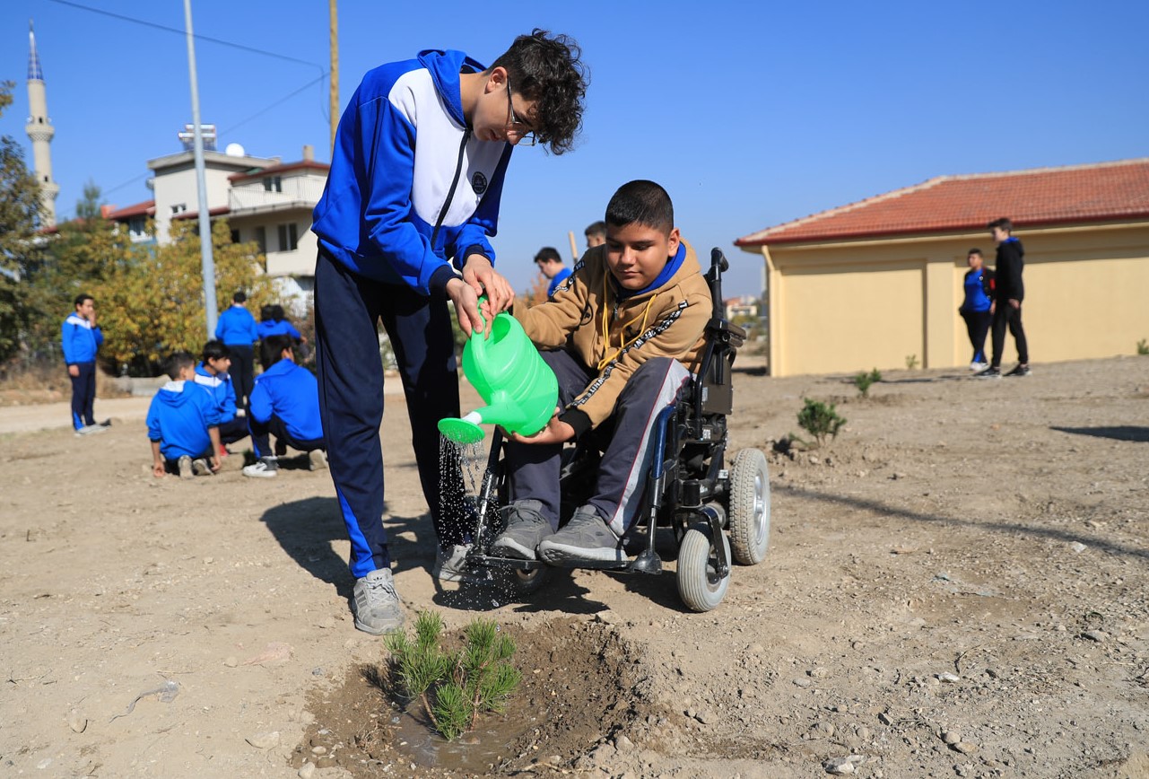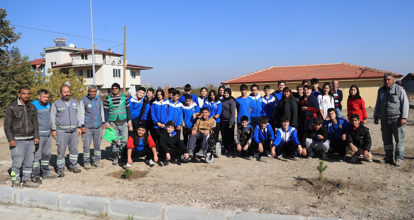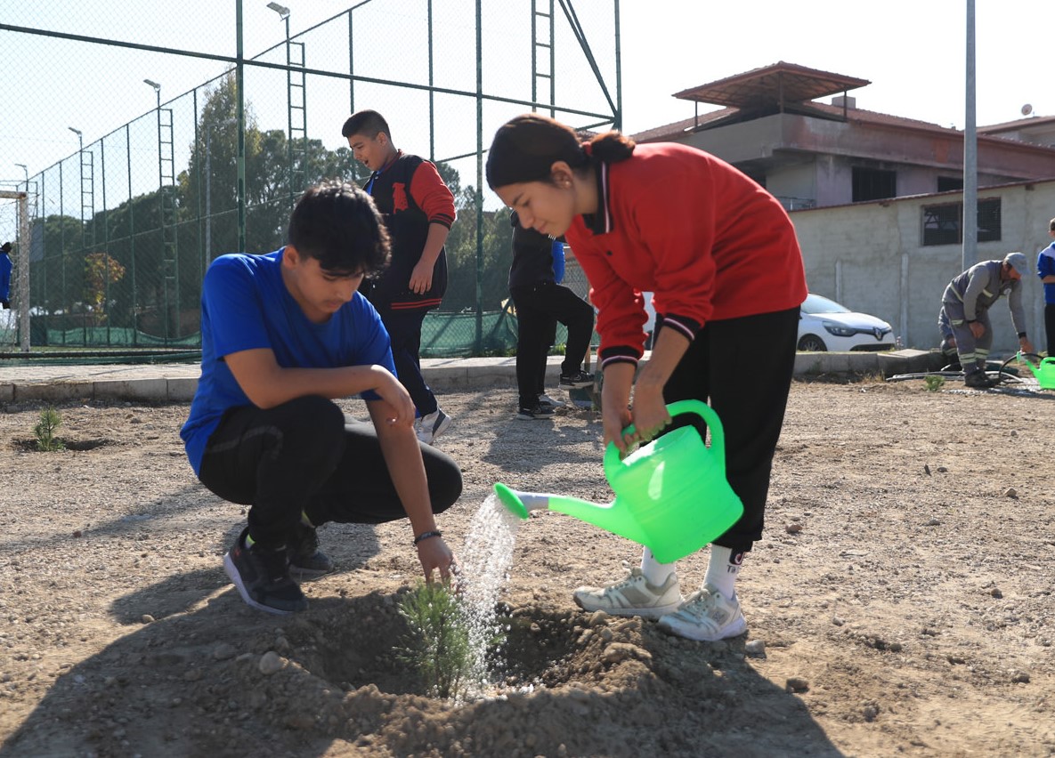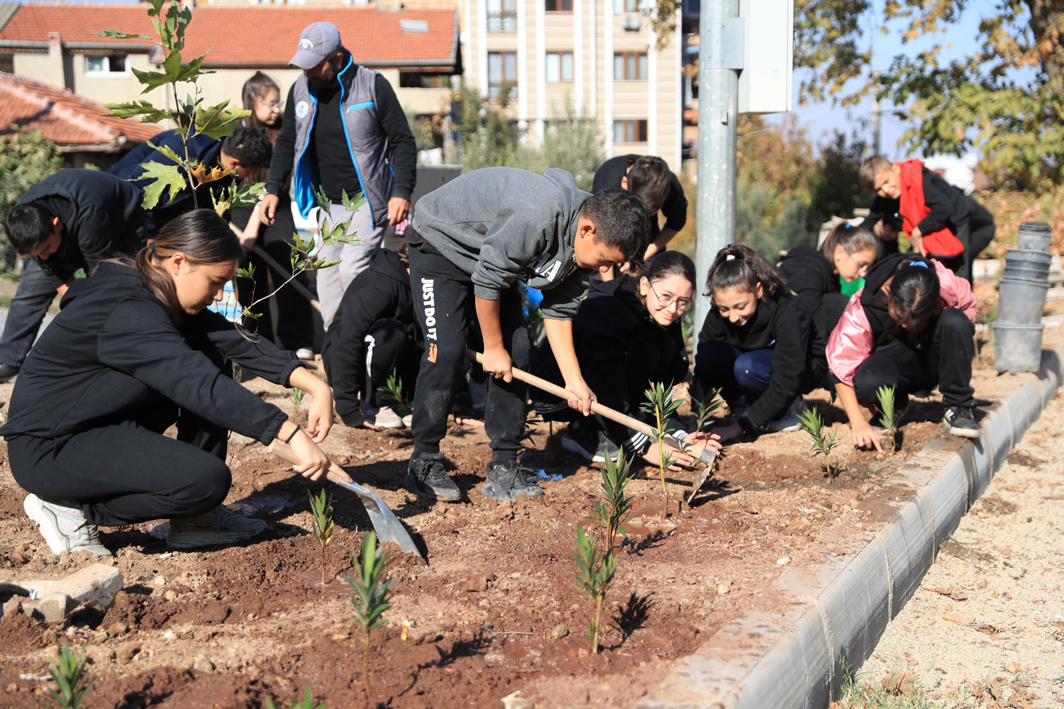 BAŞKAN ÖĞRENCİLERLE FİDAN DİKTİ