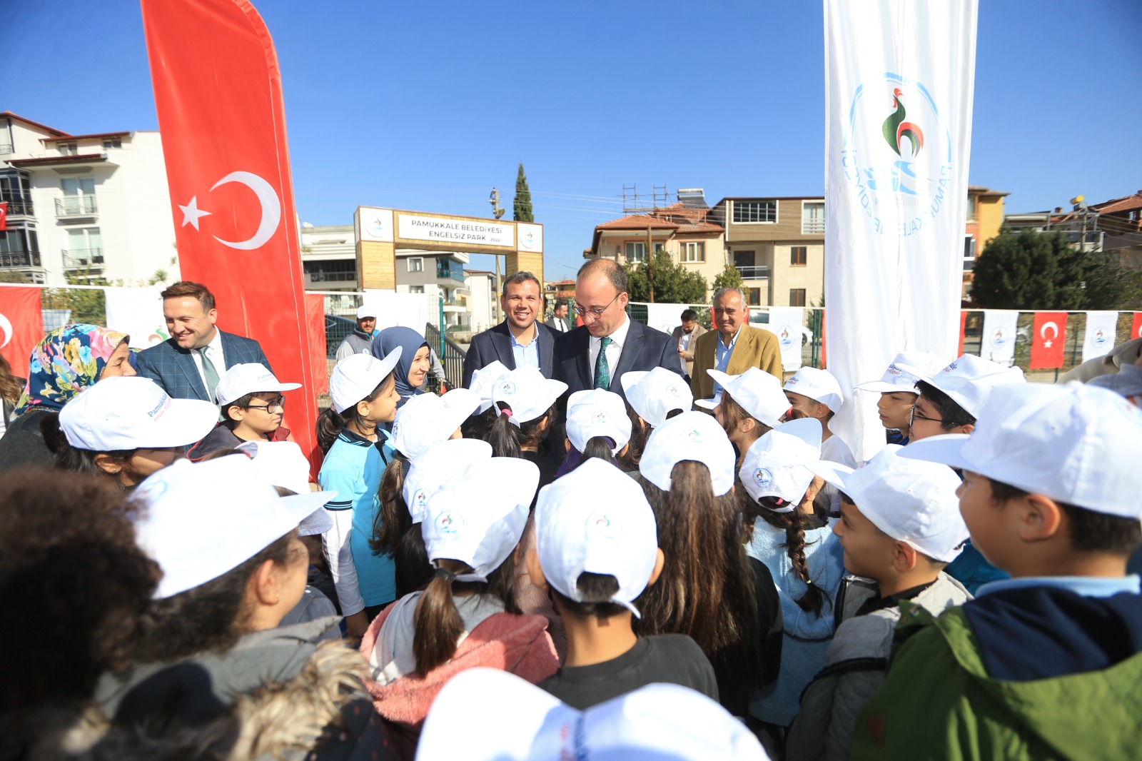 Pamukkale Belediye Başkanı Avni Örki, Bağbaşı Mahallesi’nde yapılan Engelsiz Park’ta düzenlenen fidan dikme törenine katıldı. Yeniden Diriliş Özel Eğitim ve Rehabilitasyon Merkezi ve Hüsamettin Kulaklı İlkokulu’nda öğrenim gören öğrencilerle birlikte yüzlerce fidanı toprakla buluşturan Başkan Örki’ye öğrenciler büyük ilgi gösterdi. Burada bir açıklama yapan Başkan Örki, “Bu mahallemizde engelsiz parkımızı özel meleklerimiz için yapmıştık. Bugün de 11 ayrı noktada aynı anda 11 bin 11 fidan dikim şenliğini gerçekleştiriyoruz. Burada sizlerle birlikte binlerce fidanı toprakla buluşturuyoruz. Dikilen bu ağaçlar dünyamızın oksijen kaynağı oluyor. O nedenle her fırsatta fidan dikip ormanlar oluşturmalı. Sizler de bu ağaçlar gibi güçlü köklere sahip olun ki hiçbir rüzgâr sizi yıkamasın. Biz her çocuğumuzu bir ağaç olarak görüyoruz. Hepsi yan yana gelerek güçlü bir orman oluştursun istiyoruz. Bugün dikilecek olan fidanlar sizlerin Türkiye’nin yüz yılına attığınız eser olarak görüyoruz. Bu fidanlarla Türkiye’nin yüz yılına nefes olacağız. Etkinliğimize katıldığınız için hepinize teşekkür ederim” dedi. Başkan Örki, öğrencilerle birlikte fidanları toprakla buluşturup can suyu verdi.