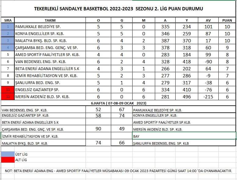 Pamukkale Belediyespor, başarılı sonuçlar almaya her branşta devam ediyor. Kulübün ilk kurulan branşı olan Tekerlekli Sandalye Basketbol Takımı, bu sezon mücadele ettiği 2. Lig’de geride kalan 6 haftada oynadığı 5 maçı da kazandı. Mavi-beyazlı ekip hafta sonunda deplasmanda Van Bedensel Engelliler’e konuk olurken salondan 67-52’lik galibiyetle ayrıldı. Pamukkale Belediyespor maç eksiğine rağmen 10 puan ve 101 averajla adını zirveye yazdırdı. Pamukkale Belediyespor ligin 7. Haftasında ise sahasında Engelsiz Gaziantep Spor Kulübü’nü konuk edecek. Mavi-beyazlı takım 4 ekibin üst lige çıkacağı grupta bu sezonu şampiyon olarak tamamlamak istiyor.