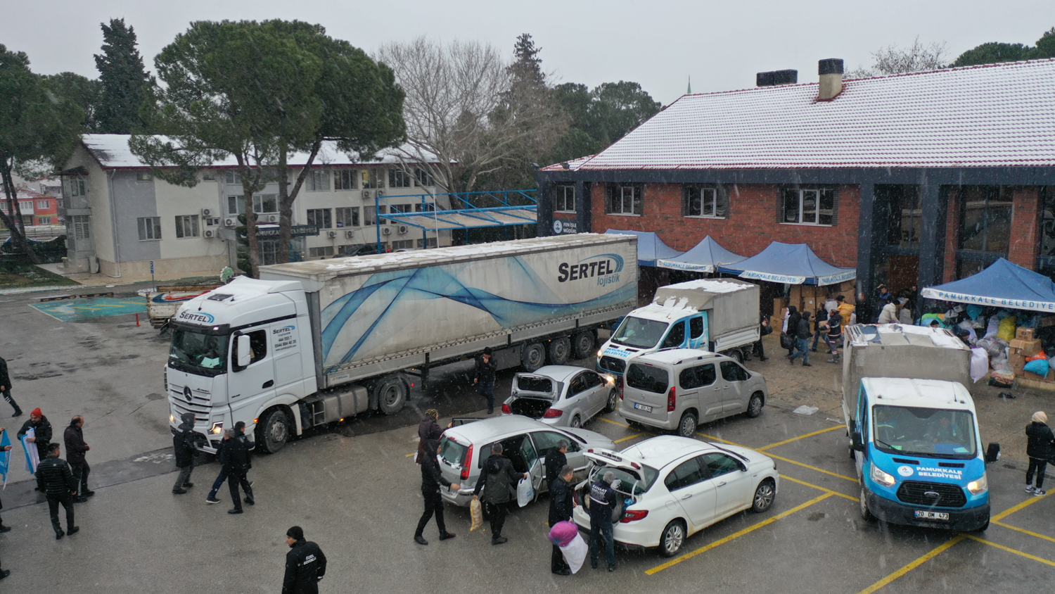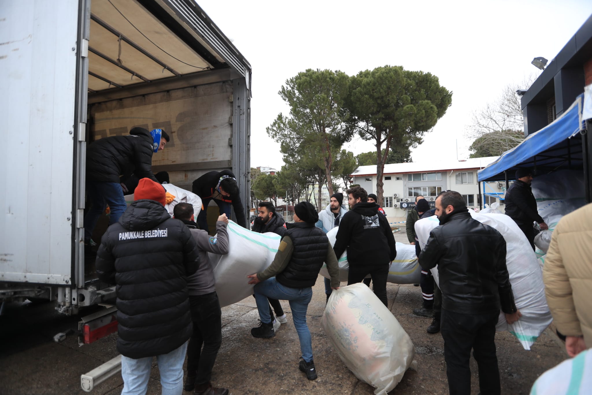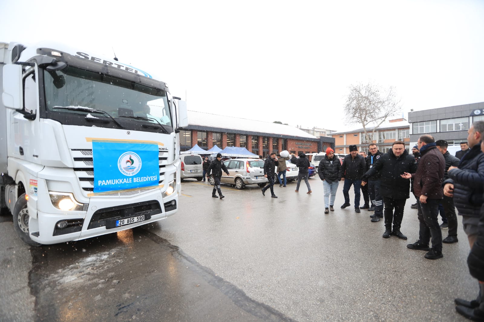 Pamukkale Belediyesinin yardım kampanyası ile toplanan çadır içi soba, uyku tulumu, battaniye, yorgan, eldiven, atkı, bere, mont, bot, bebek bezi, peçete, el feneri, giysi, pil, inşaat eldiveni gibi malzemeleri içeren 2 yardım tırı deprem bölgelerine doğru yola çıktı.
