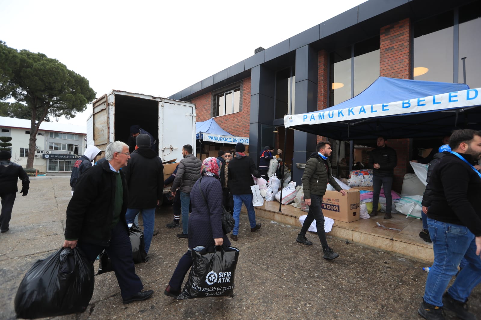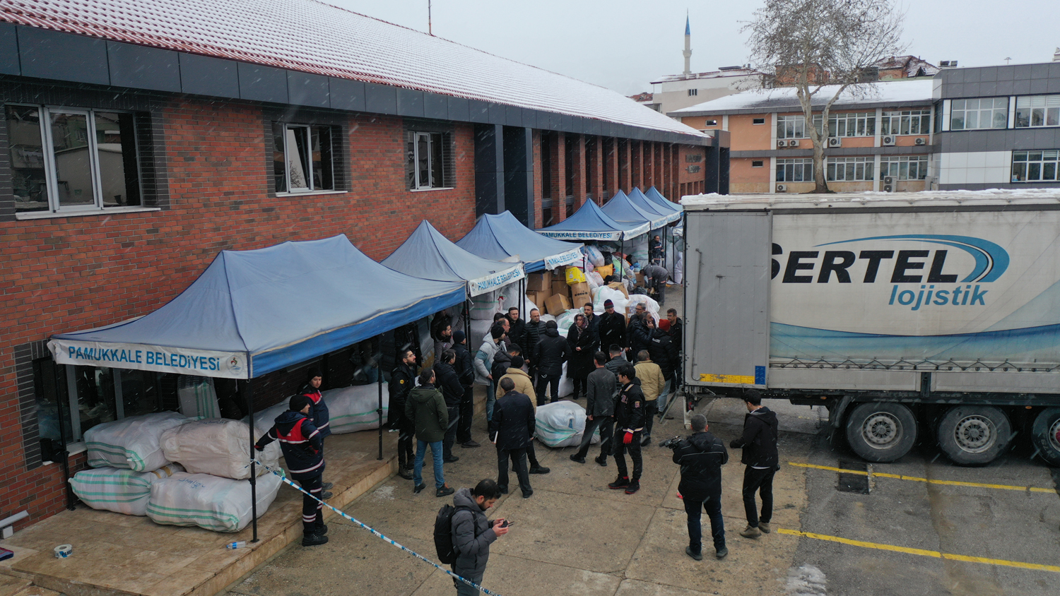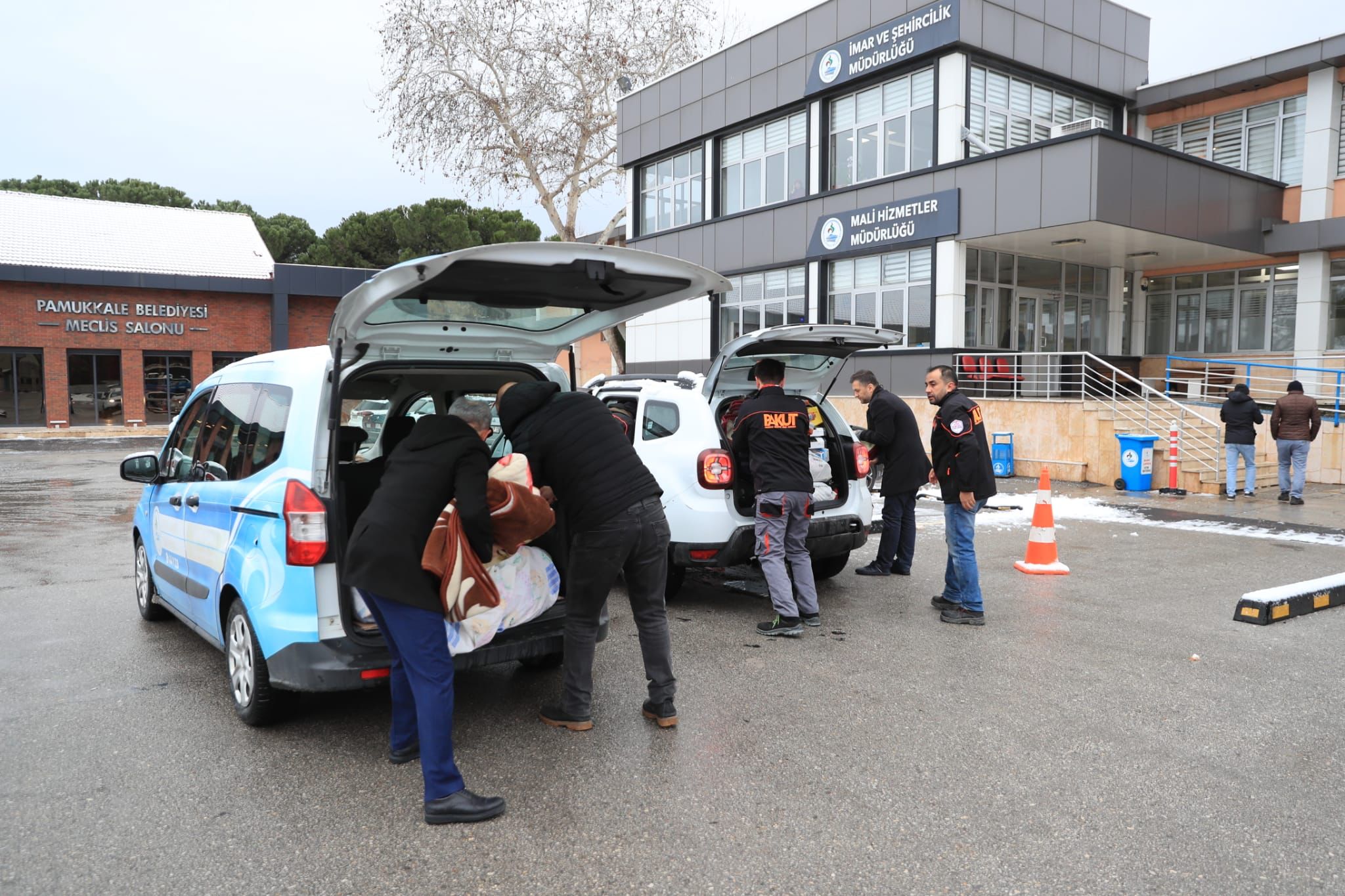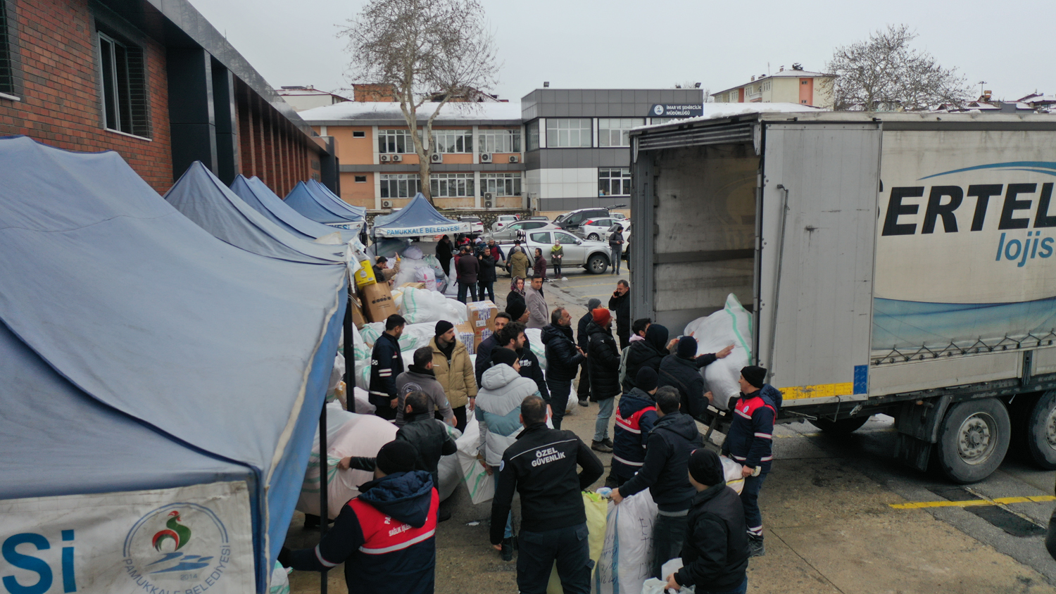 Pamukkale Belediyesinin yardım kampanyası ile toplanan çadır içi soba, uyku tulumu, battaniye, yorgan, eldiven, atkı, bere, mont, bot, bebek bezi, peçete, el feneri, giysi, pil, inşaat eldiveni gibi malzemeleri içeren 2 yardım tırı deprem bölgelerine doğru yola çıktı.