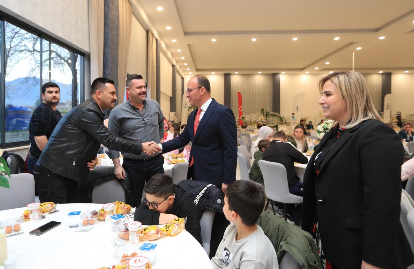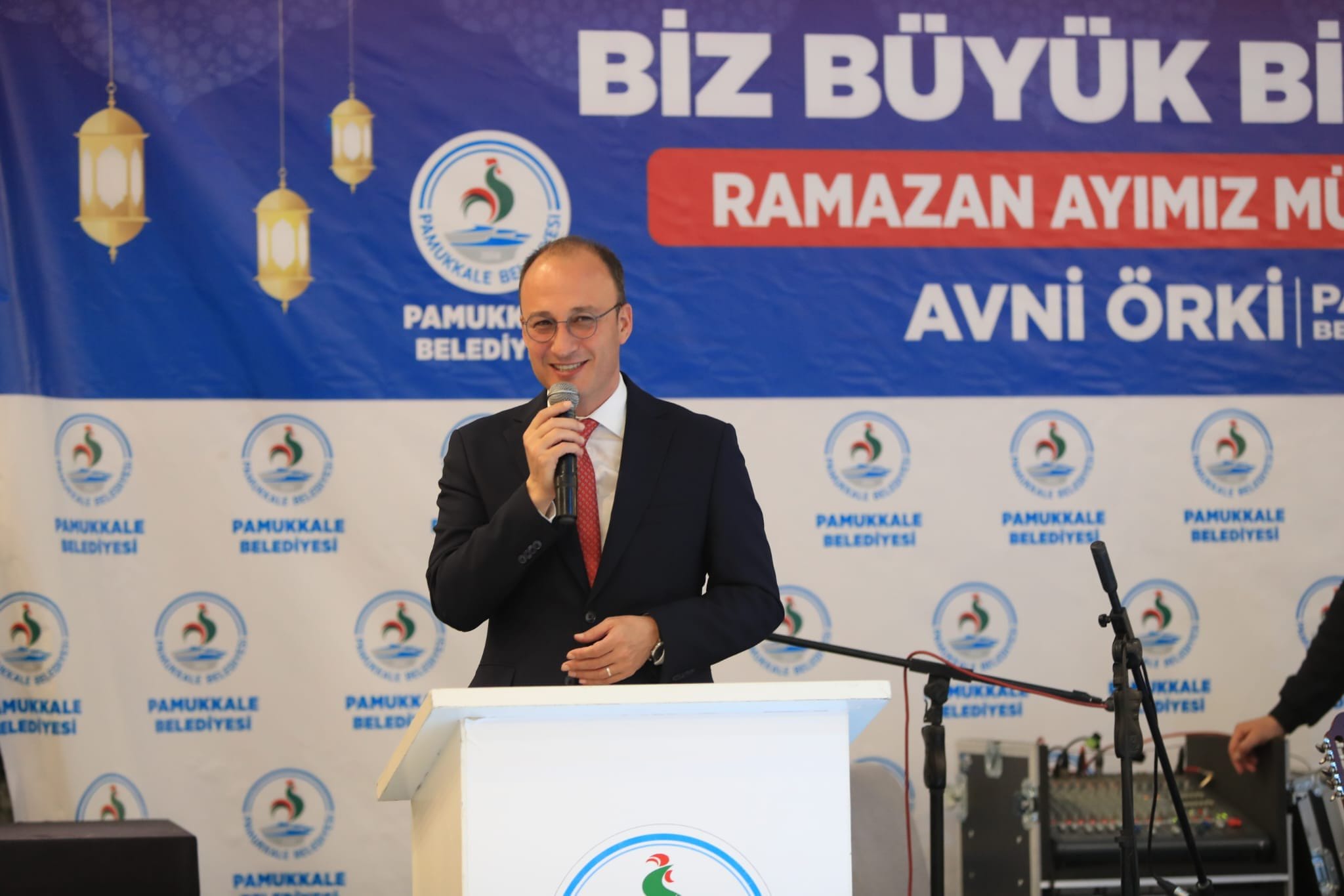İftar yemeğine Pamukkale Belediye Başkanı Avni Örki ve eşi Dr. Nur Örki ev sahipliği yaparken, iftar yemeğine Pamukkale Belediye Meclisi üyeleri, birim müdürleri ve tüm birimlerde çalışan personeller aileleriyle birlikte katıldı. Başkan Örki ve eşi Dr. Nur Örki, tek tek masaları gezerek personellere ve ailelerine hayırlı ramazanlar dileklerini iletti. İftarda konuşma yapan Pamukkale Belediye Başkanı Avni Örki, “Dün Hatay’da İskenderun'daydım. Orada Cumhurbaşkanımız Recep Tayyip Erdoğan ile Milliyetçi Hareket Partisi Başkanı Devlet Bahçeli ile karşılaştık. İki devlet büyüğümüz de Pamukkale’ye selamlarını ileterek Ramazanlarınız mübarek olsun dileklerinde bulundular. Deprem felaketinin ilk gününden itibaren Pamukkale Belediyesi olarak bizler hemen sahaya intikal ettik. Gönüllü olarak gitmek isteyen var mı diye sorduğumuzda personellerimize, herkes elini kaldırdı. Pamukkale Belediye personellerinin amirinden, memuruna, işçisine hepsi deprem bölgesindeydi. Bir baktım temizlik personellerimiz çevreyi temizliyor, mimarlarımız, mühendislerimiz hasar tespit çalışmalarında, PAKUT ekibindeki personellerimiz göçük altındaki canları kurtarmaya çalışıyor. Sizlerle gurur duyuyorum Allah razı olsun hepinizden. Sizlerle birlikte yol yürüdüğüm için ne kadar şükretsem azdır. İnşallah sağlık, sıhhat içerisinde birlik beraberlik içerisinde birlikte nice Ramazanlar yaşarız. Hepinizin Ramazan’ı mübarek olsun” dedi. İftarda Pamukkale Belediyesi personelleri bir arada olmanın mutluluğunu yaşadılar.