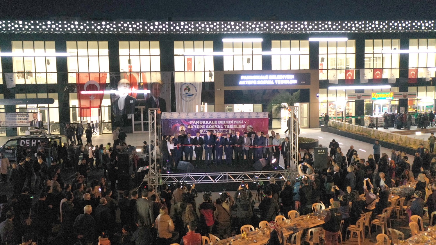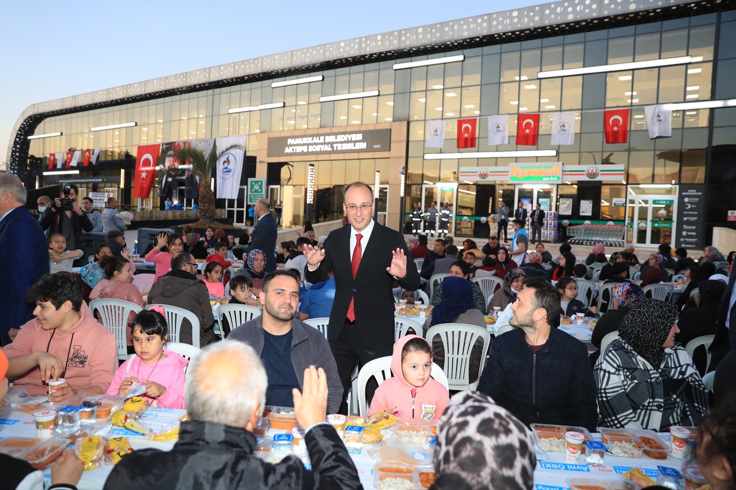 İlçeye değer katan projelere imza atan Pamukkale Belediyesi, Aktepe Sosyal Tesisleri’nin açılışını binlerce kişinin katıldığı iftar yemeğiyle gerçekleştirdi. 10 bin metrekare kapalı alan ve 4 kattan oluşan dev tesisin açılışında konuşan Pamukkale Belediye Başkanı Avni Örki, “Sadece ilçemize değil, Denizli’mize de değer katacak olan ve güncel maliyeti 175 milyon TL olan bu eseri tamamlamak bize nasip oldu. Tesisimiz hayırlı uğurlu olsun” dedi.