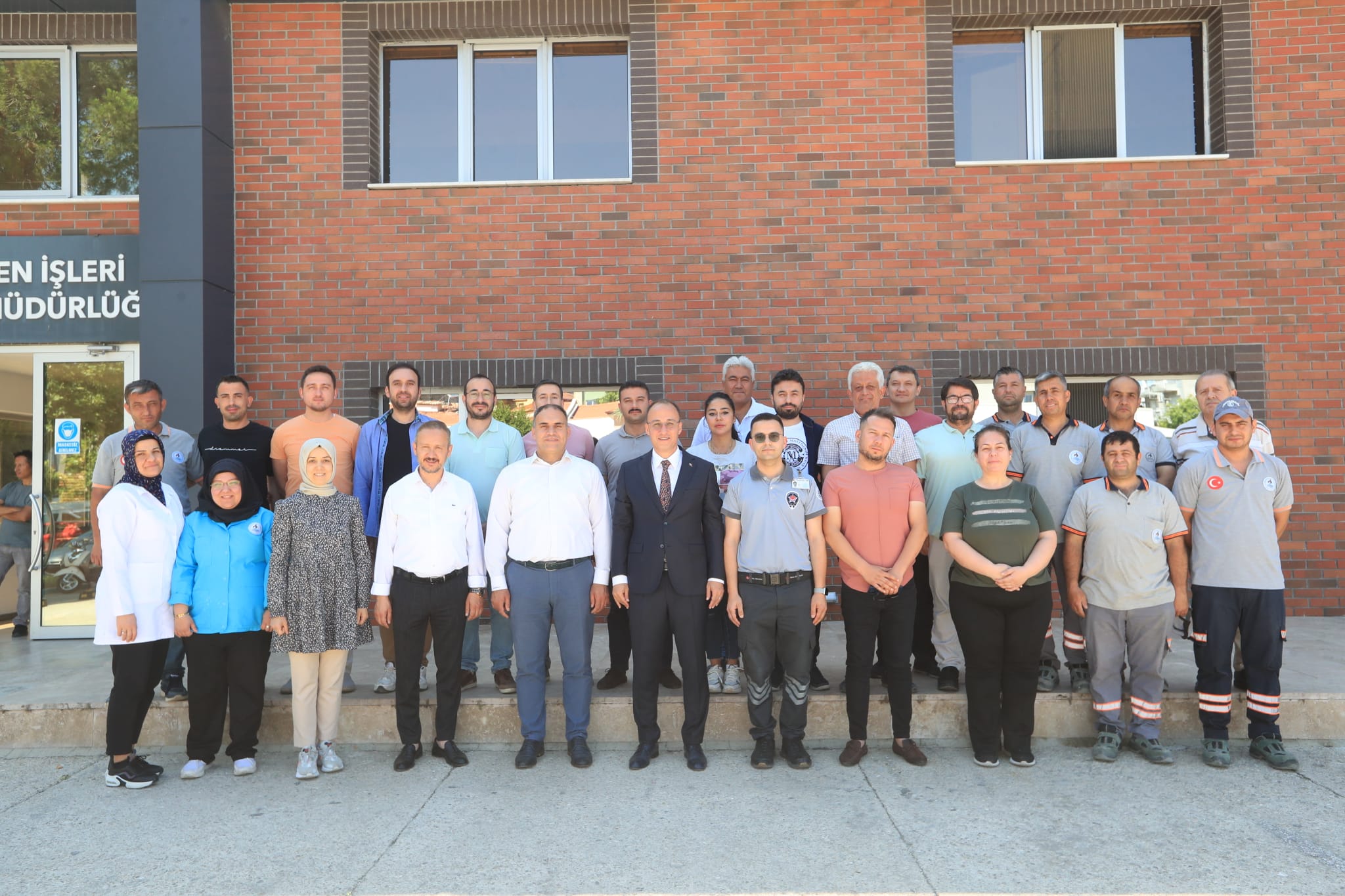 Pamukkale Belediye Başkanı Avni Örki Kurban Bayramı öncesinde belediye personelinin bayramını kutladı. Başkan Avni Örki, Kurban Bayramı öncesi son mesai gününde Pamukkale Belediyesinin YSE’deki ana hizmet binası ile birlikte Atatürk Caddesi, Deliktaş ve Kayıhan’daki ek hizmet binalarındaki personelleri ziyaret ederek, bayramlarını kutladı. Belediye müdürlüklerini tek tek gezen Pamukkale Belediye Başkanı Avni Örki, belediye personelinin özellikle deprem ve sel felaketinde gösterdiği özverili çalışmaları için teşekkür ederek, “Sizlerle birlikte ilçemize en iyi hizmeti sunarak, vatandaşlarımızın yüzlerinin gülmesine vesile oluyoruz. Özellikle, yılın ilk aylarında Kahramanmaraş merkezli yaşanan deprem felaketinde ve geçtiğimiz haftalarda ilçemizde meydana gelen sel felaketinde, tüm personelimizin ne kadar fedakârca çalıştığına şahit oldum. Deprem bölgesindeki vatandaşlarımız için nasıl canı gönülden gayret ettiyseniz, geçtiğimiz haftalarda ilçemizde yaşanan sel felaketinde de aynı özveriyi gösterdiniz. Mahallelerimizin temizliği için, sıcak soğuk demeden elinde süpürge ile çalışan, çöp kamyonu arkasında çöpleri toplayan, yazın sıcağında asfalt işi yapan, yollarımıza tek tek taşlar döşeyen, vatandaşlarımıza gülen yüzüyle karşılayıp yol gösteren, resmi yazışmalarımızı itinayla yapan, bizleri en iyi halimizle fotoğraflayan, belediyemizin etkinlik ve duyurularının haberlerini yapan, santralde sesimiz olan, yemekhanemizde yemeklerimizi yapan, güvenliğimizi sağlayan kısacası tüm çalışanlarımızdan ben razıyım. Her birimiz ilçemize hizmet etme gayretindeyiz. Sizlerin bu gayretine ailelerimizin de payı elbette çok büyük. Siz ve kıymetli ailelerinizin Kurban Bayramı’nı kutlar, birlikte daha nice sağlık ve huzur dolu bayramlara kavuşmayı temenni ederim” dedi. Başkan Örki, tüm personelleri ile günün anısına objektif karşısına da geçti.