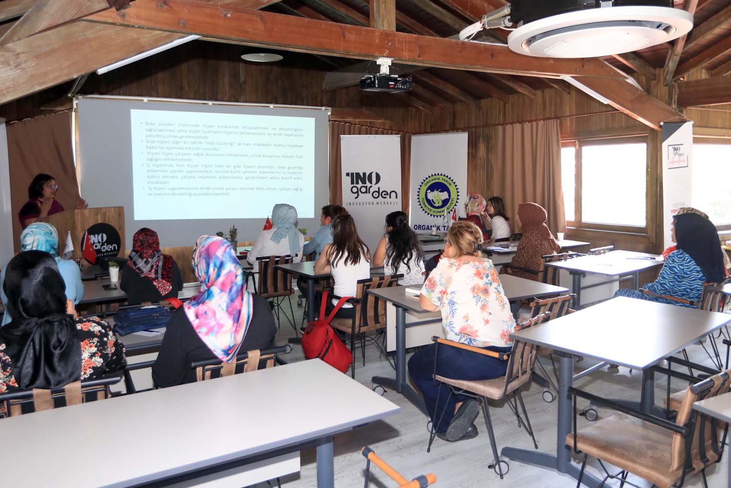 Pamukkale Belediyesi önderliğinde yürütülen ‘Pamuk Eller Üretiyor’ projesi kapsamında eğitimlere katılan kadınlar, projeden çok umutlu. Eğitimlere katılan kadın katılımcılar, öncelikle eğitimlerin ücretsiz olması ve eğitim alanında çocukları için kreş ve etüt alanının bulunmasından dolayı Pamukkale Belediyesi’ne teşekkür ettiler. Eğitimlere katılan kadınlardan Beyhan Akbaş, “Emekli olduktan sonra organik tarımla uğraşmak istiyorum. Küçük bir bahçem var orada zeytin üretimi yapıyorum. Hedefim zeytin üretiminde kendi markamla, kendi pazarımı oluşturmak. Bu amaçla bu projeye katıldım. Eğitimin daha başındayız. Buradaki en büyük avantaj bana göre kooperatifçilik anlayışı. Emekli olduktan sonra hayatın devam ettiğini, başarı öykülerinin bitmeyeceğini göstermek için katıldım. Desteklerinden dolayı Pamukkale Belediyesine ve ekibine teşekkür ederim” dedi. Gölemez’den katılan Emine Taban, çiftçilikle uğraştıklarını ve nar suyu ile nar ekşisi yaptıklarını söyledi. Taban, “Pamukkale Belediyesi’nin böyle güzel bir imkan sunduğunu öğrendim. Kooperatif kurulması amacıyla verilen bu eğitimlerde kendimizi geliştirmek için geldim. Proje çok güzel bir proje inşallah sonuçlarını da çok güzel göreceğiz. Geleneksel yöntemlerle kendimiz bir şeyler üretiyoruz. Çalışmalarımıza bilimsel olarak katkıda bulunması amacıyla bu projeye dahil oldum. Pamukkale Belediyesine bize böyle bir imkan sunduğu için teşekkür ediyorum” diye konuştu. İki kız çocuk annesi Saniye Tarakçı, eğitimlere kızlarıyla birlikte katıldığını belirterek, “Projedeki eğitimler tamamen ücretsiz olmakla birlikte burada kreş ve etüt odası da var. Küçük kızım ben eğitimdeyken kreşte, büyük kızımda etüt de ders çalışıyor. Buradaki eğitimlerde ürünleri nasıl işleyeceğimizi, makinalardan nasıl geçeceğini, nasıl yetiştirmemiz gerektiğini, nasıl tarım ilaçları kullanmamız gerektiğini hepsini bir bir öğretiyorlar. Pamukkale Belediye Başkanımız Avni Örki’ye, muhtarımız Özlem hanıma çok teşekkür ederim” dedi. Sabriye Avcı’da, eğitimler sayesinde daha bilinçli bir üretici olacağını ifade ederek, Pamukkale Belediyesi’ne teşekkür etti. Pamuk Eller Projesi kapsamında, E-Ticaret/ Pazarlama Yöntemleri, Sosyal Medya Okuryazarlığı, Kurumsal Kimlik Oluşturma, Düşünsel Dönüşüm Eğitim, Organik tarım, Ekolojik tarım, iyi tarım, Gastronomi ve mutfak sanatları, Gıda özelinde iş geliştirme, Yeni Nesil Ürün Geliştirme Becerileri, Hijyen ve sanitasyon, Biyosidal ürün, İş Sağlığı ve Güvenliği, Girişimcilik Markası Oluşturma, Yüksek Katma Değerli Ürün Reçetesi Oluşturma, Üretim Varyatlı Ürün Reçetesi Oluşturma, Gıda Girişimciliği ve Kooperatifçilik konularında eğitimler veriliyor. Program, Pınarkentte kurulan merkezde endüstriyel mutfak ve uygulama eğitimleri ile devam edilecek.