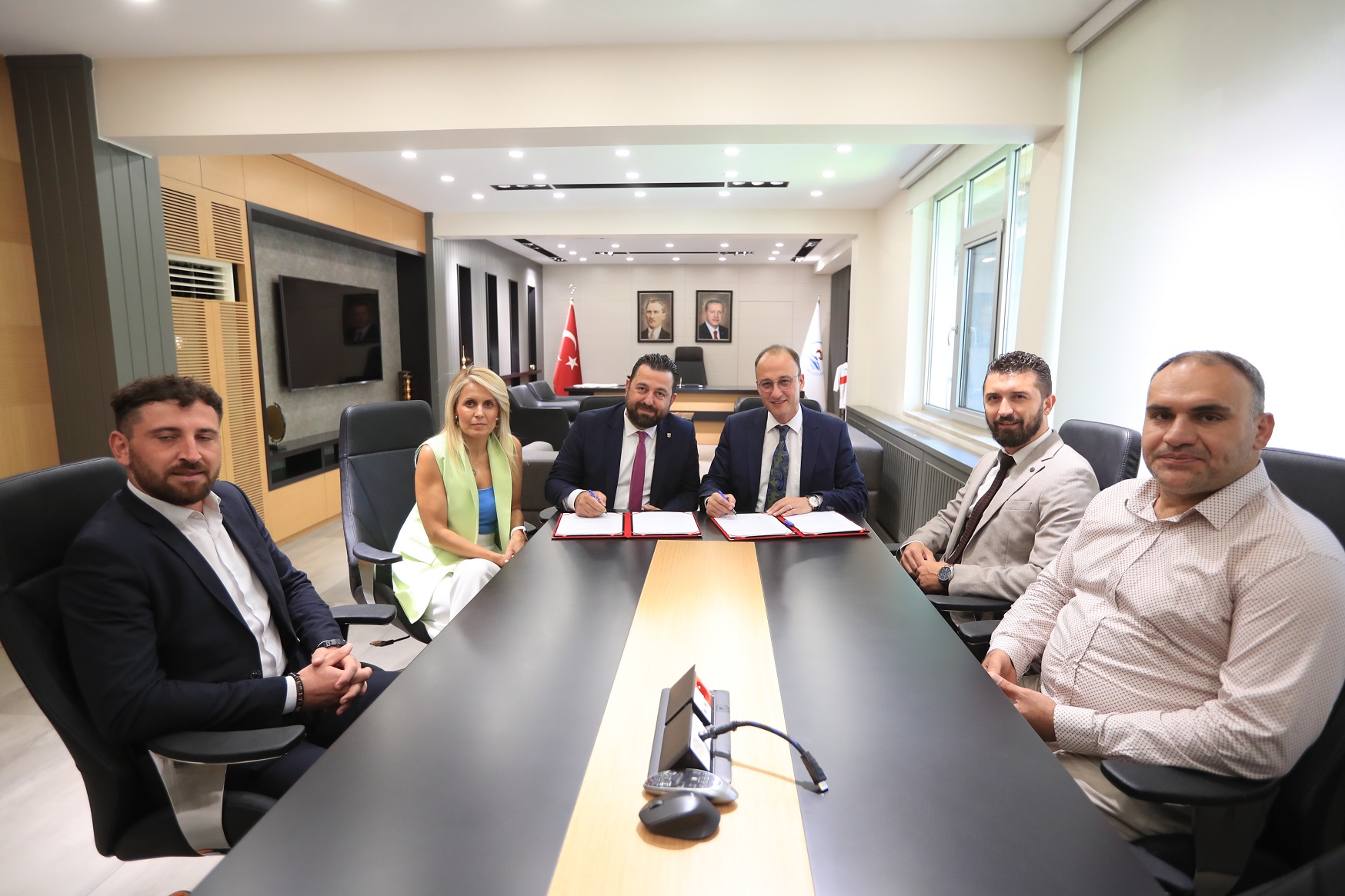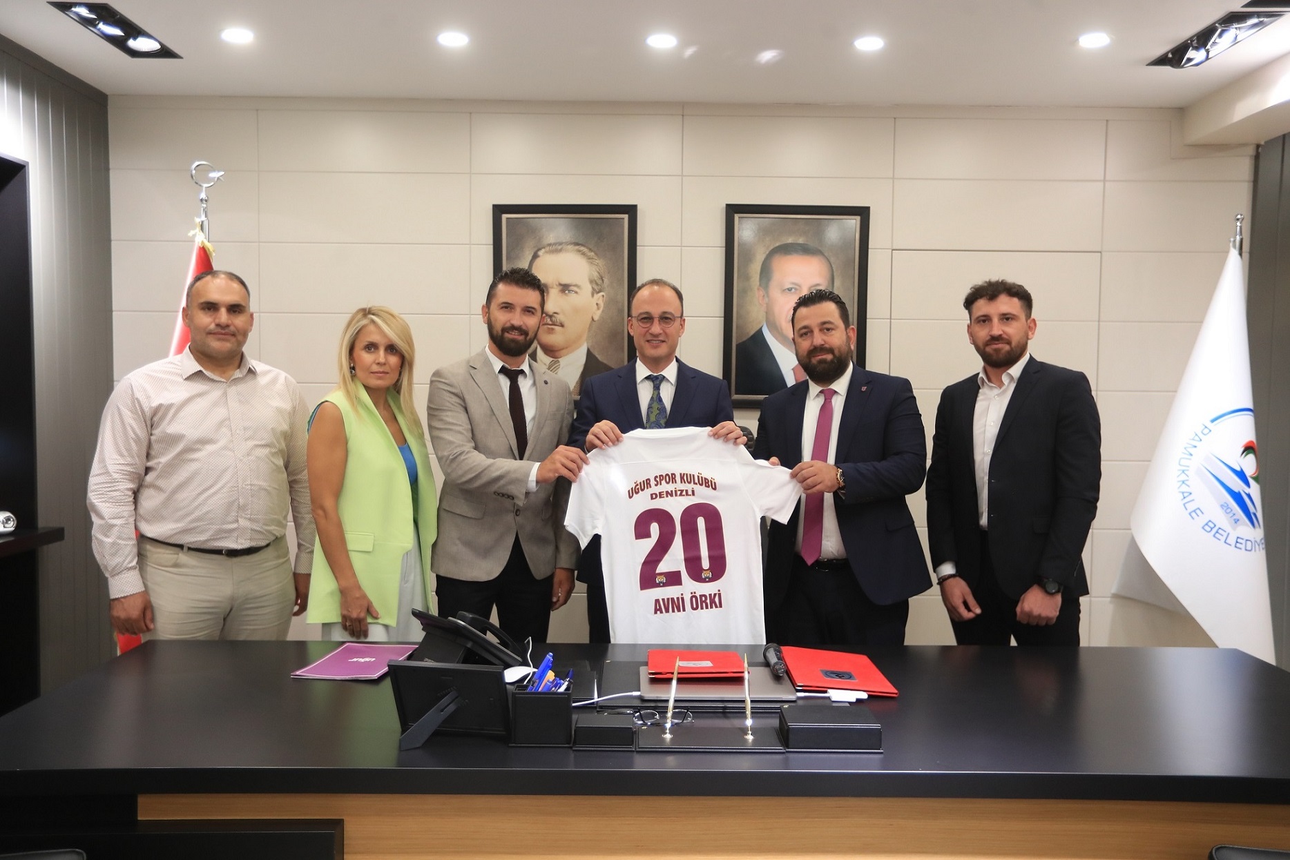 Pamukkale Belediye Başkanı Avni Örki, Denizli Uğur Okulları kurucularından Ersan Köse ve Yılmaz Demir ve spor koordinatörü Oğuz Günenç ile bir araya gelerek, spor alanında marka olan iki kurumun voleybol branşında birleşme kararını imza altına aldılar. Denizli Uğur Okulları ile önemli bir protokolünü imzaladıklarını söyleyen Pamukkale Belediye Başkanı ve Pamukkale Belediyespor Onursal Başkanı Avni Örki, “Spor denince akla gelen marka kurumlar içerisinde ve özellikle marka belediyeler içerisinde açık yüreklilikle şunu ifade etmek isterim ki, Pamukkale Belediyesi en ön sıralarda geliyor. Denizli Uğur Okulları da spor denince Türkiye’de ilk akla gelen kurumlar arasında bulunuyor. Bu iki güçlü kurum güçlerini birleştiriyor. Bizler bundan yıllar öncesinde başlattığımız o hummalı spor çalışmaları çerçevesinde birçok branşta Pamukkale Belediyespor Kulübü olarak başarılar elde ettik ve burada vatandaşımızın göğsünü kabarttık. Sadece Denizli’de bölgede, ülçe çapında değil uluslararası alanda da birçok başarıya imza attık. Bayrağımızın da göndere çekilmesine vesile olduk. Pamukkale Belediyespor Kulübü bünyesi içinde kurulmuş olan Kadınlar Voleybol Takımımız da gerçekten çok büyük başarılara imza attılar. Geçtiğimiz sezon birinci ligin kıyısından dönmek zorunda kaldık. Çünkü 3 adet sakatlığımız tam bir saat içinde gerçekleşti. O güzel hedefe ulaşamadık. Bu esnada yine kol kola yürüdüğümüz aynı coğrafyanın insanlarıyla birlikte sporu yaptığımız Uğur Okulları’nın da o güzel voleybol takımının başarılarında hep ilgiyle mutlulukla takip ediyorduk. Dedik ki, bu sezonda artık Uğur Okullarıyla Pamukkale Belediyesi kadrolarını birleştirsin, güçlerini birleştirsin. Daha güçlü bir şekilde Denizli’mizin adını Türkiye’nin dört bir tarafında duyuralım istedik. Denizli Uğur Okulları’na ben çok çok teşekkür ediyorum. Onlarla birlikte artık voleybol konusunda Türkiye’de çok daha güçlü adımları atmış olacağız. Onlarda Pamukkale Belediyesi ile birlikte o adımları daha güçlü atmış olacaklar. Bugün çok güzel bir protokole imza attık. Güçlerimizi birleştiriyoruz. İlk hedefimiz birinci ligde kalıcı olmak ve hemen akabinde de inşallah sultanlar ligine de geçişimizi sağlamış olacağız. Hayırlı uğurlu olsun diyorum” diye konuştu. Denizli Uğur Okulları kurucularından Ersan Köse’de, “Bizlerde çok heyecanlıyız. Pamukkale Belediyemizin gücünü arkamızda hissetmek çok değerli bir şey. Güçlerimizi Kadın Voleybol takımımızla birleştirdik. İnanıyorum ki bu yıl birinci lige ulaşacağız. Hayallerimiz birlikte gerçekleştireceğiz. Denizli’nin hayalini gerçekleştireceğiz. Ulusal ve Uluslararası platformda adımızdan başarıyla bahsettireceğiz. Biz Başkanımıza bu güç birliğinden dolayı teşekkür ediyoruz” dedi. Konuşmaların ardından Pamukkale Belediye Başkanı Avni Örki, Denizli Uğur Okulları kurucularından Ersan Köse ve Yılmaz Demir tarafından güç birliğinin resmi protokolüne imza atıldı.