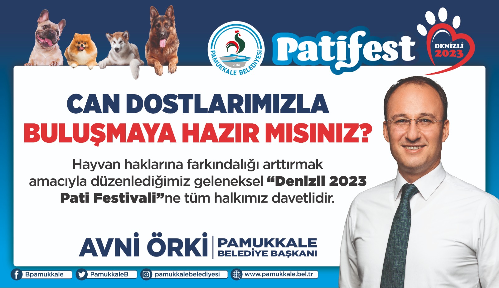 Hayvan hakları konusunda farkındalık oluşturmak amacıyla çıkılan yolda 4. Seneye ulaşıldığını ifade eden Pamukkale Belediye Başkanı Avni Örki, “Pamukkale Belediyesi olarak sokaklardaki can dostlarımıza destek sağlamak amacıyla Patifest’in 4.’sünü düzenliyoruz. Can dostlarımızla güzel bir gün geçirmek, onların haklarına yönelik önemli bir farkındalık oluşturmaya destek vermek isteyen tüm hayvan dostlarımızı ‘Pamukkale Belediyesi Patifest 2023’ çeşitli etkinlikler ve konserlerle renklenecek. Festivalimizle ilgili tüm hazırlıklarımızı tamamladık ve ücretsiz olan festivalimize tüm halkımızı bekliyoruz” dedi.
