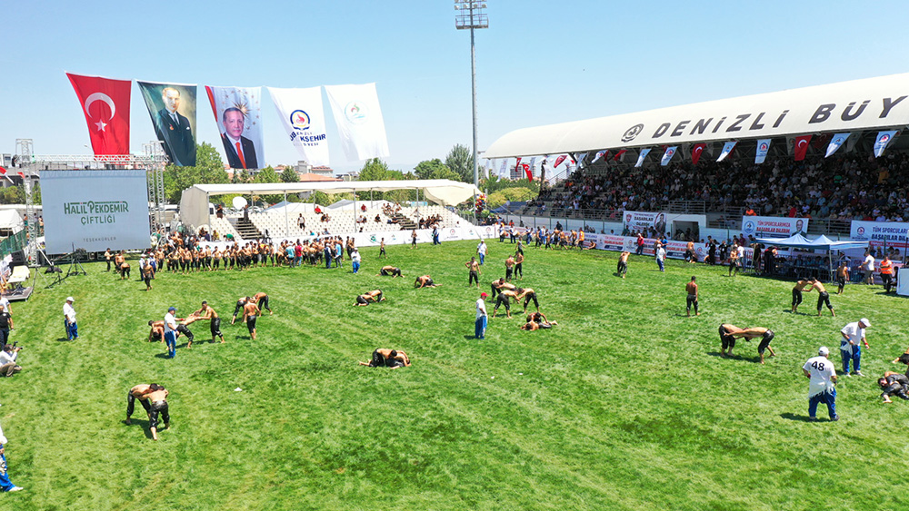 Denizli Büyükşehir Belediyesi, Pamukkale Belediyesi işbirliğiyle düzenlenen ve ata sporunun en ünlü güreşçilerinin ağırlanacağı “Denizli Yağlı Güreşleri” heyecanına sayılı günler kaldı. Geçtiğimiz yıl büyük yankı uyandıran ve güreş camiası tarafından büyük beğeni toplayan “Denizli Yağlı Güreşleri” bu yıl, 24 Eylül 2023 Pazar günü Albayrak Geleneksel Spor Oyunları Kompleksi'nde ücretsiz olarak düzenlenecek. Ata sporunun en ünlü isimlerinin güreşeceği organizasyon, saat 10.00’da başlayarak, gün boyu devam edecek. Heyecanın had safhada olacağı “Denizli Yağlı Güreşleri”nde, 662. Kırkpınar Yağlı Pehlivan Güreşleri’nde altın kemer kazanan başpehlivan Yusuf Can Zeybek, Ali Gürbüz, İsmail Balaban, Recep Kara, Fatih Atlı, Mehmet Yeşil Yeşil, Osman Aynur ve Mustafa Taş gibi altın kemerli başpehlivanlar başta olmak üzere 500 pehlivan Denizli Er Meydanı’nda kıyasıya mücadele edecekler.