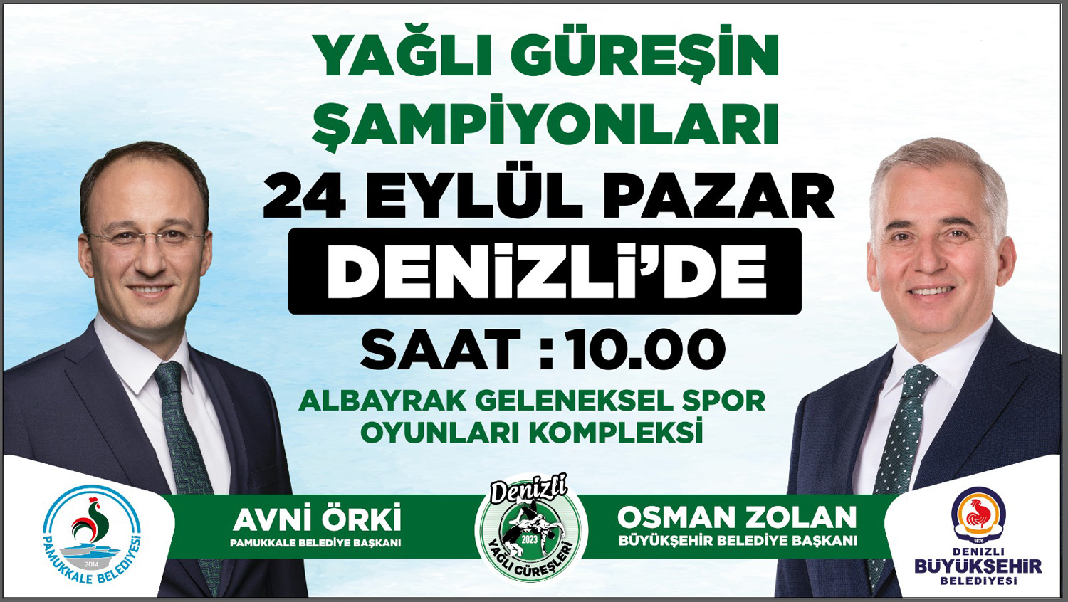 Denizlili yağlı güreş severlerin büyük merakla beklediği Denizli Yağlı Güreşleri, 24 Eylül 2023 Pazar günü Albayrak Geleneksel Spor Oyunları Kompleksi'nde gerçekleşecek. Denizli Büyükşehir Belediyesi ve Pamukkale Belediyesi işbirliği ile gerçekleşecek olan “Denizli Yağlı Güreşleri”ne Başkan Osman Zolan ve Başkan Avni Örki, tüm güreş severleri davet etti.