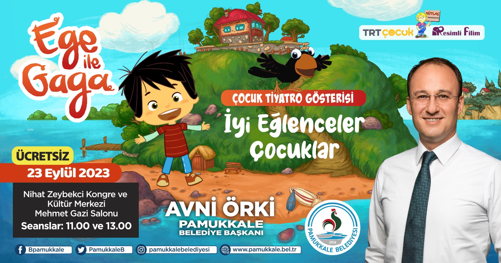 Pamukkale Belediyesi TRT Çocuk lisanslı Ege ile Gaga adlı tiyatro gösterisini ücretsiz olarak miniklerle buluşturuyor. Pamukkale Belediye Başkanı Avni Örki, “Çocuklarımızın en sevdiği çizgi film kahramanlarından Ege ile Gaga’yı Pamukkale’mizde ağırlayacağız. Ücretsiz etkinliğimize tüm miniklerimizi bekliyoruz” dedi.