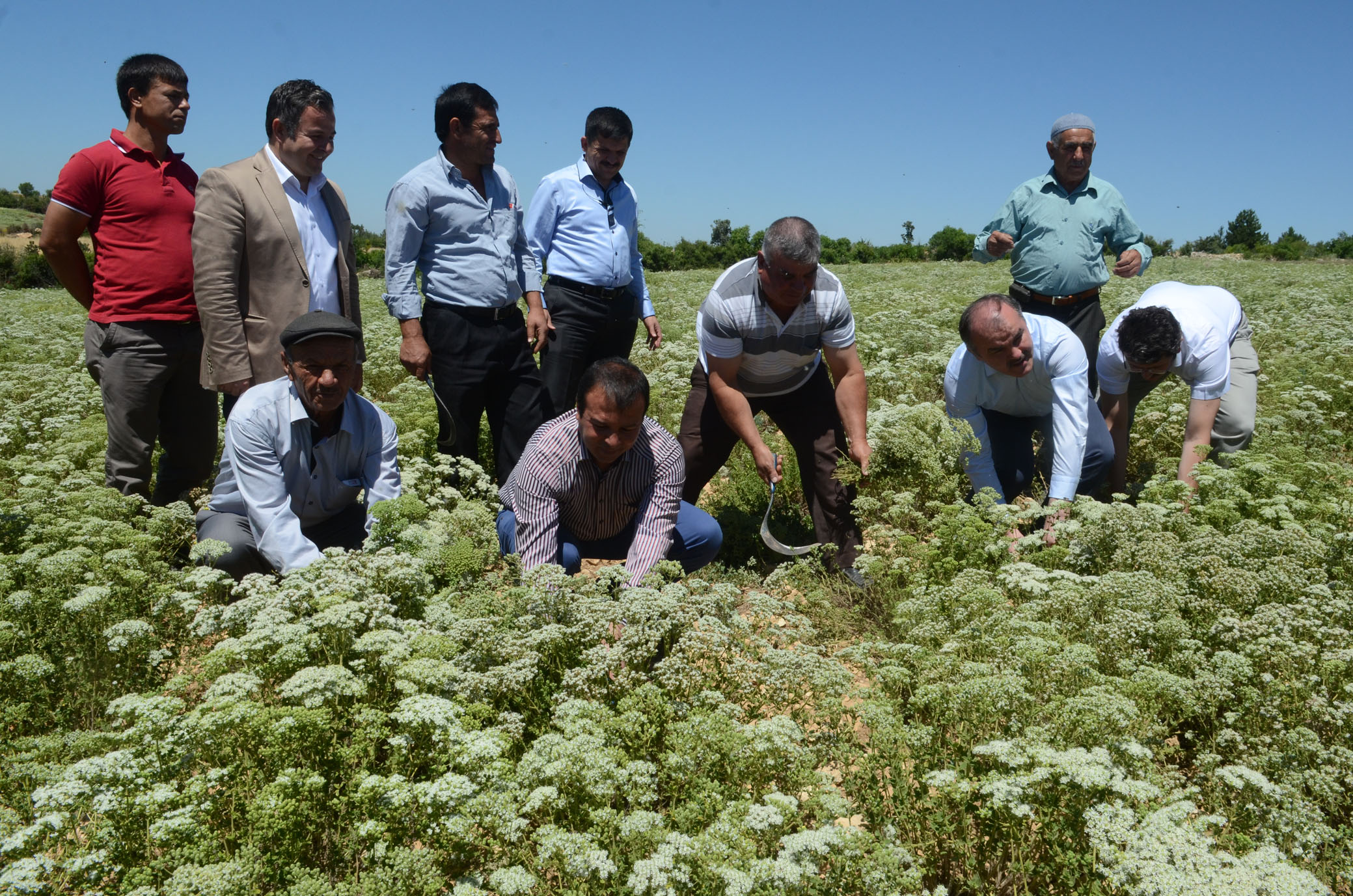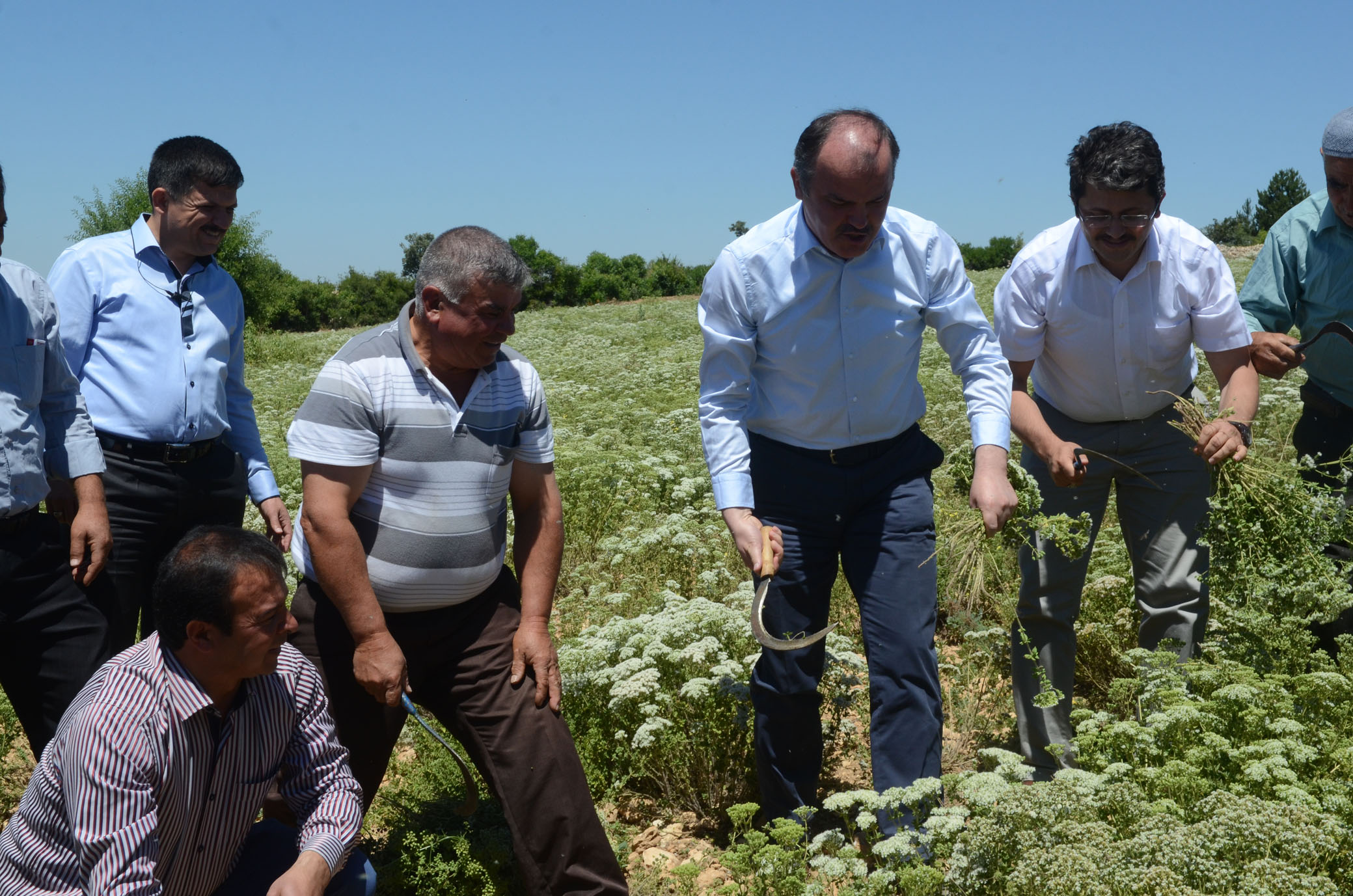 Baskan Gürlesin ve beraberindekiler, Gözler'de ilk olarak çiftçilerle sohbet etti. Baskan Hüseyin Gürlesin, buradaki köylülerle tek tek tokalasti. Çocuklarin her biriyle ayri ayri ilgilenen Baskan Gürlesin, yaslilarin da elini öpüp hatirlarini sordu. Ardindan dünyanin ihtiyacini karsilayacak kekiginin hasadina baslandi. Baskan Gürlesin ve beraberindekiler ellerine orak alip tarlada kekik hasadi yapti. Ardindan adaçayi ve lavanta bahçeleri gezildi.