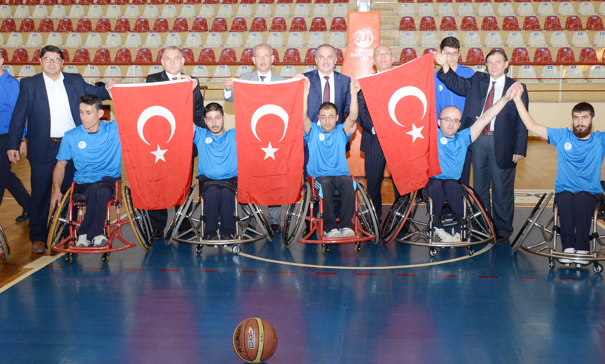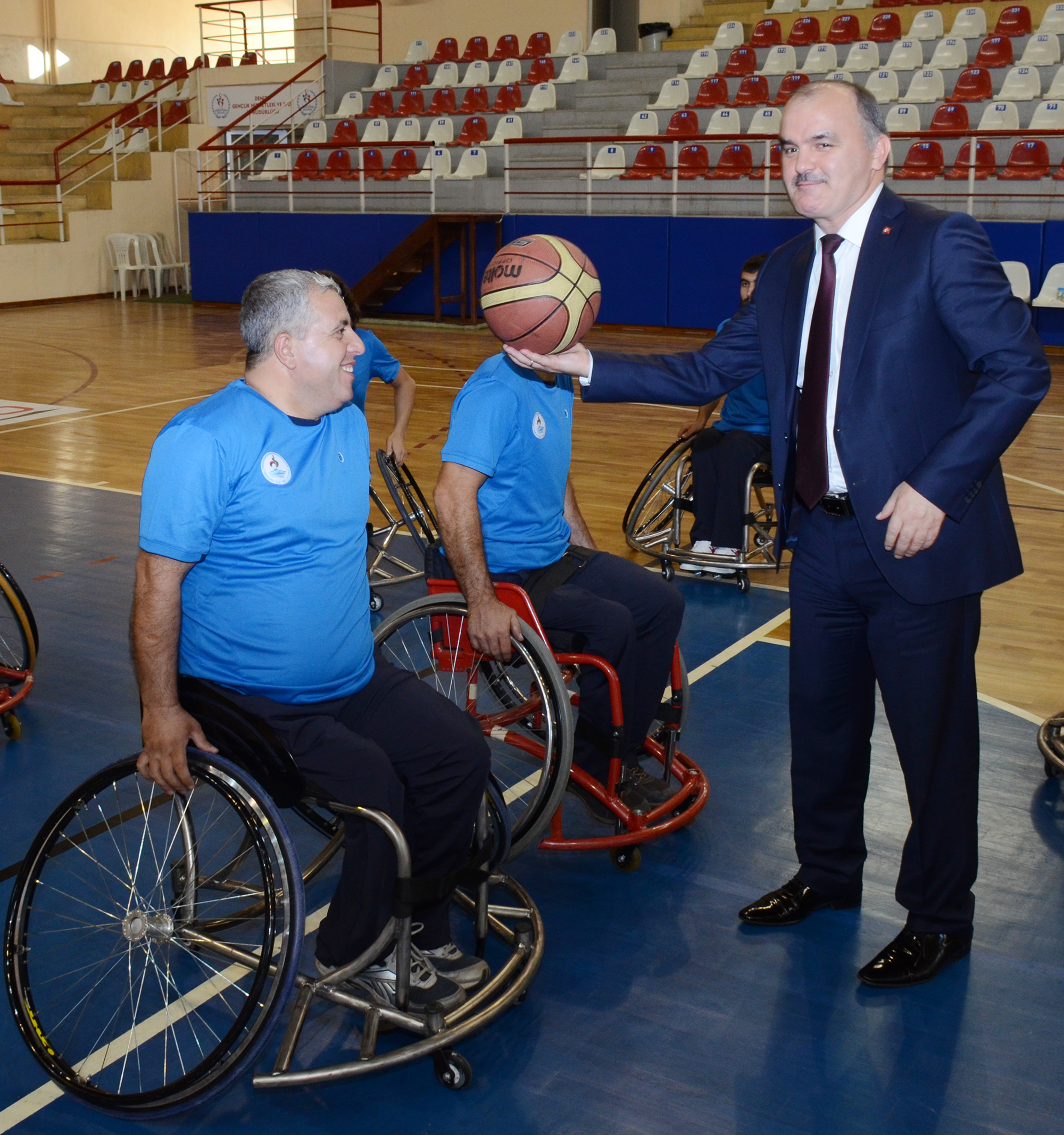 Toplantıdan önce sporcularla tanışan Pamukkale Belediye Başkanı Hüseyin Gürlesin, oyunculara başarılar diledi. “320 bini aşan nüfusa hizmet eden bir belediye olarak önemli çalışmalardan biri de spor kulübü kurmak oldu” diyen Gürlesin, “Pamukkale Belediye Spor Kulübü bu iki unsuru bir araya getirdi. Kulübümüzün ilk faal branşı olarak engelli sporcularımızın yer aldığı tekerlekli sandalye basketbol takımını oluşturduk. Tekerlekli sandalye basketbolu engelli sporları içerisindeki lokomotif branştır. Denizli’de bu branş 2009 yılından itibaren faal duruma geldi. Takımız 2015-2016 Tekerlekli Sandalye Basketbol Bölgesel Ligi A grubunda şehrimizi, ilçemizi temsil edecek. Takımızın haftada 2 gün içinde bulunduğumuz Hasan Güngör Spor Salonu’nda antrenörümüz Erol Kayhan nezaretinde çalışmalarına devam ediyor. Müsabakalarda yine bu salonda oynanacak. Biz Pamukkale Belediyesi olarak takımımızın sporcularına her türlü desteğimizi vermeye devam ediyoruz. Biz takımımıza güveniyoruz. İlk yılımız olduğu için tabiki şampiyonluk isteriz ancak gerçekçi hedef olarak ilk 3’te yer almalıyız. Ben bu hedefe ulaşacağımıza inanıyorum” dedi. Basın toplantısının ardından tekerlekli sandalye takımı oyuncuları gösteri maçı yaparken, müsabaka sonunda Gürlesin, basketbol topuyla atış yaptı.