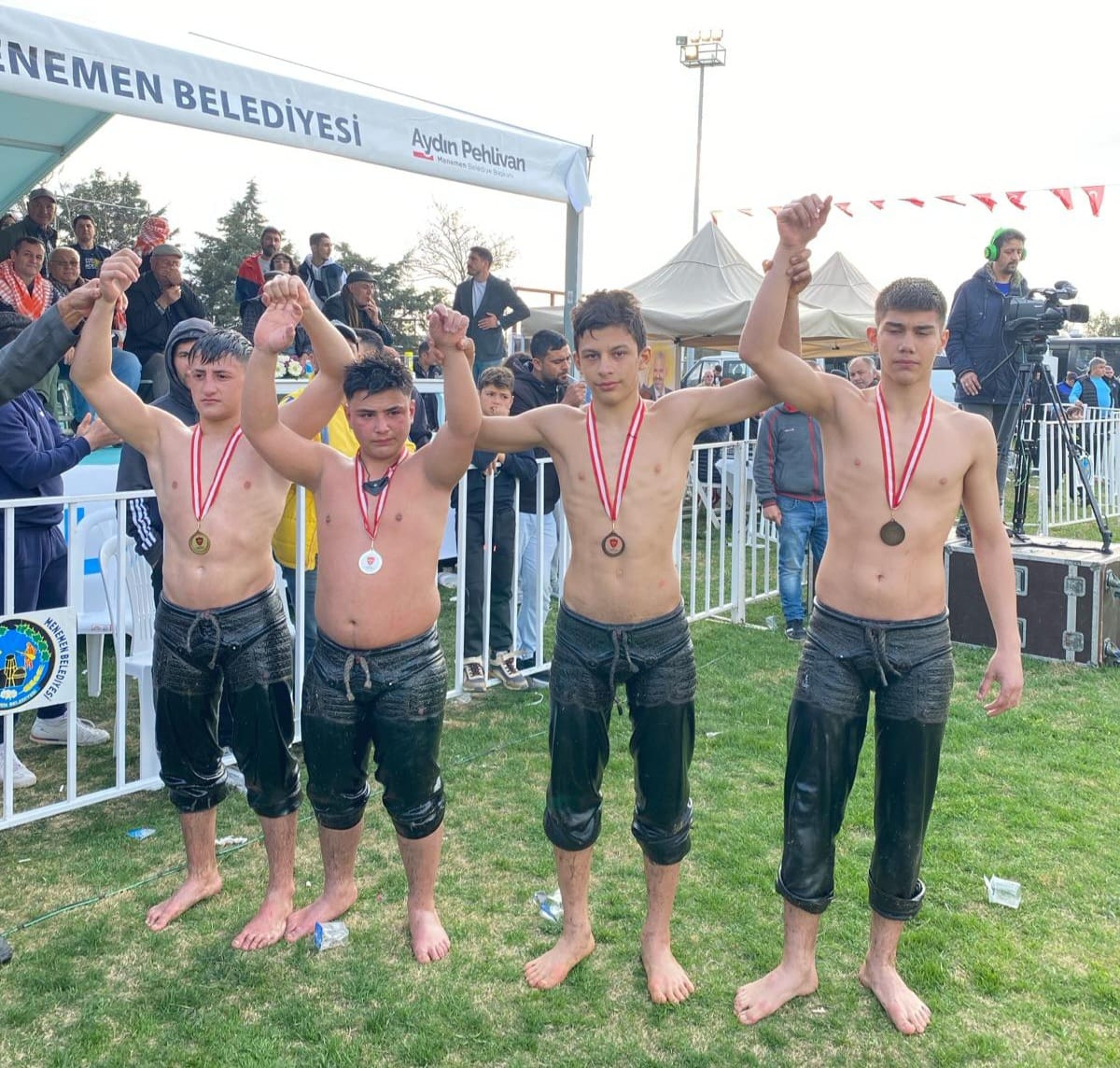 Denizli’yi er meydanlarında başarıyla temsil eden Pamukkale Belediyesporlu pehlivanlar geçen seoznki başarılarına yenilerine eklemeye devam ediyor. 2024 yılının ilk yağlı pehlivan güreşleri 3 Mart tarihinde İzmir’in Menemen ilçesinde 350 pehlivanın katılımıyla gerçekleşen 38. Ulukent Yağlı Güreşleri oldu. Pamukkale Belediyesporlu sporcular bu güreşlerde 3 altın, 2 gümüş ve 6 bronz madalya olmak üzere toplam 11 madalya kazandı. Mavi-beyazlı ekibin altın madalyalarını Teşvik 1 boyunda mücadele eden Teoman Güngör, Minik 2 boyunda Daniel Erfani ve Küçük orta küçük boyunda güreşen Yılmaz Bakan kazandı. Hakan Yiğit Bulut, Minik 1 boyunda ikinci olurken, Yahya Sönmez de Minik 2 boyunda gümüş madalyanın sahibi oldu. Ali Bakan, Cumhur Abay, Hüseyin Umut Alver, Eray Özcan, Ercan Bakan ve Eren Piren’de kendi boylarında üçüncü olarak bronz madalya ile sezonun ilk turnuvasını tamamladı. Pamukkale Belediyesporlu pehlivanlar yıl boyu gerçekleşecek olan güreşlerde başarılı sonuçlar almak için çalışmalarına devam ediyor.