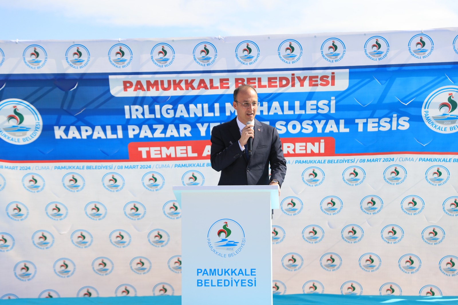 Pamukkale Belediye Başkanı Avni Örki ise mübarek Ramazan ayından birkaç gün önce 10 mahalleyi kapsayan kapalı pazar yeri ve sosyal tesis temel atma töreninde bir arada olmanın mutluluğunu yaşadıklarını ifade ederek, “Irlıganlı’nın yeri bizim gönlümüzde hep farklıdır. Burası ile ilgili hayallerimiz vardı. Ama şartlar bu hayalleri ertelenmesine neden oldu. Ama çok şükür ki aynı anda 10 mahallede yapılacak olan pazar yeri ve sosyal tesisin temelini atmak nasip oldu. Irlıganlı, Pamukkale, Kocadere, Develi, Goncalı, Eldenizli, Haytabey, Akdere, Eymir, Karataş pazaryerlerinin temelini atıyoruz. Bu 10 adet kapalı pazaryerinin maliyeti 75 milyon TL. Bu projeyi hayata geçirmeden önce AK Parti Pamukkale Belediye Başkan Adayımız Halil Pekdemir ağabeyimle görüştük. ‘Bu işin finansmanını ayarladık. İhalesini de yapıyoruz, eğer sen tamam diyorsan düğmeye basalım’ dedik. Hatta güzel bir slogan da bulduk, ‘Temeli bizden gerisi Halil Pekdemir’den’. Biz öyle kafamıza göre hareket etmedik. AK Parti’de hizmetlerde devamlılık esastır. Cumhur İtifakı’mız da halkı kandırmak olmaz. Seçim odaklı bir hareket yapmış olsaydık, bu temel atmayı seçim sonrasına bırakırdık. Vatandaşımız zarar görmesin diye biz bu kararı verdik. Rabbim inşallah hayırlara tamamlanmasını nasip etsin. Bu vesile ile 8 Mart Dünya Kadınlar Günü’nü de bir kez daha kutluyorum” diye konuştu.
