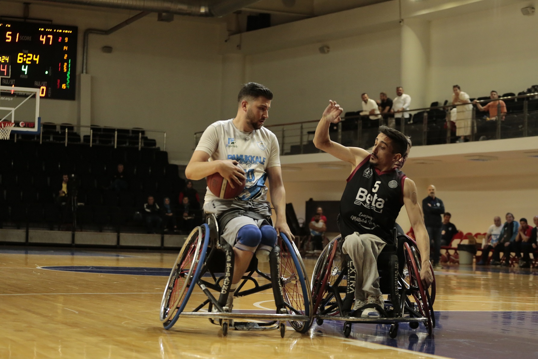 Tekerlekli Sandalye Basketbol 1. Lig Play-off Grubu’nda yer alan Pamukkale Belediyespor Tekerlekli Sandalye Basketbol takımı sezonu şampiyon apoletiyle tamamladı. Ankara Spor Salonu’nda oynanan final maçında Pamukkale Belediyespor ile Beta Enerji Adana takımları mücadele etti. Büyük çekişmeye sahne olan maçın ilk periyodunu Pamukkale Belediyespor 21-8 önde tamamladı. İyi oyununu skora da yansıtan mavi-beyazlı takım ilk devreyi 35-27’lik skorla geçti. 3. Periyodda da başarısını sürdüren Pamukkale Belediyespor bu bölümü de 49-42 önde tamamlarken, son periyodda farkı açmayı bildi. Rakibi karşısında üstünlüğünü maç sonuna kadar devam ettiren Pamukkale Belediyespor mücadeleyi 60-51 kazanarak şampiyonluk kupasına ulaştı. Müsabaka sonunda büyük sevinç yaşayan mavi-beyazlı ekibin sporcularını Pamukkale Belediye Başkan Yardımcısı Uğur Çizmecioğlu ile Pamukkale Belediyespor Kulüp Başkanı Ayhan Soyfidan da yalnız bırakmadı. Müsabaka sonunda Pamukkale Belediyespor’un şampiyonluğu düzenlenen kupa ve madalya töreni ile taçlandırıldı. Mavi-beyazlı kulüp 2024-2025 sezonunda Tekerlekli Sandalye Basketbol Süper Lig’inde Denizli’yi temsil edecek.