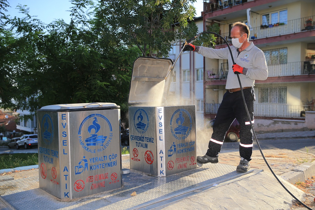 Pamukkale Belediyesi halkın huzuru ve mutluluğu için her konuda çalışmalarına devam ediyor. 61 mahallenin tamamında düzenli olarak uçkunla mücadele için ilaçlama yapılıyor. Özellikle sivrisineklere yönelik olarak yapılan mücadele kapsamında mahalleler haftada en az 2 kez sokak sokak ilaçlanıyor. Bu uygulama özellikle sivrisineğe yönelik başarı elde edilmesini sağlıyor. Sadece sivrisinek değil karasinekle de mücadele için Pamukkale Belediyesi Sağlık İşleri Müdürlüğü ekipleri harekete geçti. Kurban Bayramı sonrası yoğunlaşan karasinek için özel ekipler sabahın erken saatlerinde sokak sokak ilaçlama yapıyor. Bu kapsamda özellikle karasineklerin haraketli olduğu sabah 06.00 ile 08.00 saatleri arasında ekipler insan sağlığına zarar vermeyen ilaçları uyguluyor. 2 haftada sonuç vermesi planlanan çalışmalar kapsamında mahalleler haftada 2 kez ilaçlanıyor. Ayrıca şehir içinde yer alan yeraltı ve diğer tüm çöp konteynerleri düzenli olarak ilaçlanarak sinek oluşumunun önüne geçiriliyor.