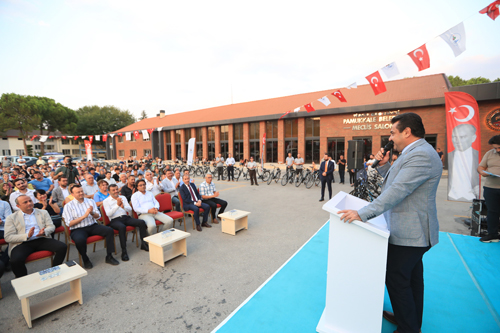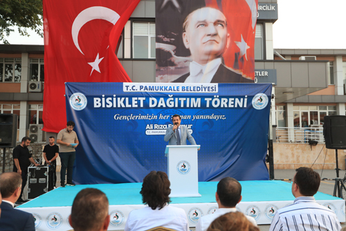 Törende açılış konuşmasını yapan Pamukkale Belediye Başkanı Ali Rıza Ertemur, “Göreve geldikten sonra 4 aylık bir süreyi geride bıraktık. Bu süre içerisinde sözünü verdiğimiz konuları hayata geçirdik. Çünkü sizin istekleriniz bizim için bir emirdir. İlk olarak halkımızın en çok istediği çöp poşeti dağıtımına başladık. Halk Ekmek projemizde de sona geldik. Tüm çalışmalarımızın planlamasını yaptık. Sırayla hepsini hayata geçireceğiz” dedi. “Tesislerimizi dolaşırken, atıl halde birçok malzeme bulduk” diyen Başkan Ertemur, “Karahayıt’taki hizmet binamızda 100’e yakın bisiklet gördük. 7 yıl önce bir etkinlikte kullanılmış, kenara atılmış. Bu şekilde olmasına gönlümüz razı olmadı. Hemen bisikletleri bakımdan geçirip, gerçek sahiplerine ulaştırmak istedik. Bölgemizde lise talebesi kardeşlerimize, gençlerimize başarı kıstası koyarak, teşvik olması amacıyla bu bisikletlerimizi siz Pamukkale halkına hediye etmek istedik. Üniversite çevresinde bulunan PAKBİS (Pamukkale Akıllı Bisiklet Sistem) de çökmüştü. O’nu da kısa sürede tamir edip aktif hale getirdik. Sevgili gençler ülkemizin geleceği sizlerin ellerinde. Mustafa Kemal Atatürk, bu Cumhuriyeti kurduktan sonra dedi ki ‘Bu Cumhuriyet siz gençlerin olacak’. Sizin Cumhuriyeti koruyup kollayacağınıza yürekten inanıyorum. O’nun devrim ve ilkelerini, Cumhuriyet’in temel değerlerini koruyacak olan sizlersiniz. Sizlere çok güveniyoruz. O nedenle sizlere yapılan bütün yatırımların boşa çıkmayacağını yürekten inanıyorum. Hepinize bundan sonraki hayatınızda başarılar diliyorum. Tüm anne ve babalarımızı saygı ve sevgiyle selamlıyorum” dedi.