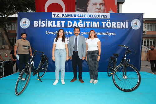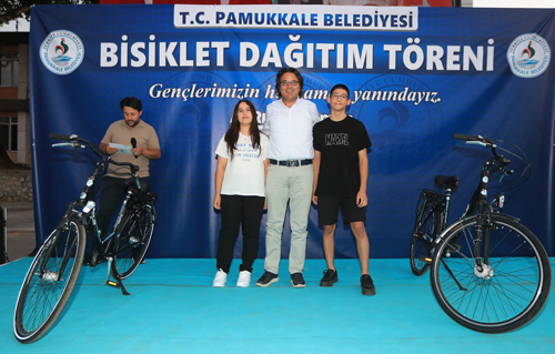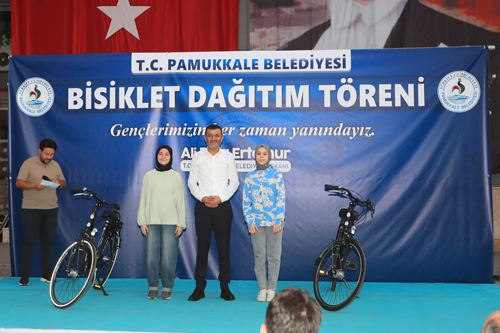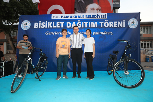 T.C. Pamukkale Belediye Başkanı Ali Rıza Ertemur, 7 yıldır belediyenin deposunda atıl halde bulunan bisikletleri gerçek sahiplerine hediye etti. Başkan Ertemur, “Halkımızın kaynaklarıyla alınan bisikletleri gerçek sahiplerine vermenin huzurunu yaşıyoruz” dedi.