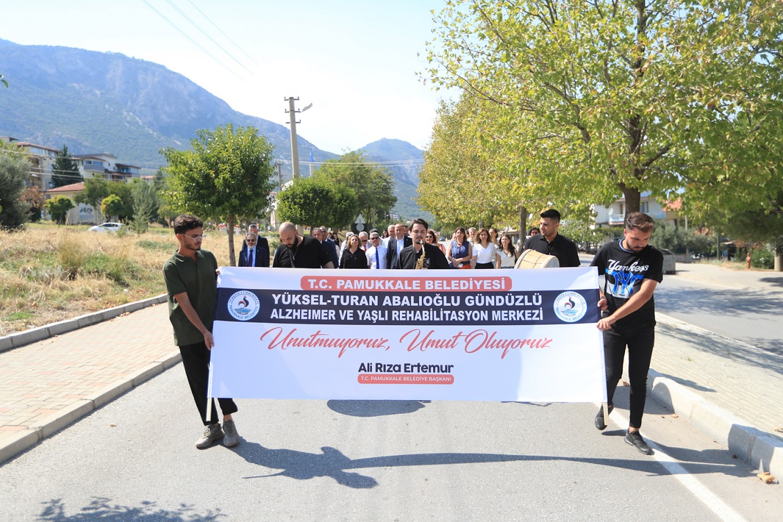 21 Eylül Dünya Alzheimer Günü dolayısıyla, Pamukkale Belediyesi’nce farkındalık programı düzenlendi. Pamukkale Belediyesi Yüksel-Turan Abalıoğlu Gündüzlü Alzheimer ve Yaşlı Rehabilitasyon Merkezi’nde düzenlenen etkinliğe, T.C. Pamukkale Belediye Başkan Vekili Av. Uğur Çizmecioğlu, Pamukkale Halk Eğitim Müdürü Cengiz Sarıca, CHP Pamukkale İlçe Başkanı Uğur Coşkun, Türkiye Alzheimer Derneği Denizli Şubesi Başkanı Hatice Hülya Eryılmaz, hayırsever Abalıoğlu ailesi adına Mahir Abalıoğlu, belediye meclis üyeleri, mahalle muhtarları ile Alzheimer hastaları ve aileleri katıldı. Etkinlik, protokol üyeleri ve vatandaşların katılımıyla, Yaşar Saniye Gemici Anadolu Lisesi önünden Alzheimer Merkezi’ne kadar devam eden kortej yürüyüşü ile başladı. Sergi, seminer ve müzik dinletileri ile katılımcılara keyifli anlar yaşatılırken, Alzheimer hastalığında erken teşhisin ve beslenmenin önemine dikkat çekildi.