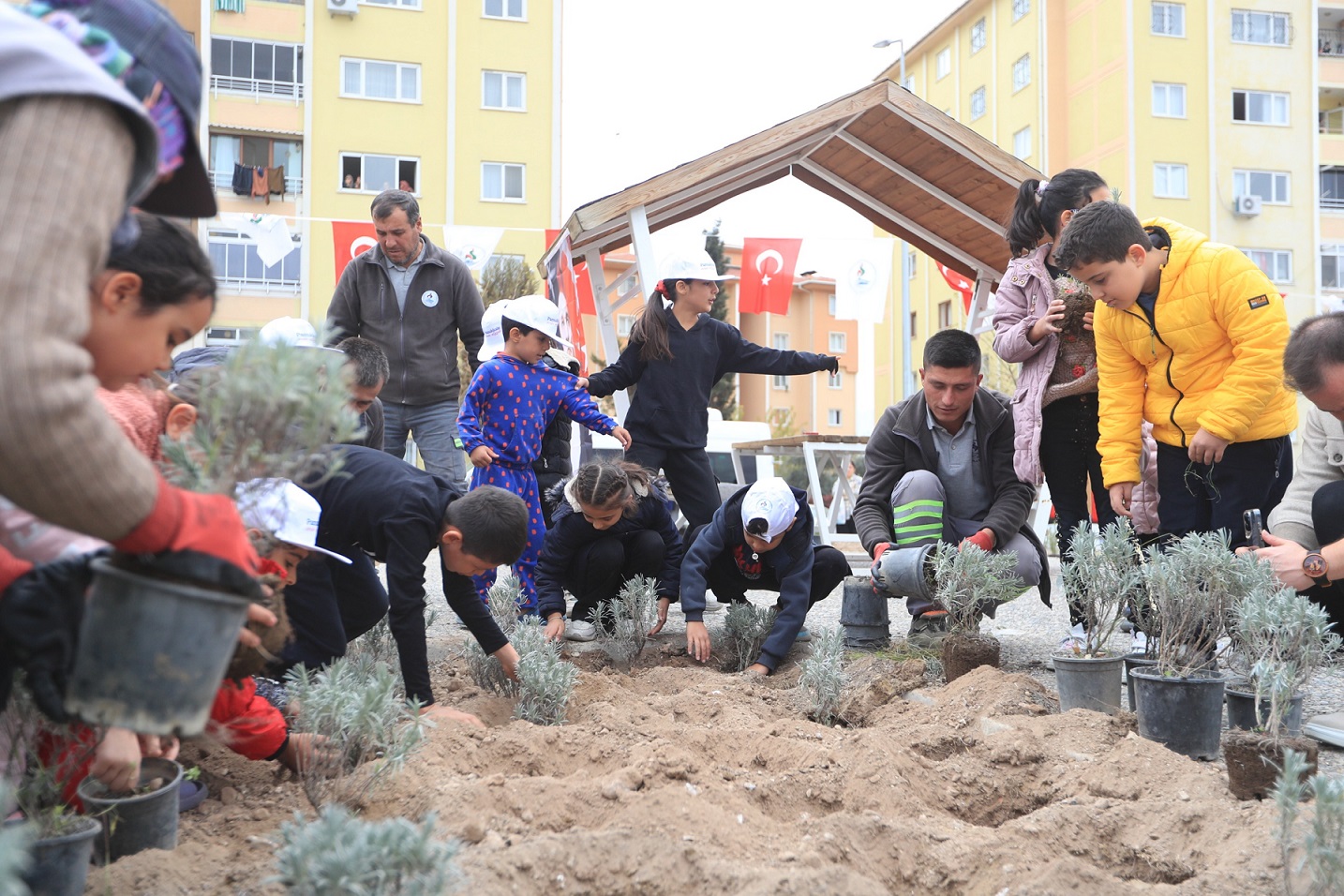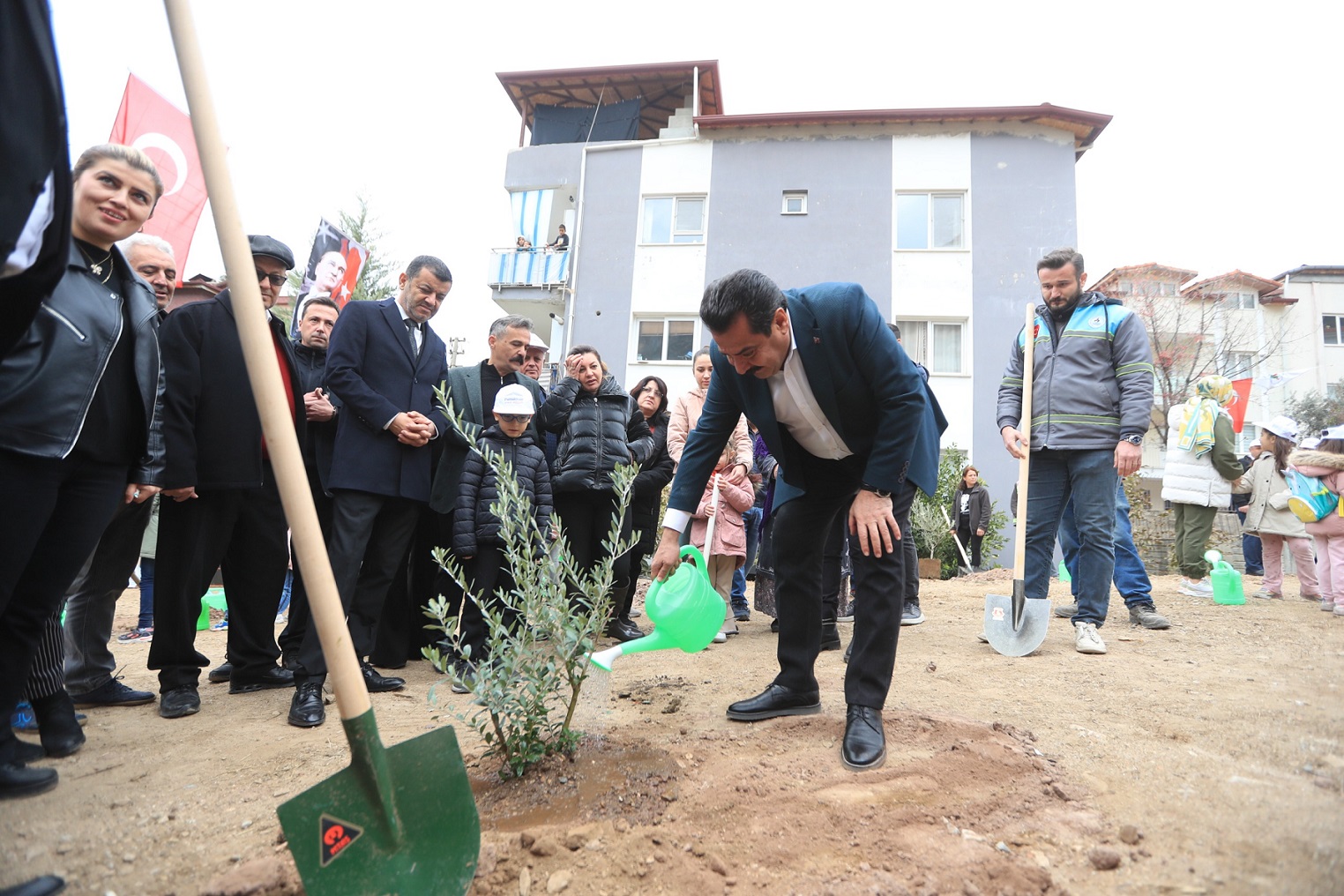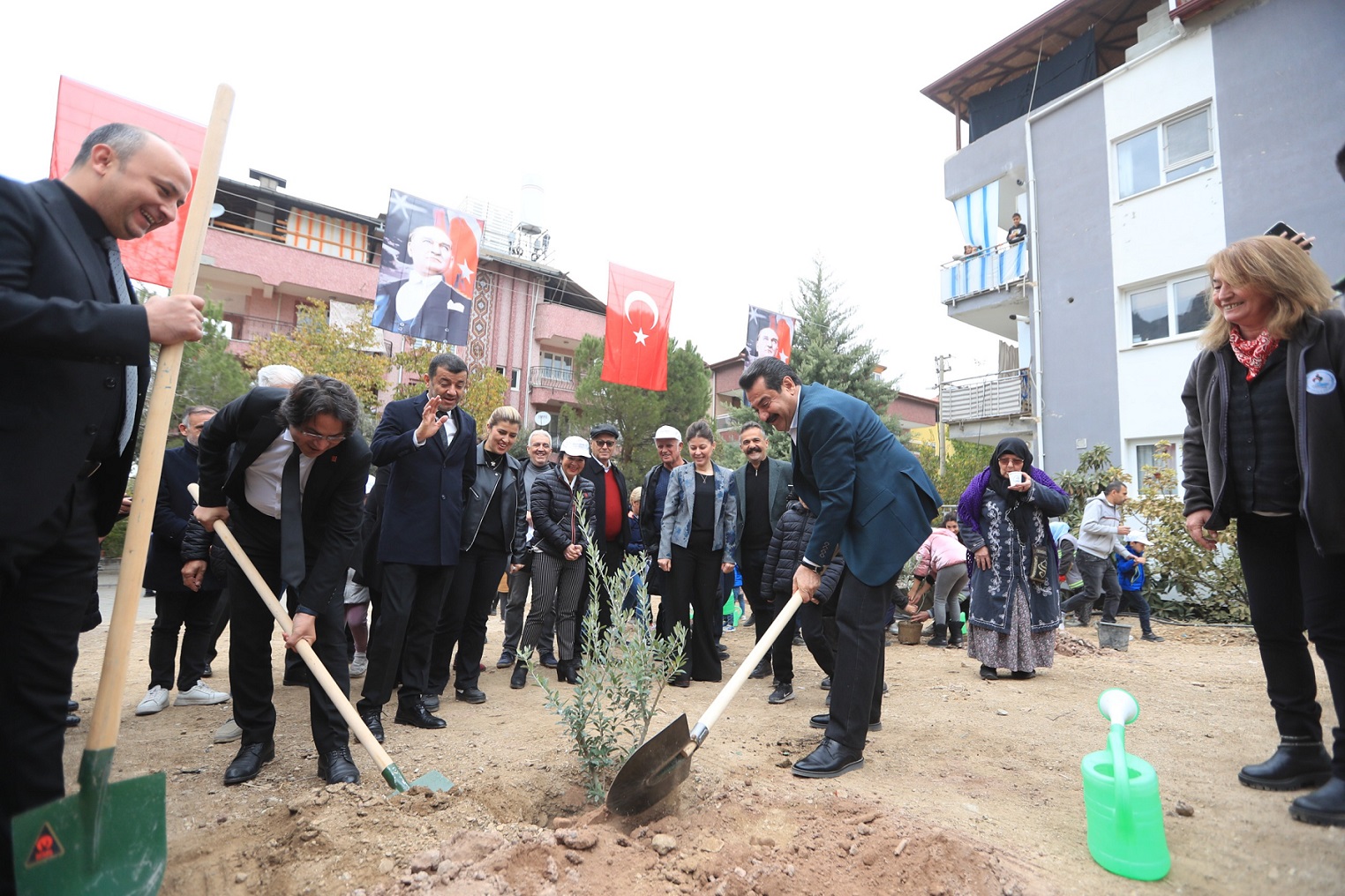 Pamukkale Belediye Başkanı Ali Rıza Ertemur burada yaptığı konuşmada, Ulu Önder Mustafa Kemal Atatürk’ün aramızdan ayrılışının 86. Yılında O’nun anısına fidan dikme etkinliği düzenlediklerini ifade ederek, “Bugün farklı bir gün, Ata’mızın aramızdan ayrılışının 86. yıl dönümü. Bu bizim için hüzünlü bir gün. O’nu anmak, eserlerine sahip çıkmak ve fikirleriyle birlikte hala yaşıyor olmak, bizim için farklı bir duygu. Ben tüm mahalle halkına bu etkinliğimize katkıları için teşekkür ediyorum. Ata’mızın bize emanet ettiği Cumhuriyet’i bir ömür boyu sürdüreceğiz, sonsuza kadar Cumhuriyet devam edecek. Biz Atatürk’ü bir devlet adamı, bir komutan, bir lider olarak kalbimizin en derinlerinde saklayacağız ve anacağız. Ruhu şad olsun. Gazi Mustafa Kemal Atatürk ve silah arkadaşlarını bir kez daha minnetle, saygıyla, hürmetle, özlemle anıyorum” dedi. Konuşmanın ardından Başkan Ertemur ve protokol üyeleri vatandaşlar ve öğrencilerle birlikte Pamukkale Belediyesi fidanlığında yetiştirilen fidanları toprakla buluşturdu. Pamukkale Belediyesi’nin İkinci fidan dikme etkinliği Aktepe Mahallesi Kurudere Parkı ile 2421 sokakta bulunan parkta gerçekleşti. Burada da Gazi Mustafa Kemal Atatürk’ün ölüm yılına ithafen 1938 adet ceviz ve ıhlamur ağacı ile zeytin, lavanta ve biberiye fidanı toprakla buluşturuldu. Pamukkale Belediye Başkanı Ali Rıza Ertemur ve protokol üyeleri çocuklarla birlikte fidanları toprakla buluşturup can suyu verdi.