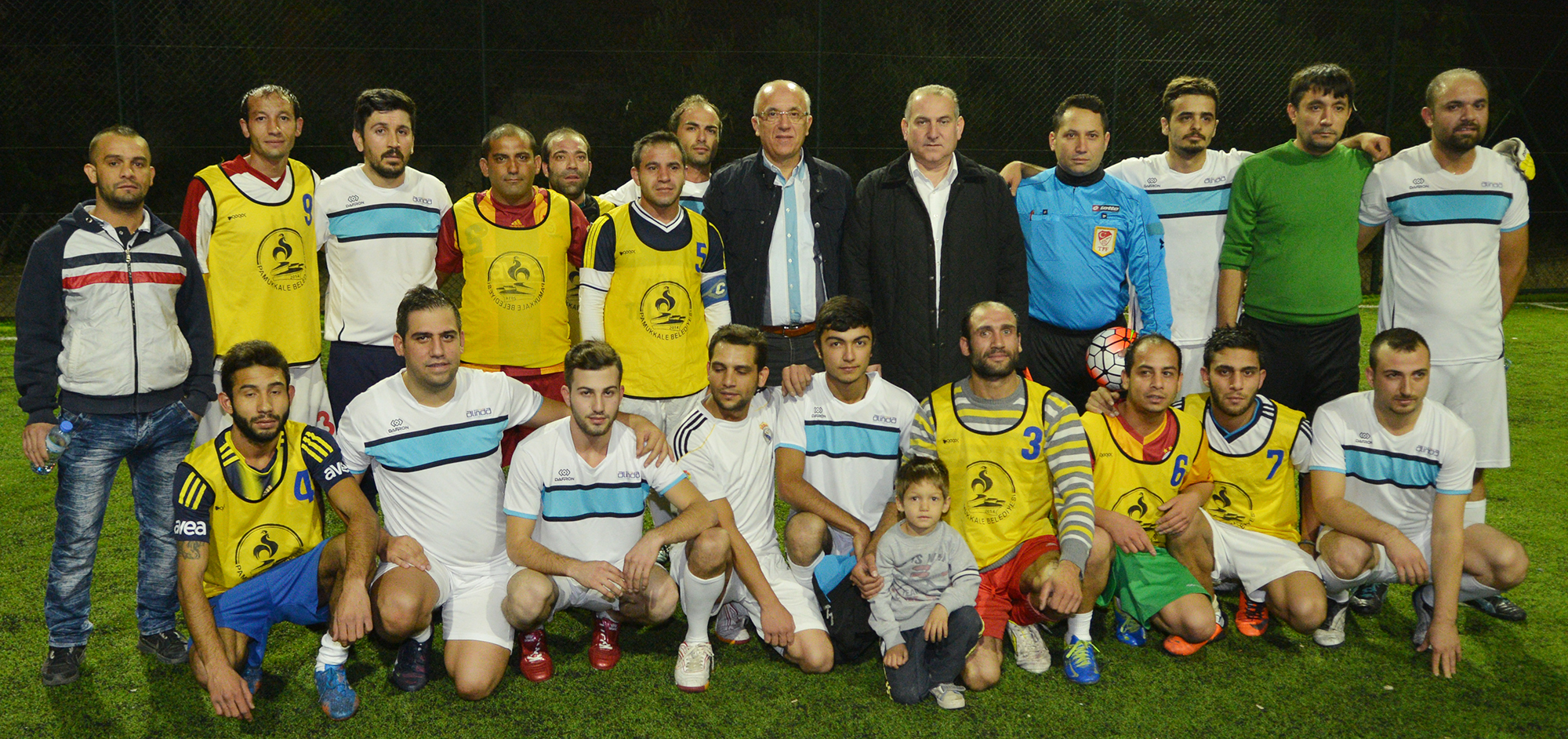 Pamukkale Belediyesi’nin sosyal projelerinden biri olan “Pamukkale’de 2. Futbol Şöleni Sonbahar 2015 Halı Saha Futbol Turnuvası” heyecanı başladı. Geçen hafta 2 basın çalışanı İlyas haytan ve Alperen Ersoy’un trafik kazasında hayatını kaybetmesi nedeniyle maçlar ertelenmişti. Akhan ve Deliktaş sahalarının ev sahipliği yaptığı ilk gün maçlarında heyecan oldukça yüksekti. Pamukkale Belediye Başkan Yardımcısı Adnan Kaya ilk olarak Akhan’da oynanan Emlak Yönetim A.Ş. – Yeniköy City maçından önce oyunculara başarılar dileyerek başlama vuruşunu yaptı. Daha sonra Deliktaş’taki sahaya giden Kaya burada yapılan Akköy Çerkezspor – Zor Şartlar maçı öncesi oyuncularla bir araya gelerek maçı başlattı. 64 takımın 10 grupta tek devreli lig usulüne göre mücadele etmeye başladığı “Pamukkale’de 2. Futbol Şöleni Sonbahar 2015 Halı Saha Futbol Turnuvası”nda gruplarında ilk 2 sırayı alan 20 takım 2. Tura çıkacak. Burada da yapılacak olan tek devreli maçlar sonunda 4 takım final grubuna kalacak. Burada da çapraz eşleşmeyle yapılacak olan maçlar sonunda şampiyon olan takım belirlenecek. Turnuva maçlarına 2 Kasım Pazartesi günü devam edilecek. “Pamukkale’de 2. Futbol Şöleni Sonbahar 2015 Halı Saha Futbol Turnuvası”nın ilk gününde alınan toplu sonuçlar ve oluşan puan durumları ile 2 Kasım Pazartesi günkü maç programı şöyle.