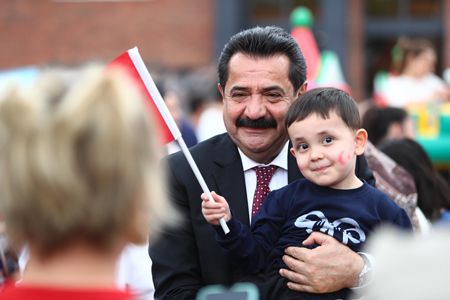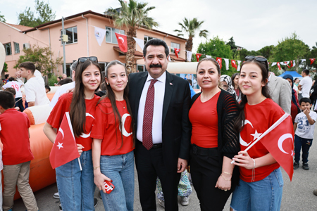 Pamukkale Belediye Başkanı Ali Rıza Ertemur, belediyenin YSE Ana Hizmet binası bahçesinde düzenlenen "Pamukkale Belediyesi 23 Nisan Çocuk Şenliği"nde çocukların coşkusuna ortak oldu. Miniklerin yoğun ilgisi karşısında duyduğu memnuniyeti dile getiren Başkan Ertemur, çocuklarla ve aileleriyle hatıra fotoğrafı çektirmeyi de ihmal etmedi. “Egemenlik, kayıtsız şartsız milletindir, anlayışıyla bugünlere geldik” diyen Başkan Ertemur, konuşmasına şöyle devam etti; “Sevgili çocuklar, hepinizin gözlerinden öpüyorum, hepiniz hoş geldiniz. Bayramınız kutlu olsun. Değerli anne ve babalar, bizleri burada yalnız bırakmadığınız için, bu bayram coşkusunu, çocuklarımızın sevincini birlikte paylaşmanın mutluluğunu bizlere yaşattığınız için sizlere de teşekkür ediyorum. Bugün 23 Nisan, 105 yıl önce Mustafa Kemal Atatürk ve silah arkadaşlarının bizlere emanet ettiği Meclis'i ve onunla taçlandırdığı Cumhuriyet'i bugünlere getirdik. Çocuklarımız bizim geleceğimiz, umudumuz, her şeyimiz. Bu güzel yavrularımıza daha güzel bir ülke bırakabilmek, daha aydınlık günler bırakabilmek ve çocuklarımızın hep yüzünü güldürmek bizim gayemiz. O amaçla bugün sizlerle birlikteyiz. Çocuklarımızın mutlu, sağlıklı ve iyi eğitimli bireyler olarak yetişmesi için tüm imkânlarımızı seferber etmeye devam edeceğiz. Bu vesile ile tüm dünya çocuklarının 23 Nisan Ulusal Egemenlik ve Çocuk Bayramını kutluyorum”.