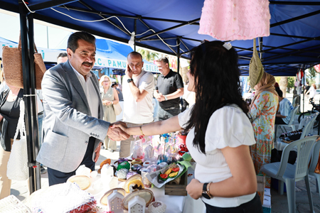T.C. Pamukkale Belediyesi'nin kadınların sosyal ve ekonomik hayattaki yerini güçlendirme misyonunun önemli bir yansıması olan “T.C. Pamukkale Belediyesi Kadın El Emeği Festivali”, 5-6 Temmuz 2025 tarihlerinde İncilipınar Parkın’nda gerçekleştirildi. Festival, boyunca, Pamukkaleli üreten kadınların el emeği göz nuru ürünleri sergilendiği stantlar büyük ilgi görürken, ziyaretçiler hem eşsiz ürünleri keşfetme hem de üreticilere doğrudan destek olma fırsatı buldu. Sıcak yaz akşamlarında tüm Pamukkalelilere sanatsal ve eğlenceli anlar yaşatarak hafızalarda güzel izler bırakan festivalin ilk gününde, Pamukkale Belediye Başkanı Ali Rıza Ertemur, stantları ziyaret ederek, vatandaşlarla sohbet etti.