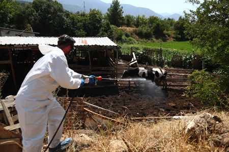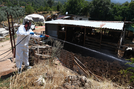 T.C. Pamukkale Belediyesi Veteriner Hizmetleri Müdürlüğü, ilçe genelindeki hayvancılık faaliyetlerini desteklemeye ve olası salgın hastalıklara karşı önlem almaya devam ediyor. Bu kapsamda, özellikle hayvan üreticilerinin büyük ekonomik kayıplar yaşamasına neden olabilen Şap hastalığının yayılmasını önlemek amacıyla geniş çaplı dezenfeksiyon çalışmaları başlatıldı.